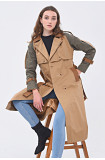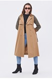 ÜÇ RENKLİ UZUN MEVSİMLİK ASTARLI TRENÇKOT/KAP - KAMEL