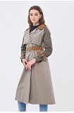 ÜÇ RENKLİ UZUN MEVSİMLİK ASTARLI TRENÇKOT/KAP - VİZON
