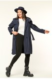 Orta Boy Kadın Büyük Beden Mevsimlik Trençkot - Lacivert