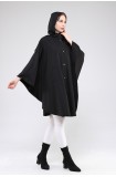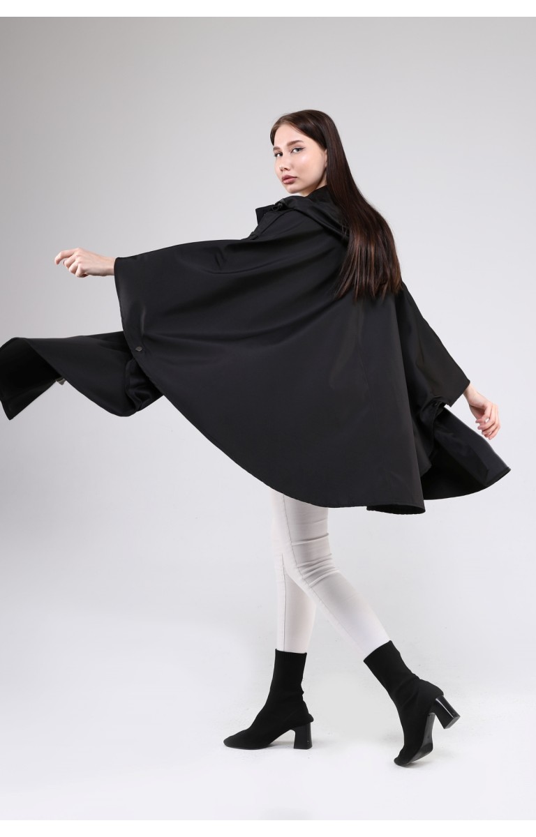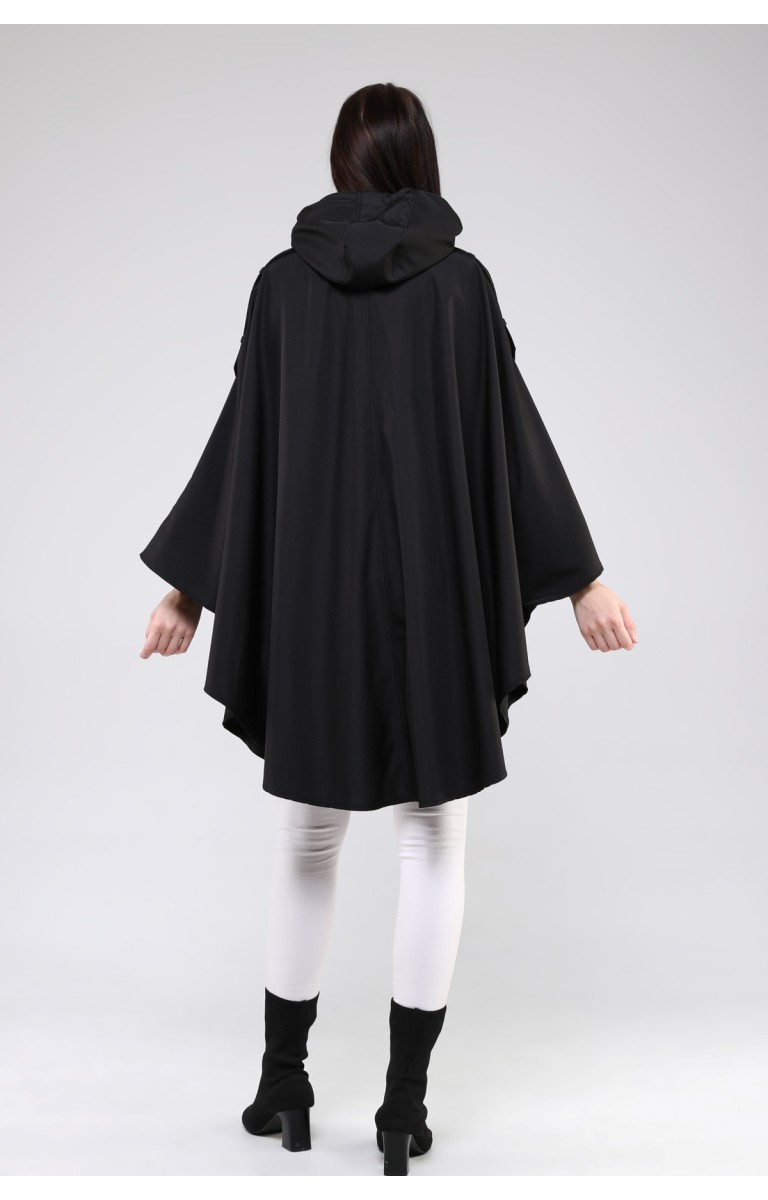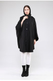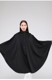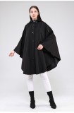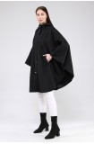 JAMİLA OVERSİZE KAPÜŞONLU MEVSİMLİK PANÇO - SİYAH