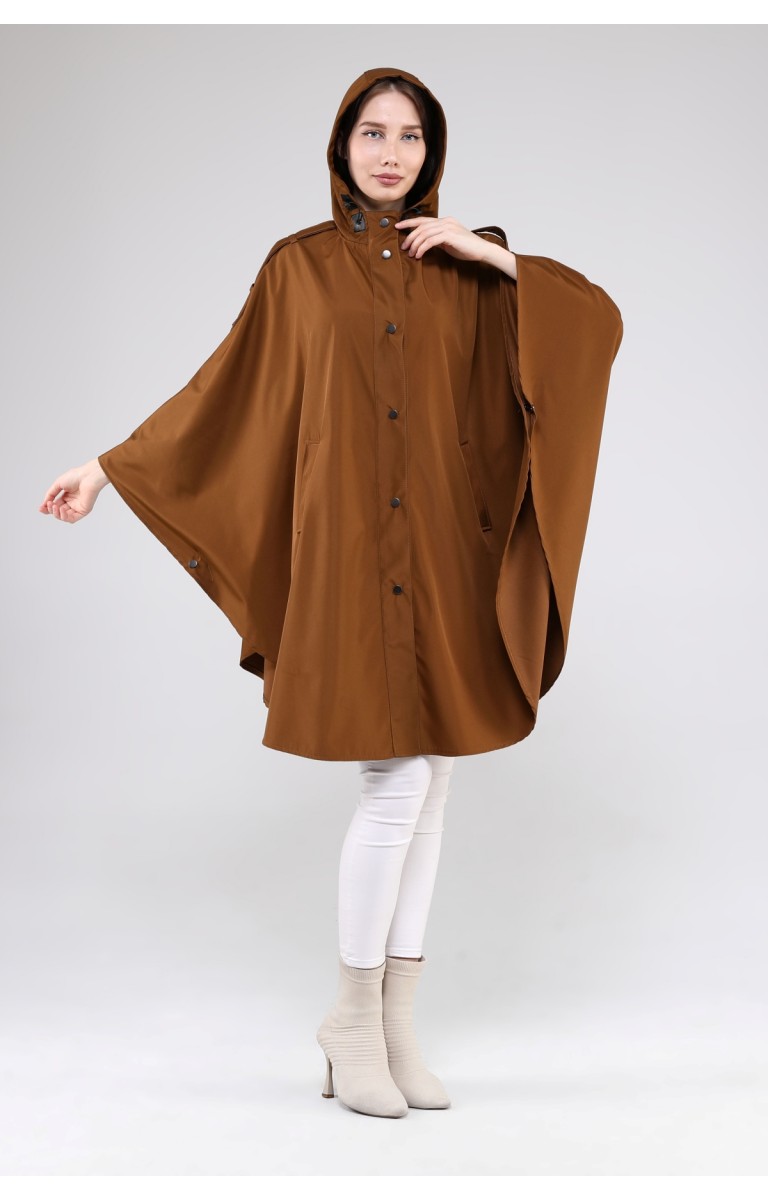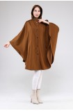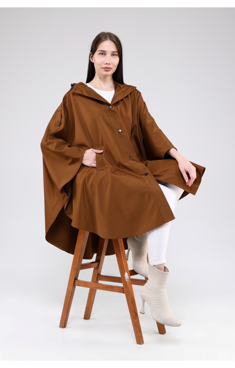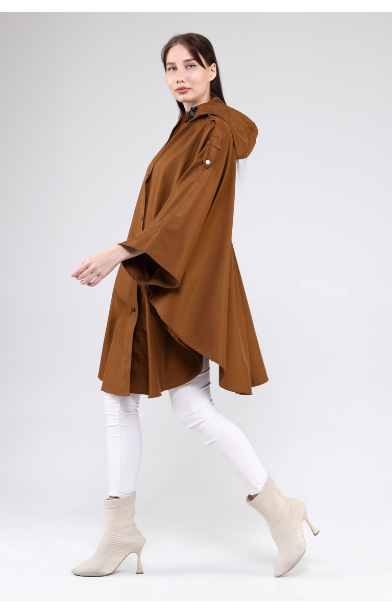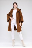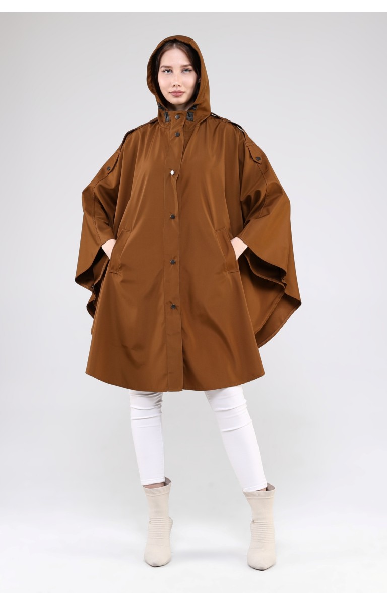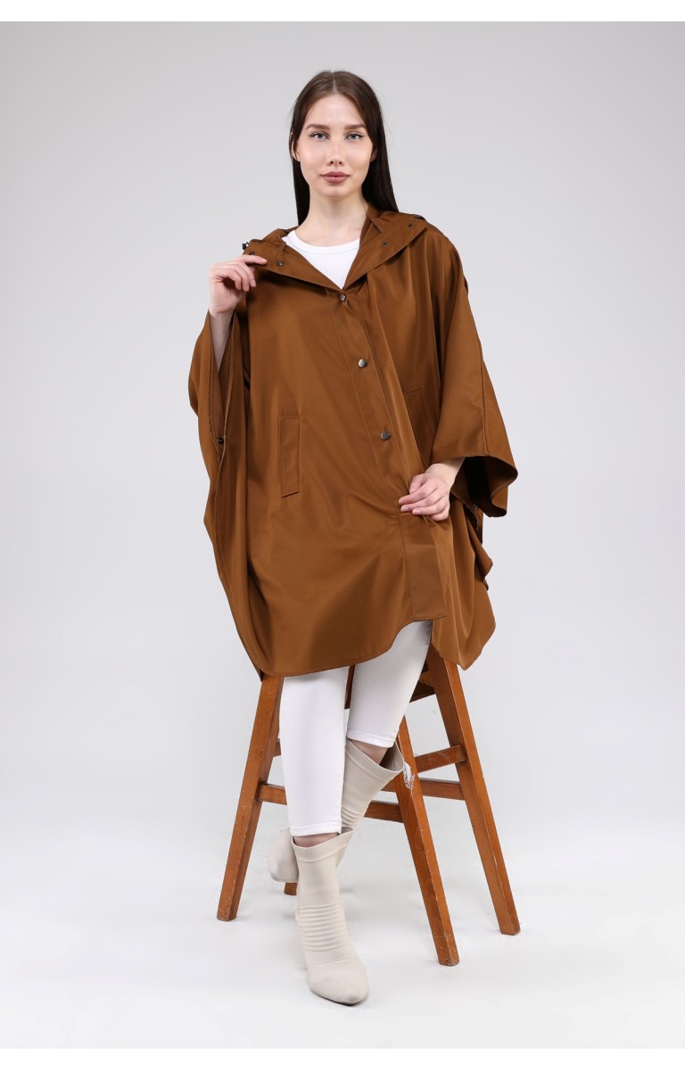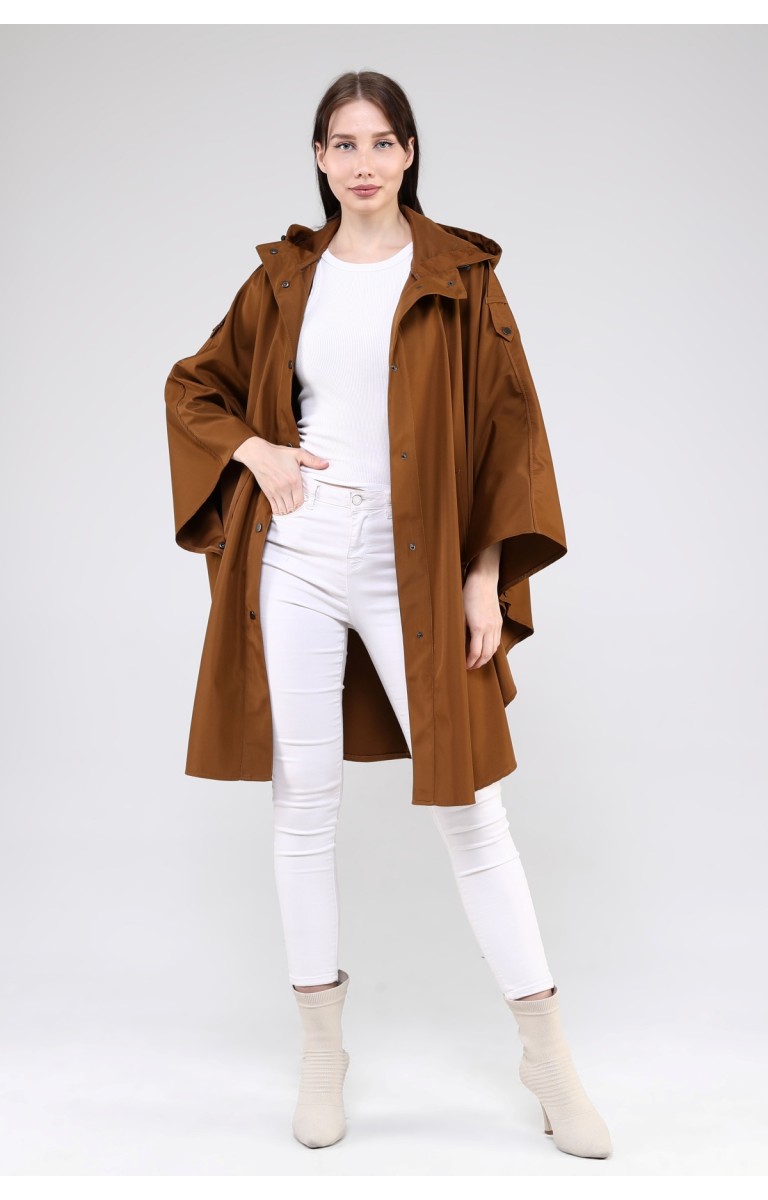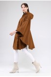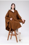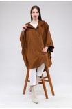 JAMİLA OVERSİZE KAPÜŞONLU MEVSİMLİK PANÇO - TABA