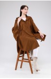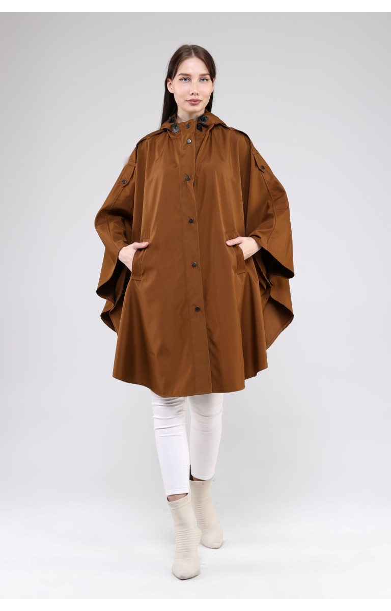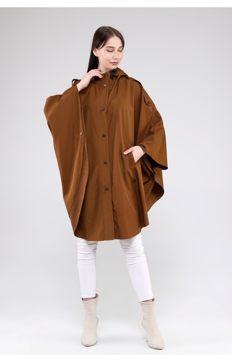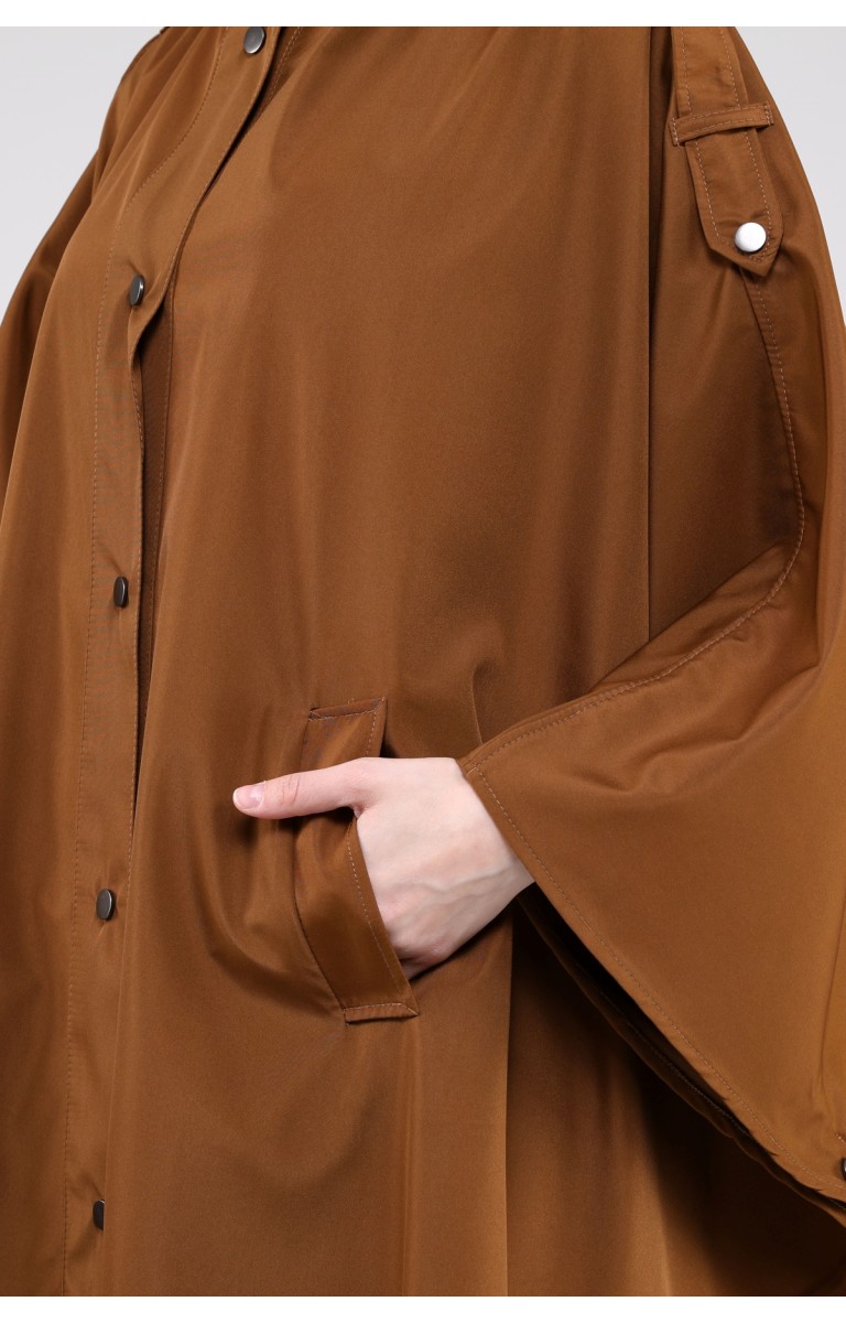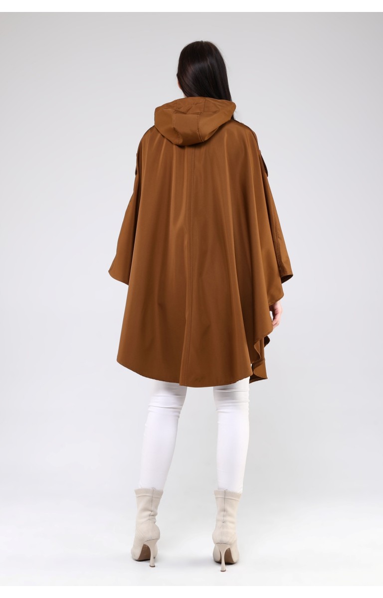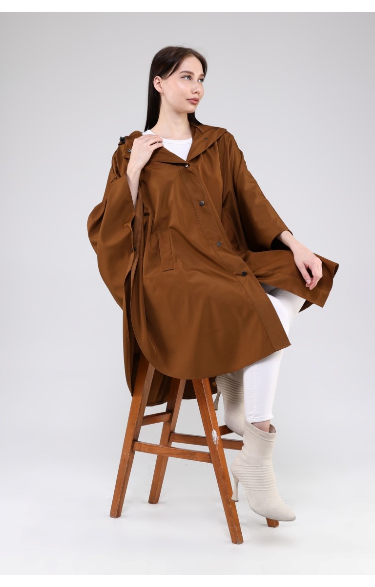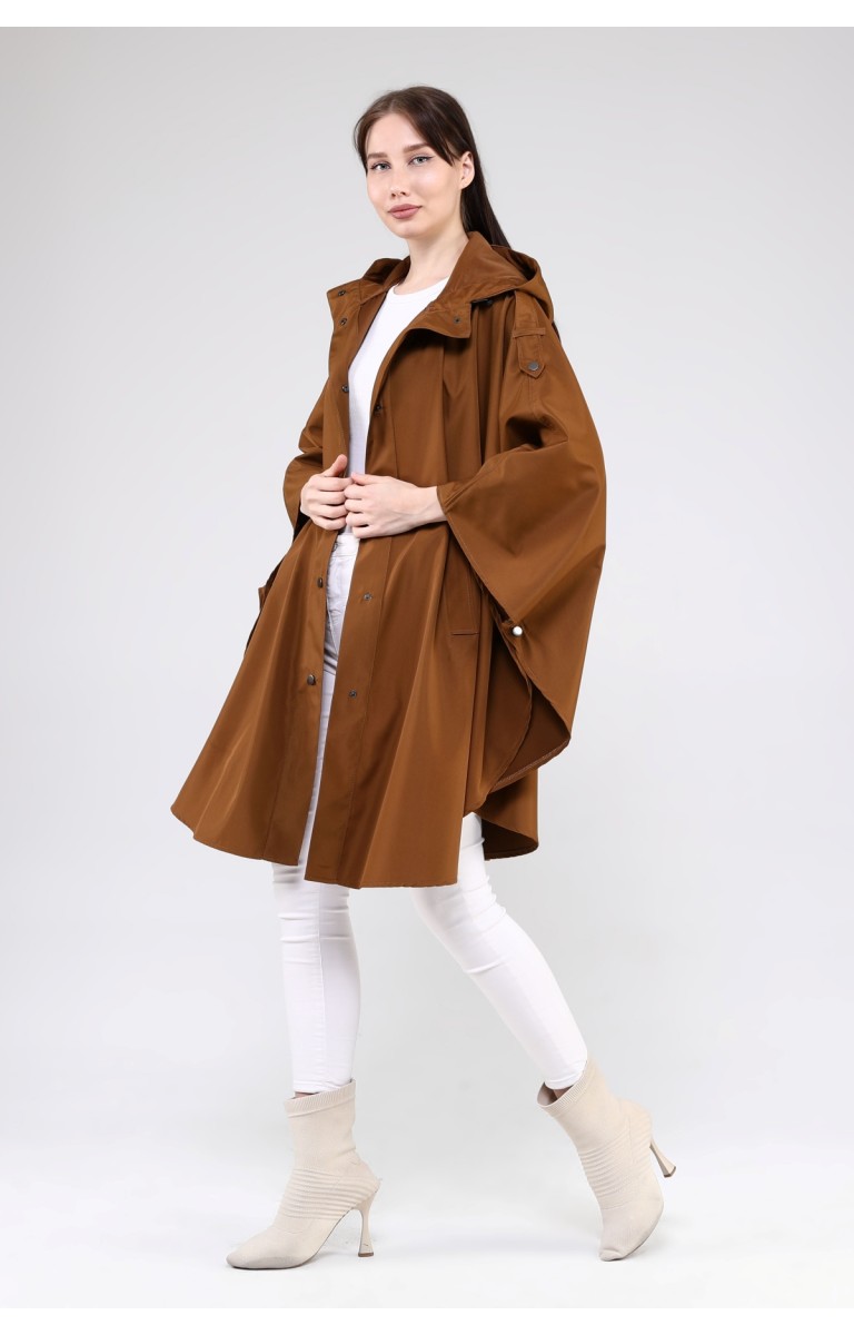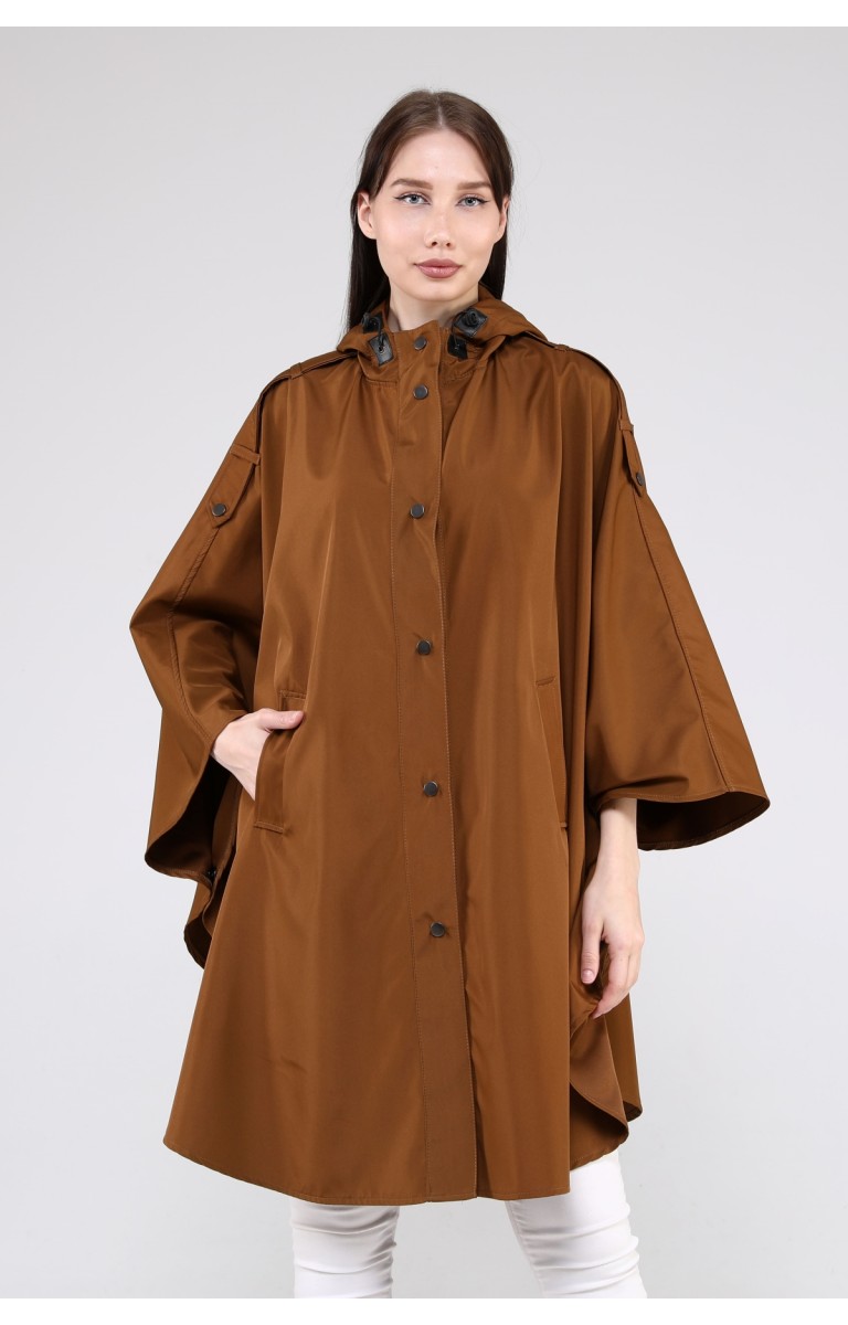 JAMİLA OVERSİZE KAPÜŞONLU MEVSİMLİK PANÇO - TABA