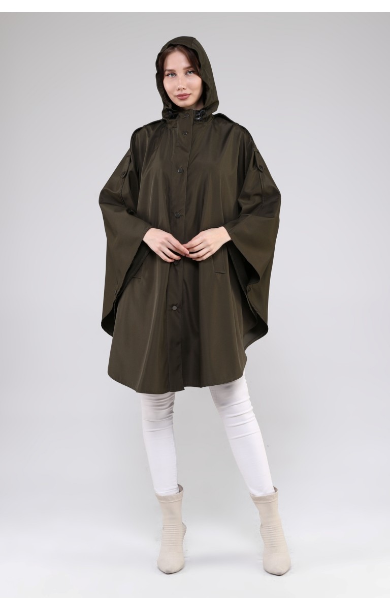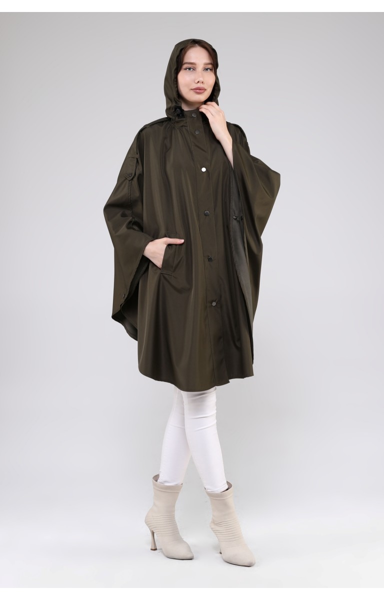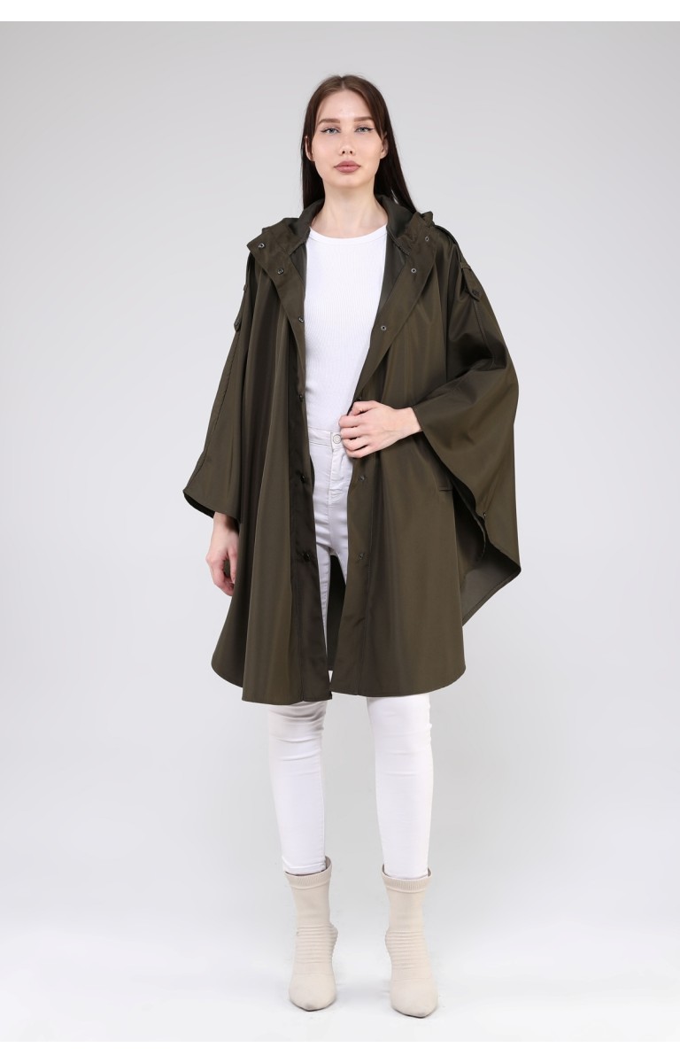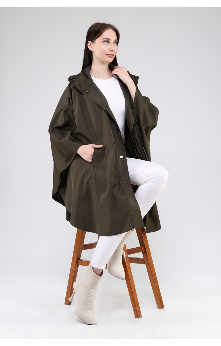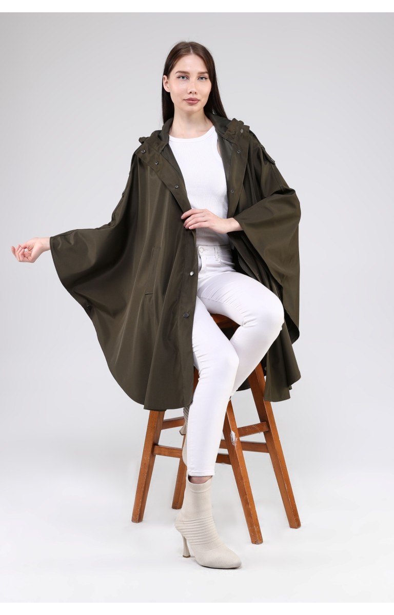 JAMİLA OVERSİZE KAPÜŞONLU MEVSİMLİK PANÇO - HAKİ