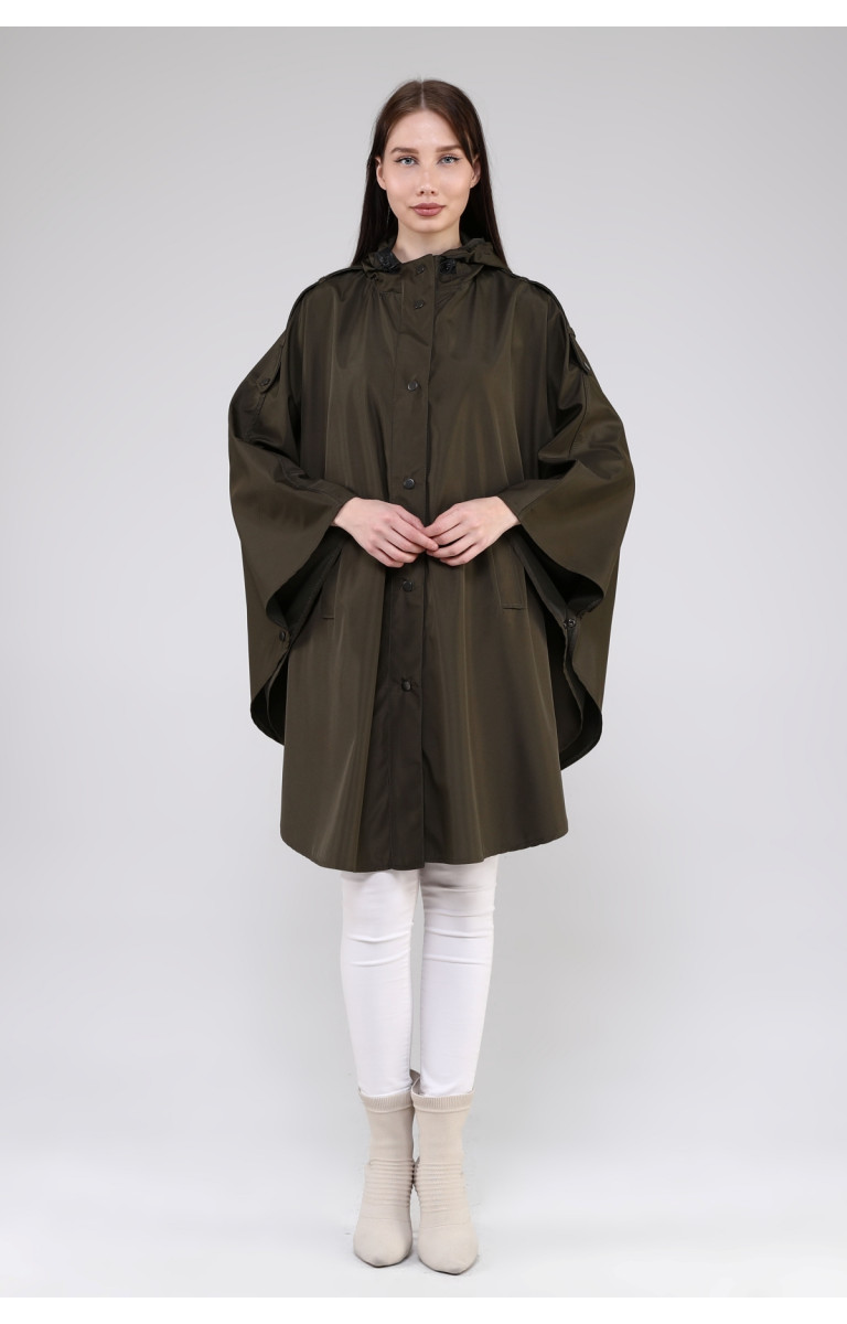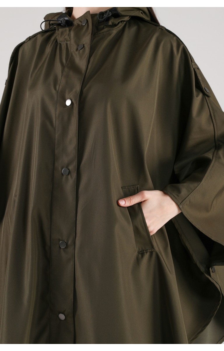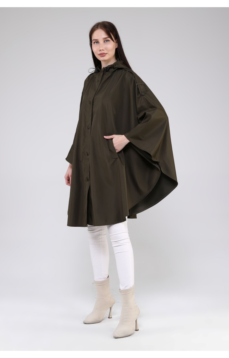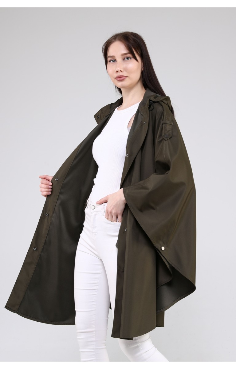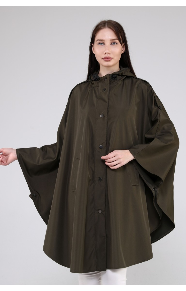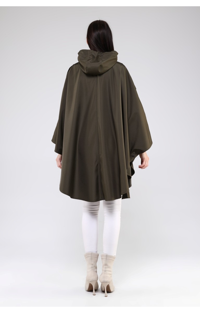 JAMİLA OVERSİZE KAPÜŞONLU MEVSİMLİK PANÇO - HAKİ