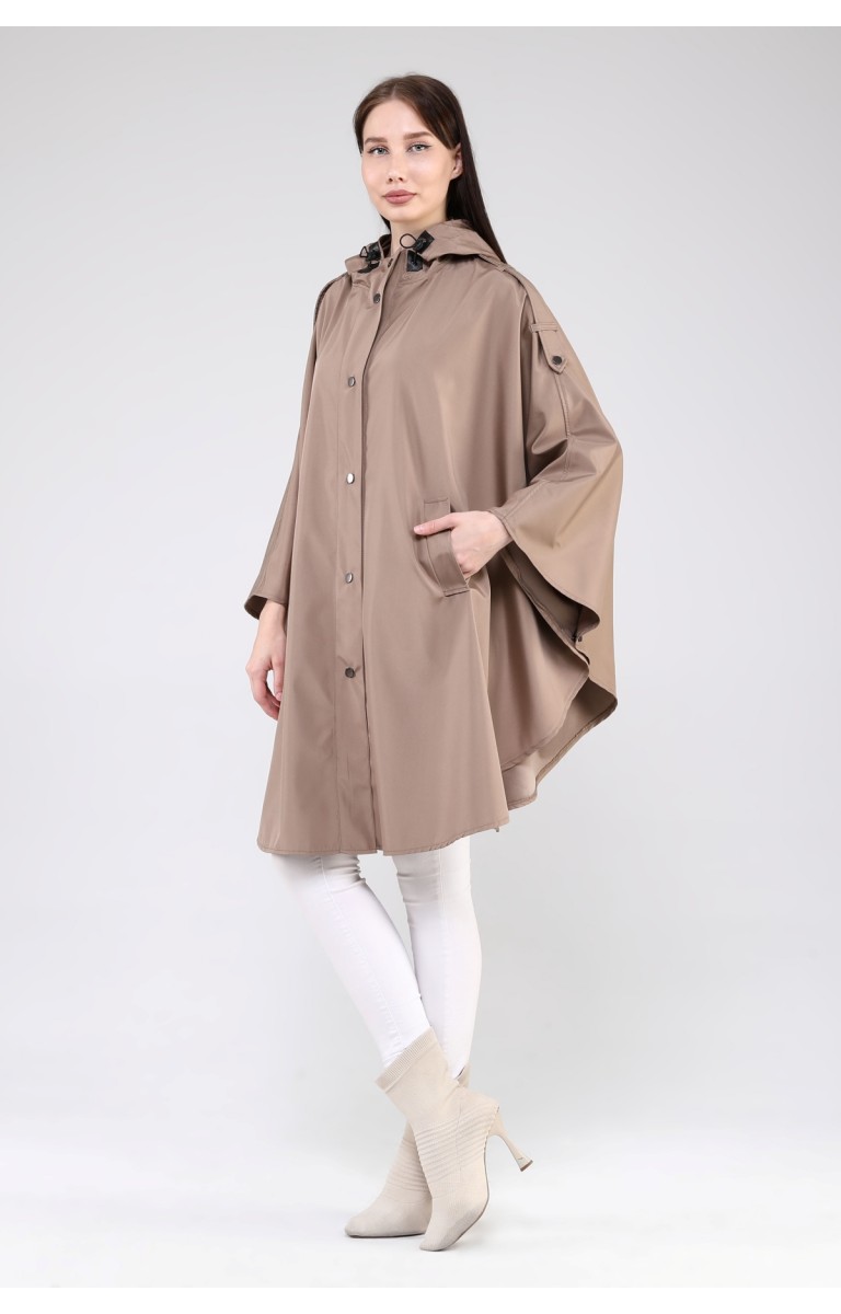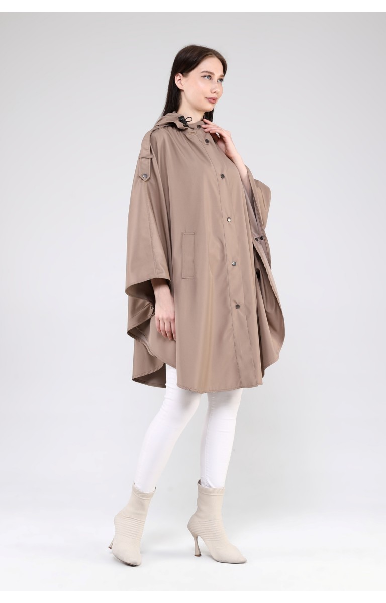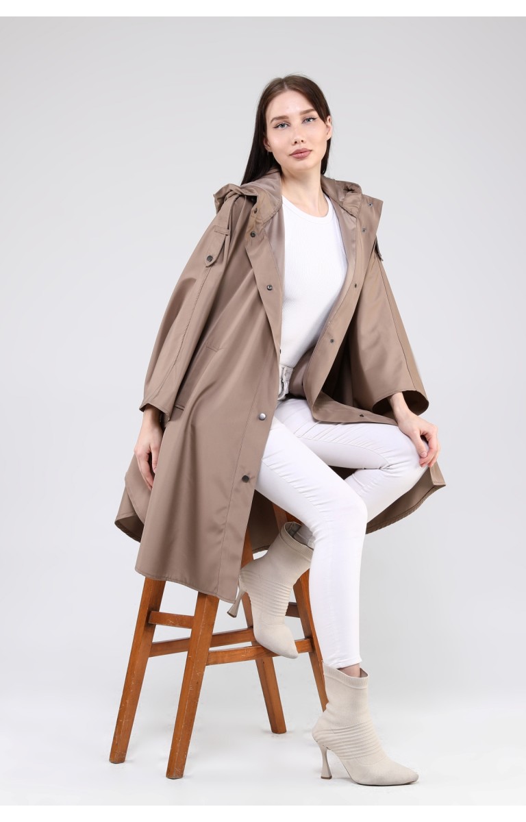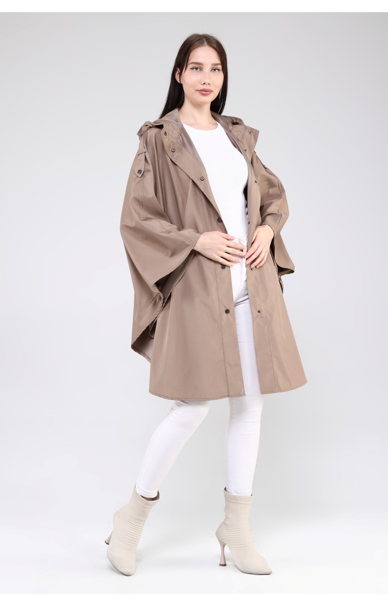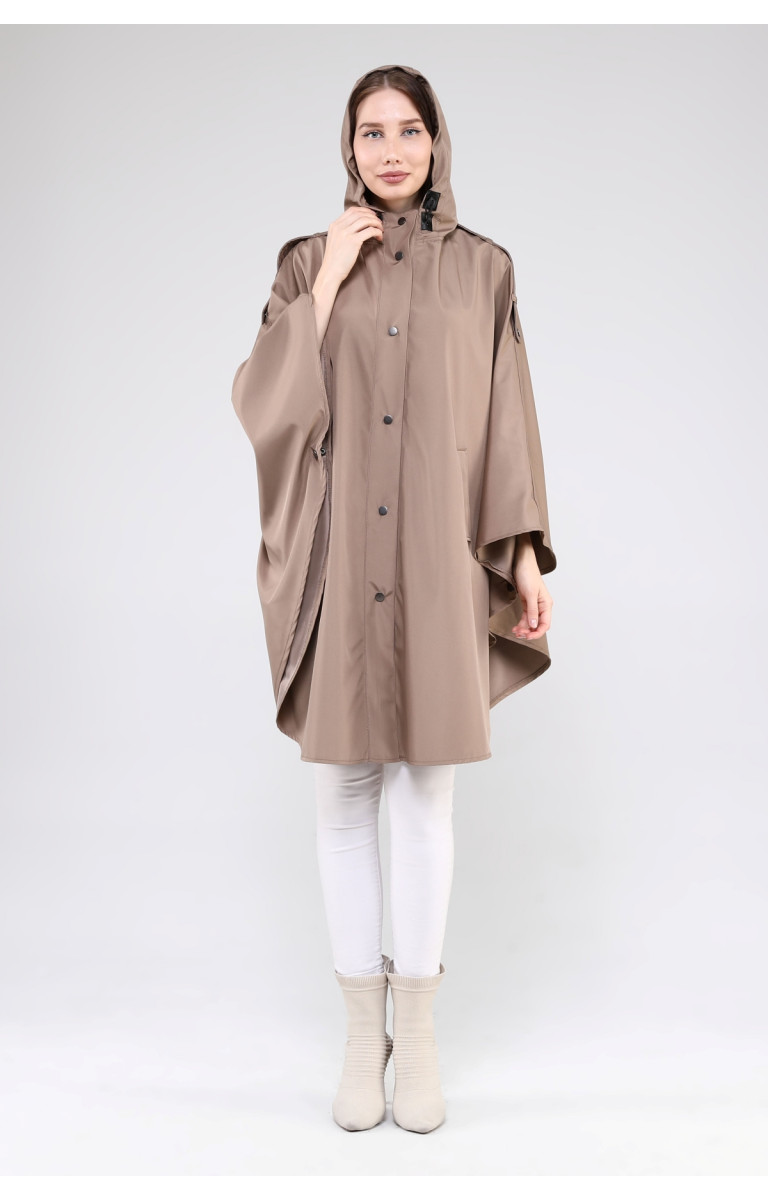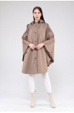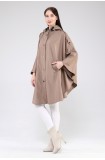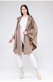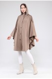 JAMİLA OVERSİZE KAPÜŞONLU MEVSİMLİK PANÇO - VİZON