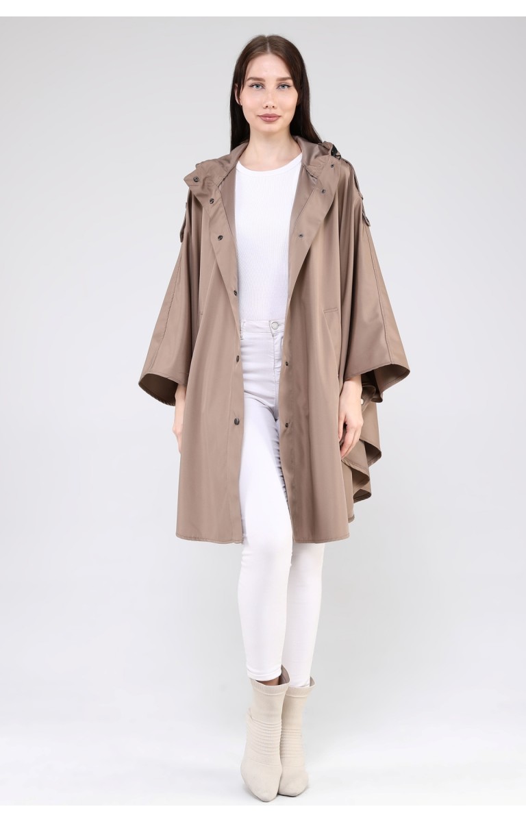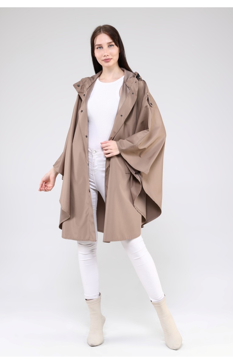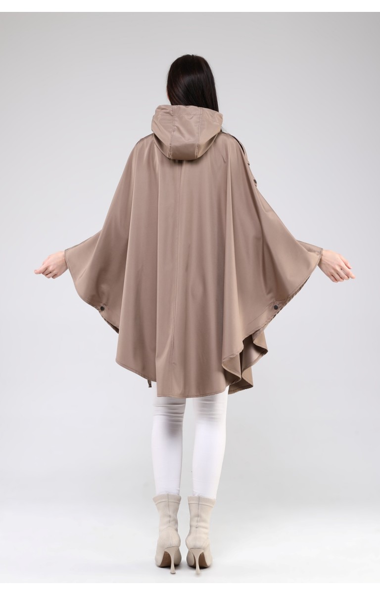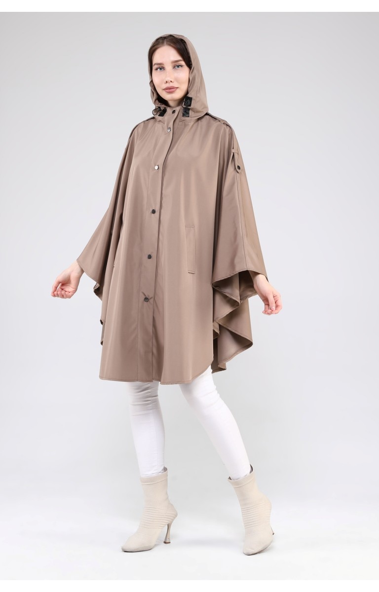 JAMİLA OVERSİZE KAPÜŞONLU MEVSİMLİK PANÇO - VİZON