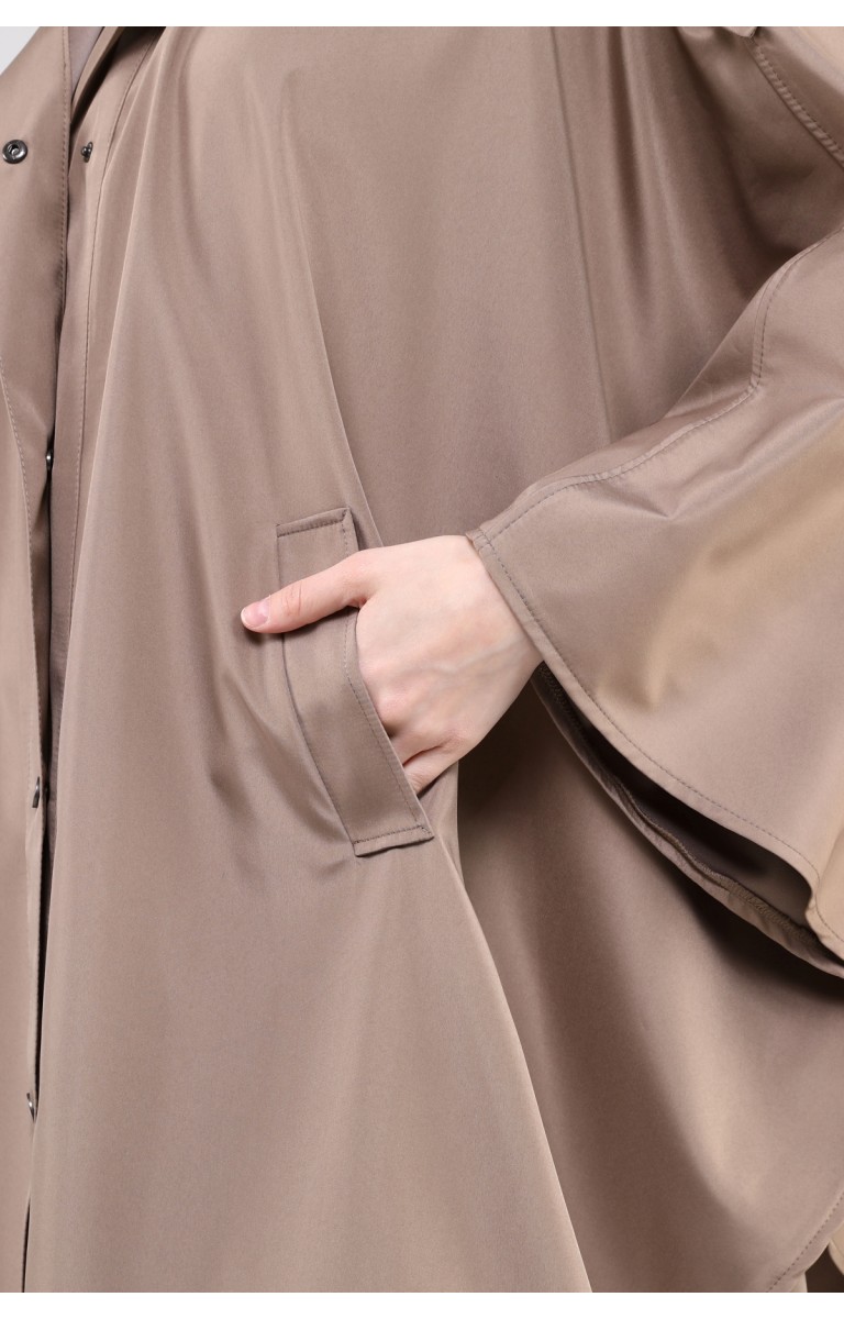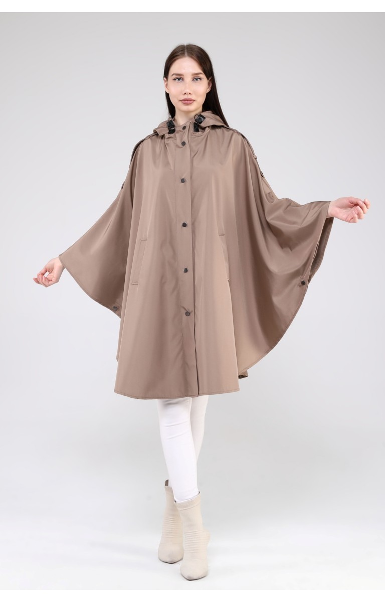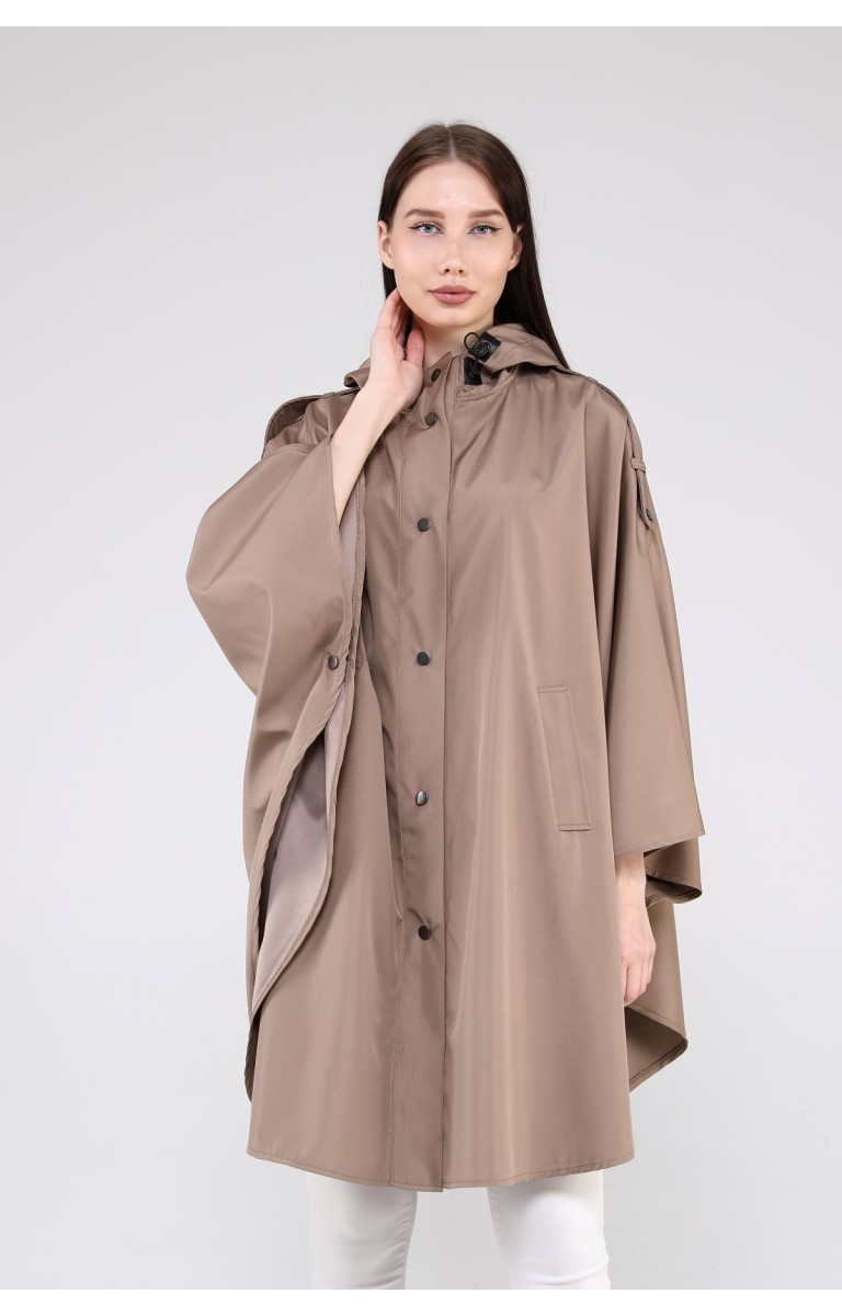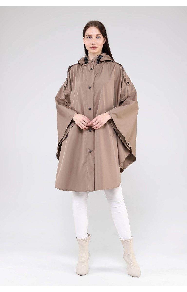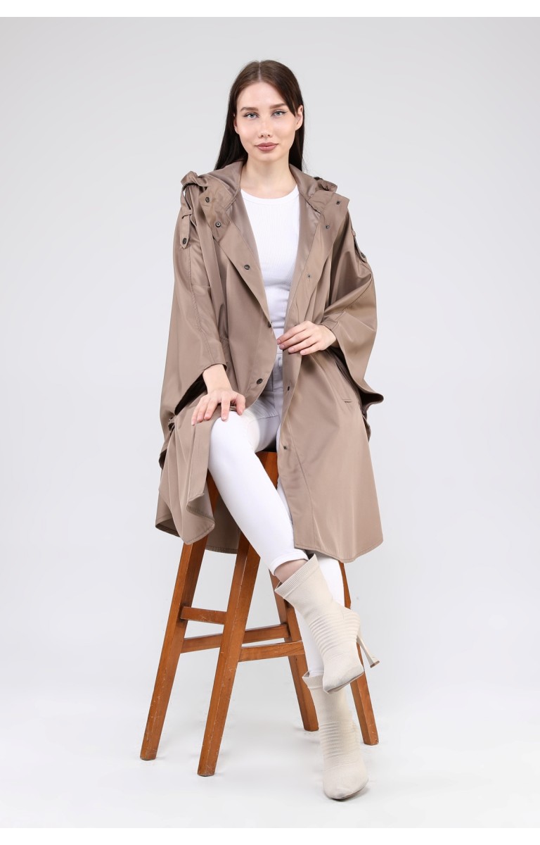 JAMİLA OVERSİZE KAPÜŞONLU MEVSİMLİK PANÇO - VİZON