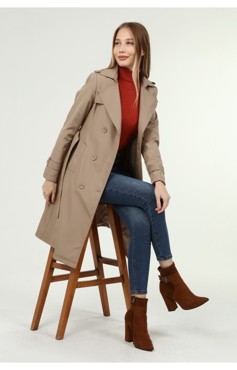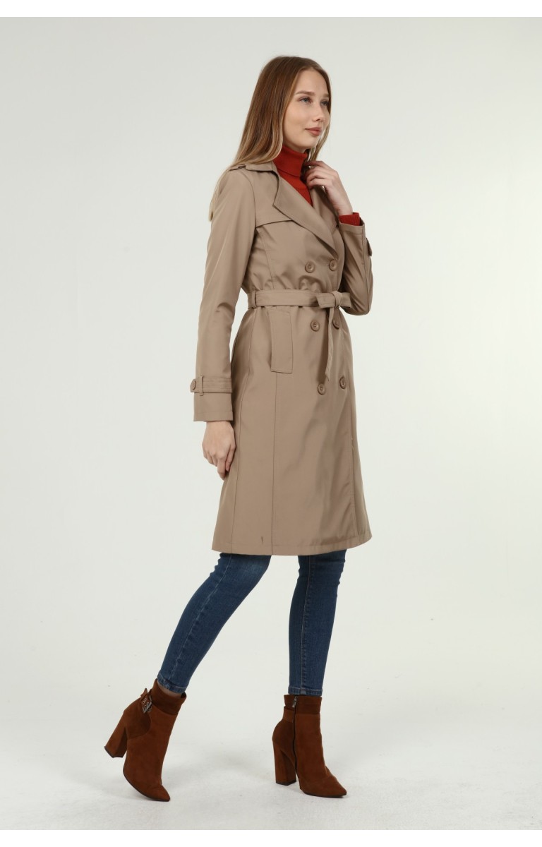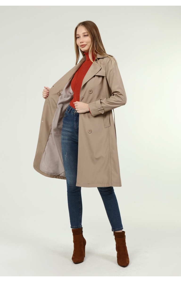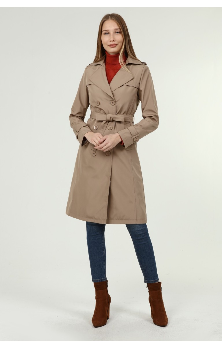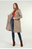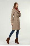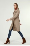 Jamila Orta Boy Kadın Astarlı Trençkot- VİZON