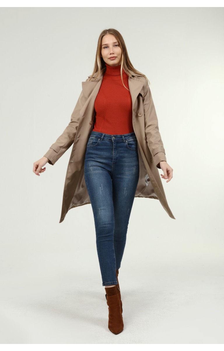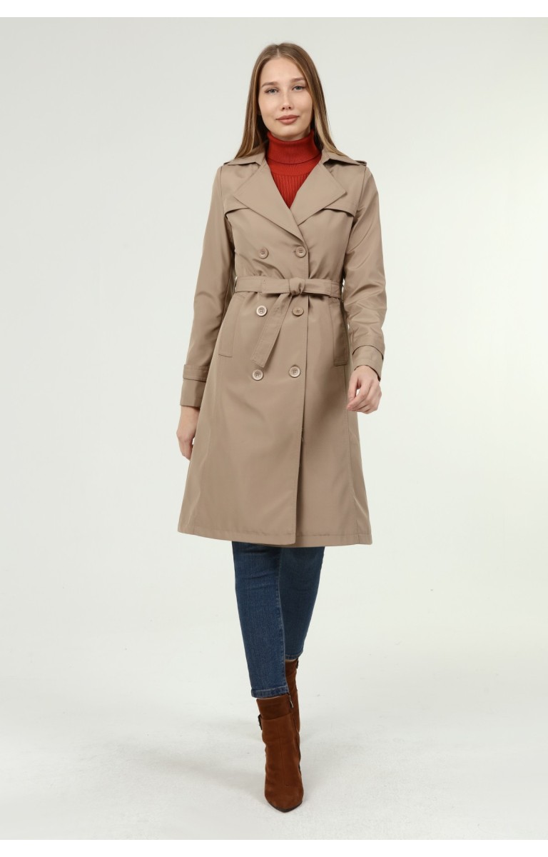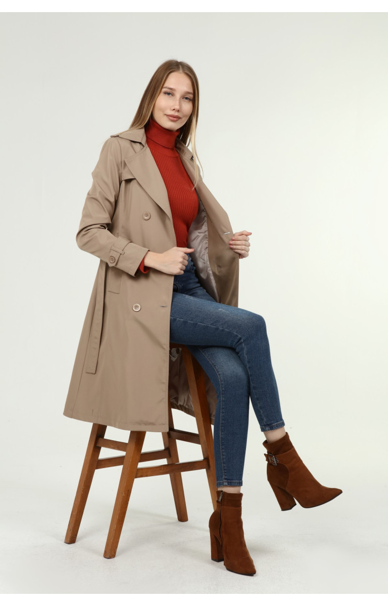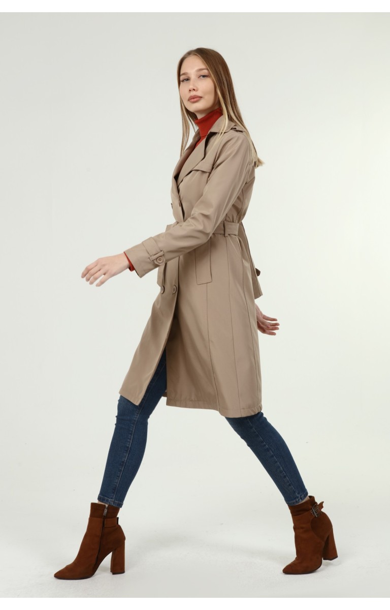 Jamila Orta Boy Kadın Astarlı Trençkot- VİZON