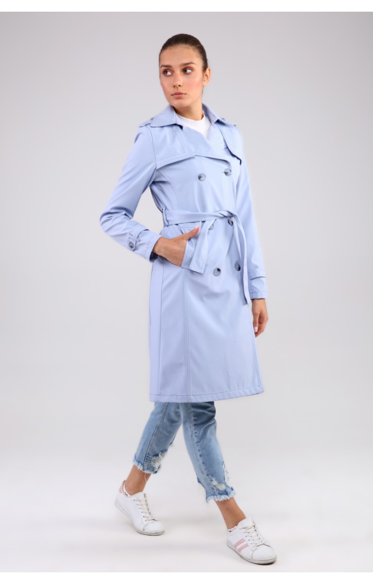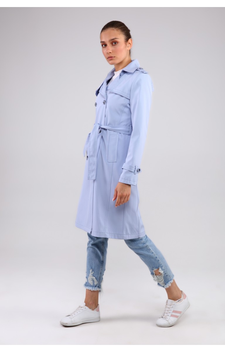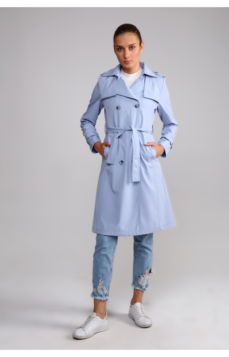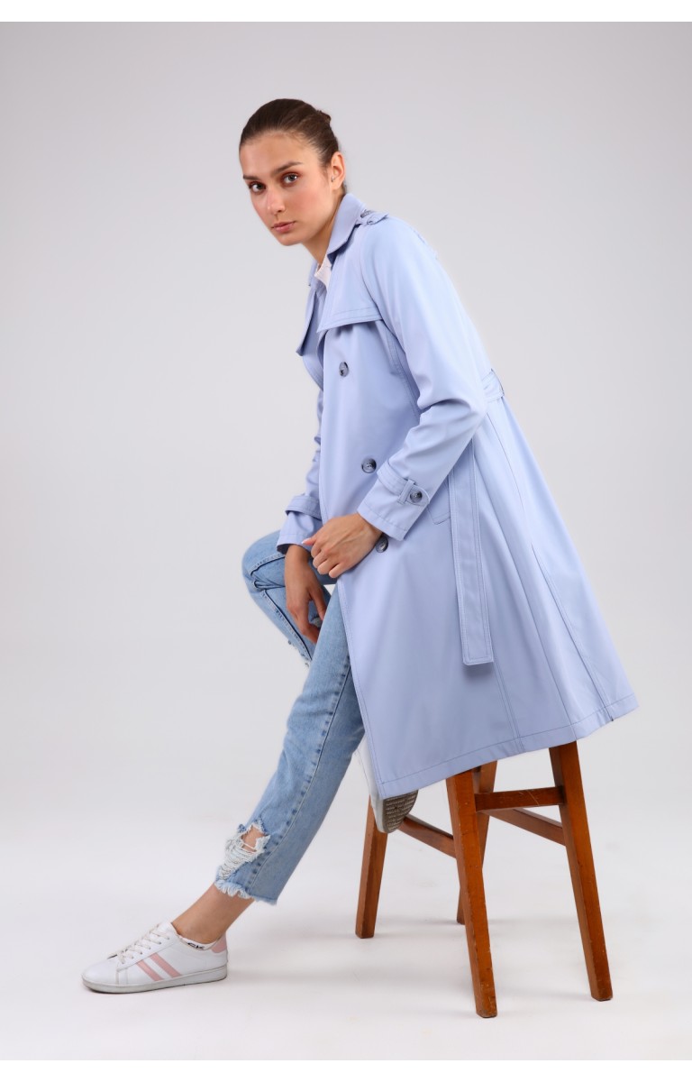 Jamila orta boy kadın astarlı trençkot - BULUT MAVİ