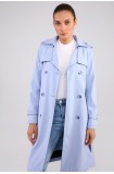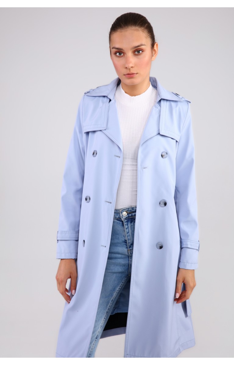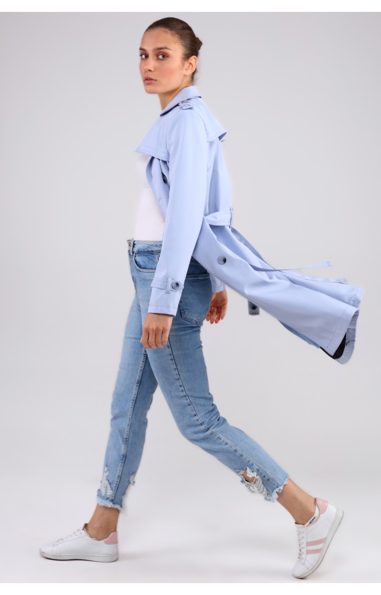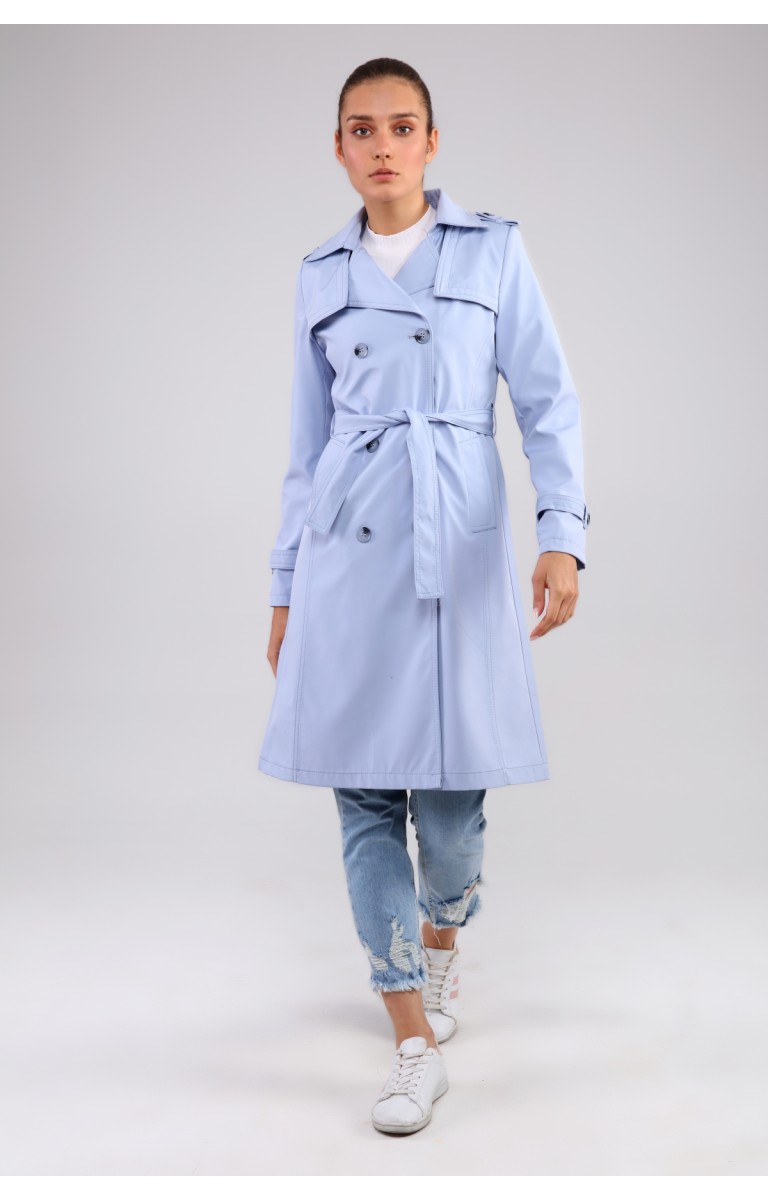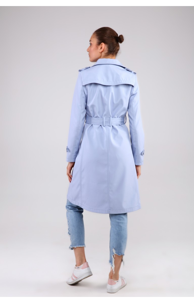 Jamila orta boy kadın astarlı trençkot - BULUT MAVİ