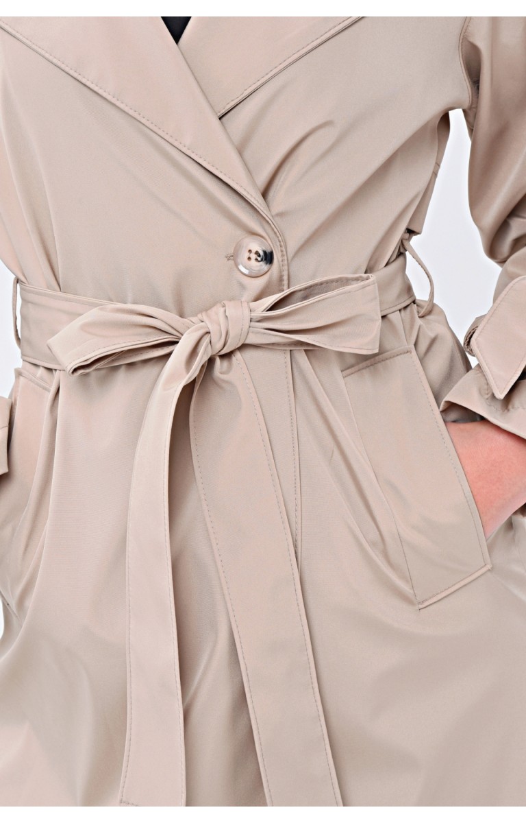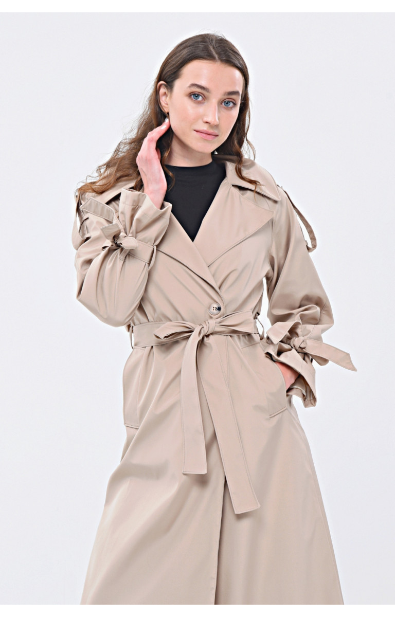 JAMİLA TEK DÜĞMELİ REGLAN KOL UZUN MEVSİMLİK ASTARLI TRENÇKOT - BEJ