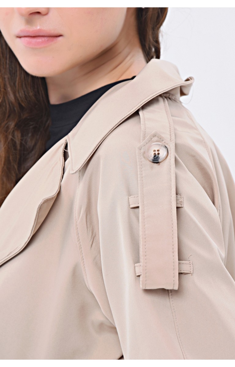 reglan kollu trençkot, %100 polyester kumaşıyla uzun ömürlü kullanım sunar.