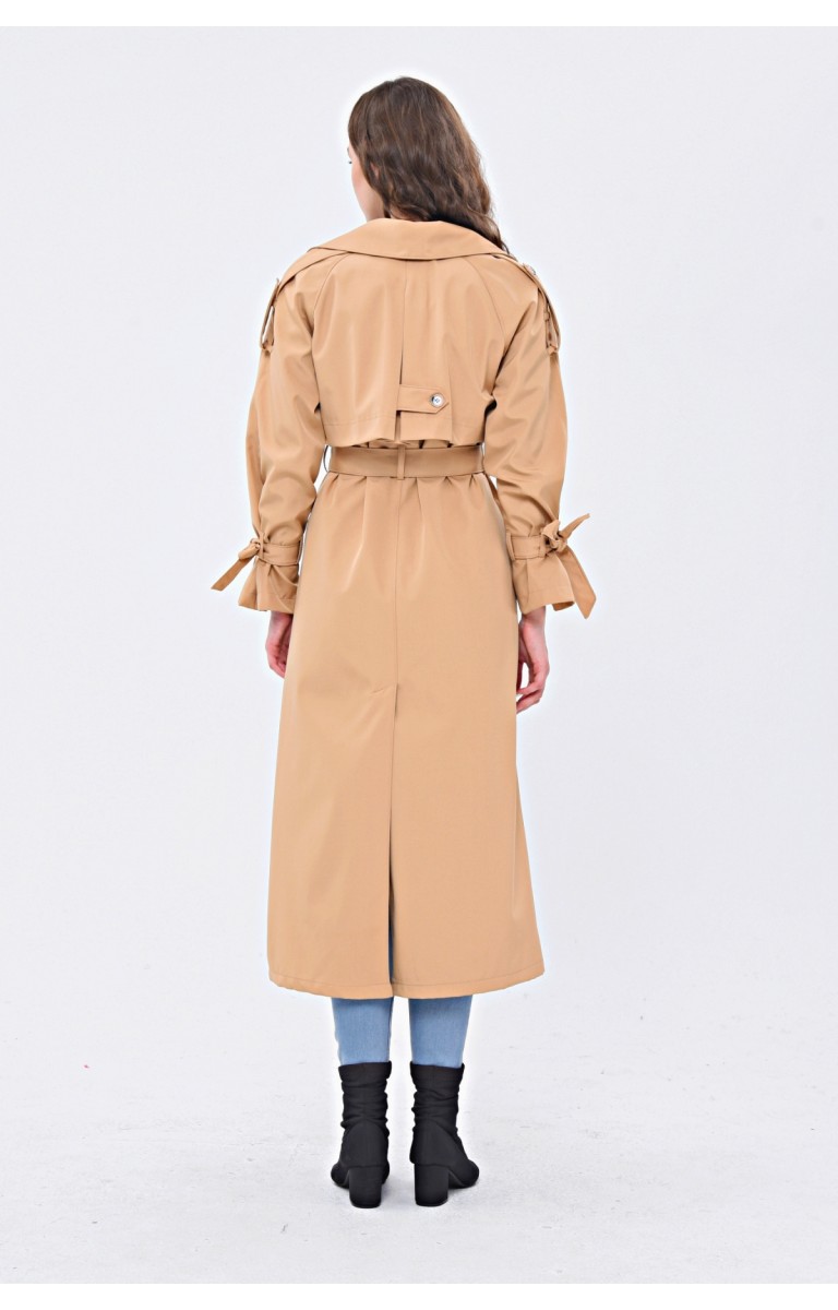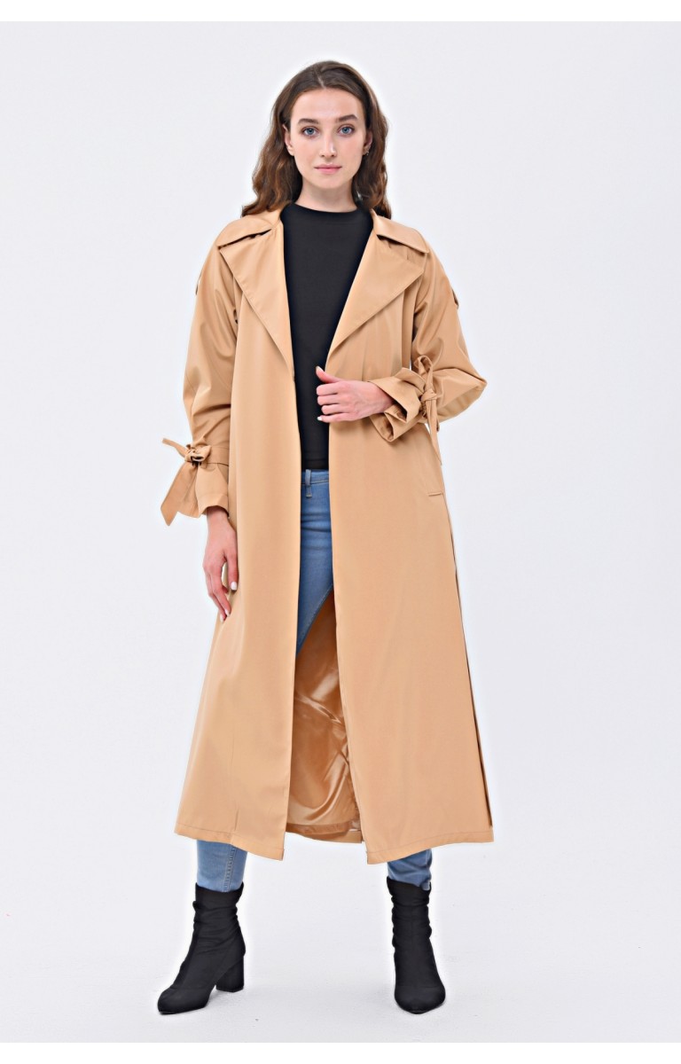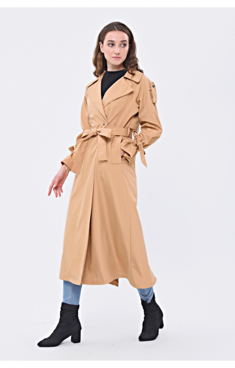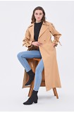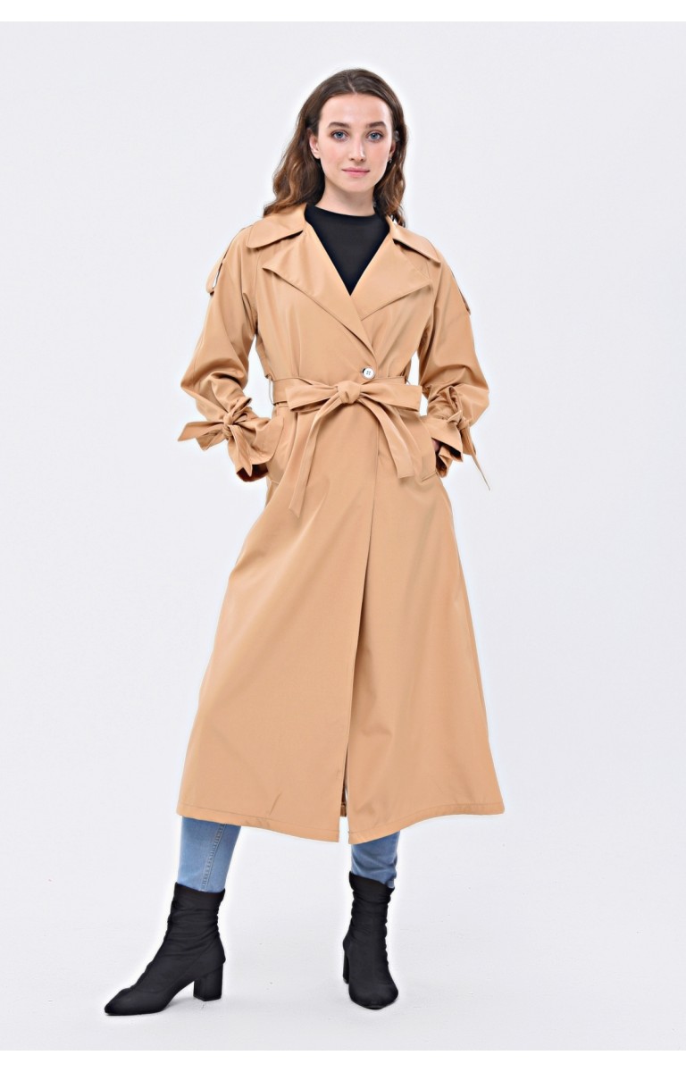 JAMİLA TEK DÜĞMELİ REGLAN KOL UZUN MEVSİMLİK ASTARLI TRENÇKOT - KAMEL