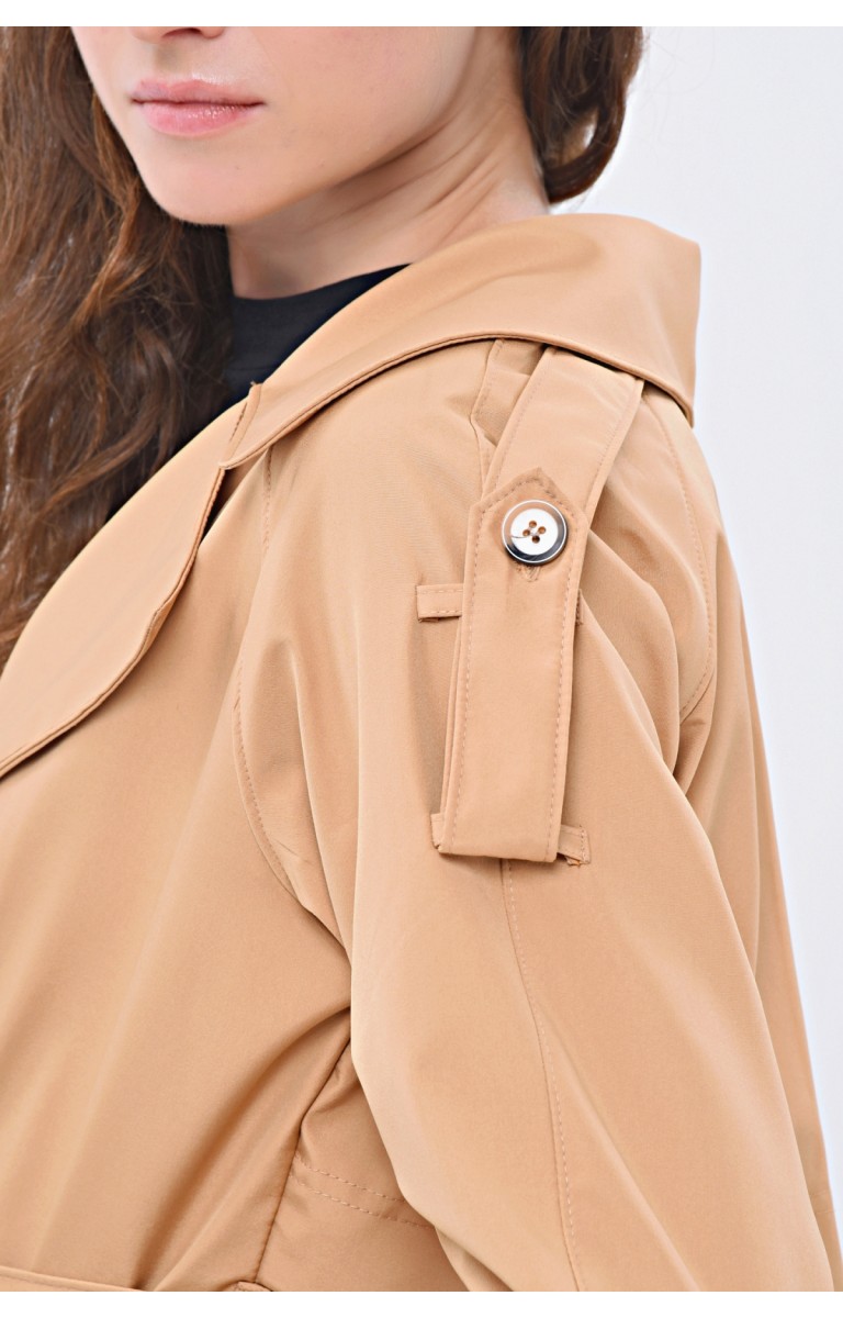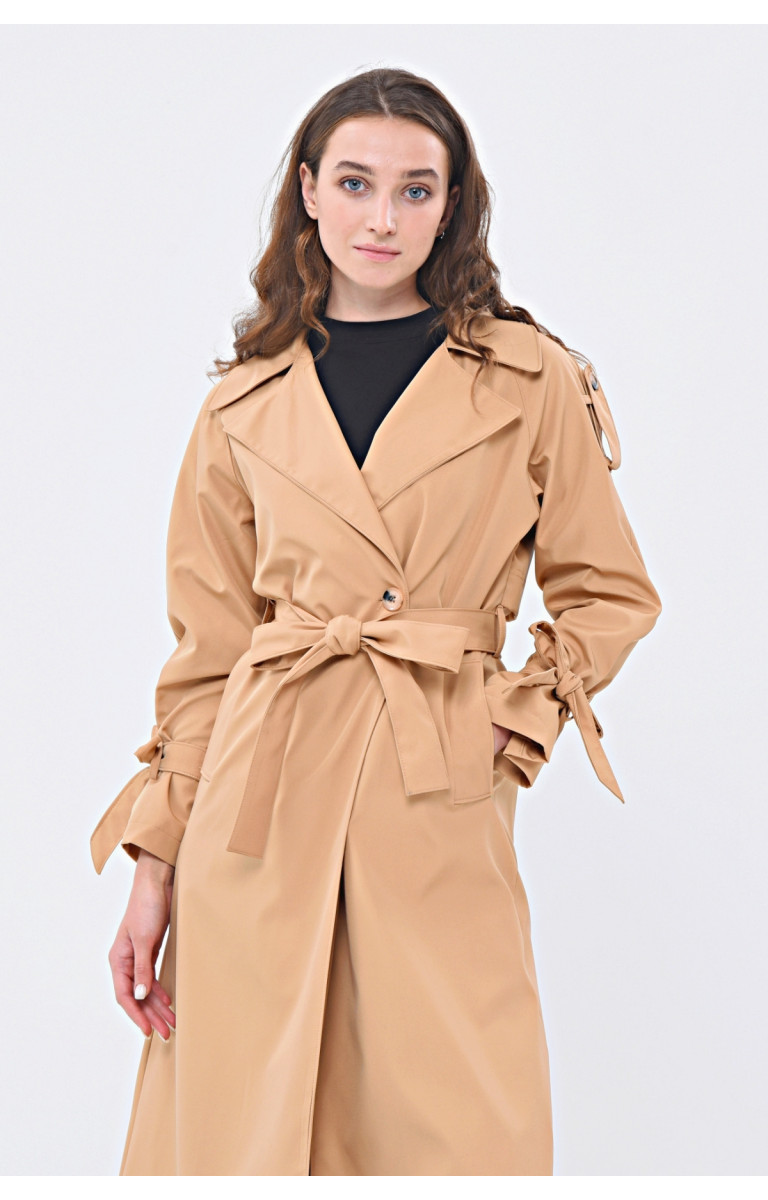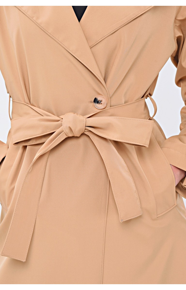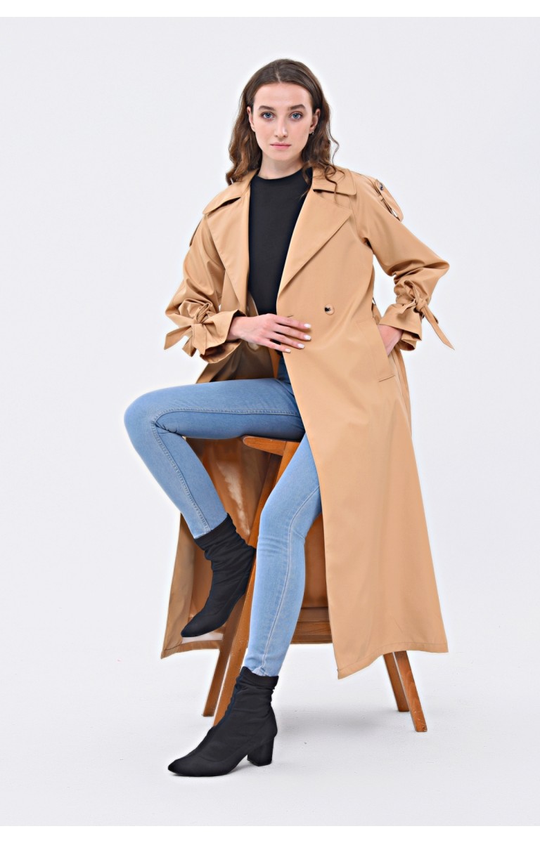 JAMİLA TEK DÜĞMELİ REGLAN KOL UZUN MEVSİMLİK ASTARLI TRENÇKOT - KAMEL
