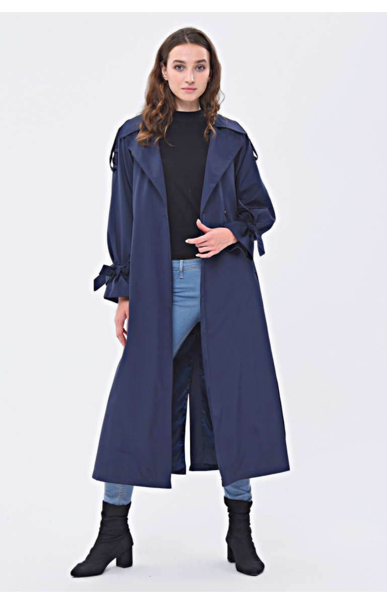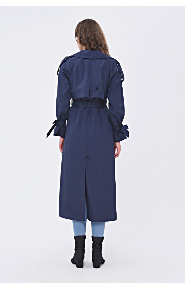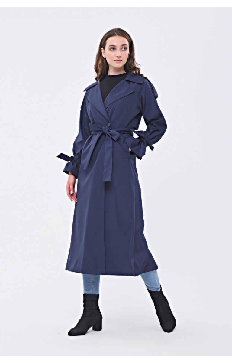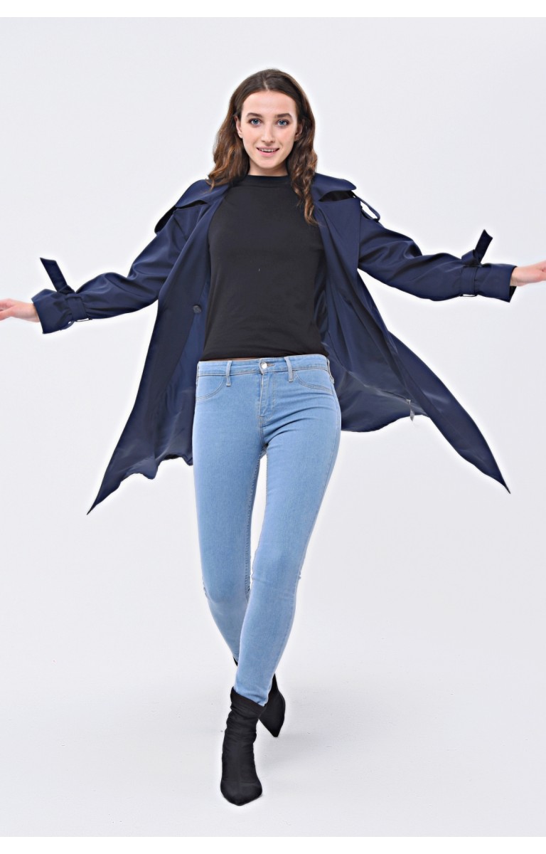 JAMİLA TEK DÜĞMELİ REGLAN KOL UZUN MEVSİMLİK ASTARLI TRENÇKOT - LACİVERT