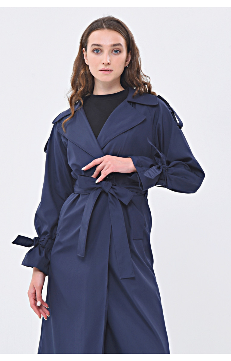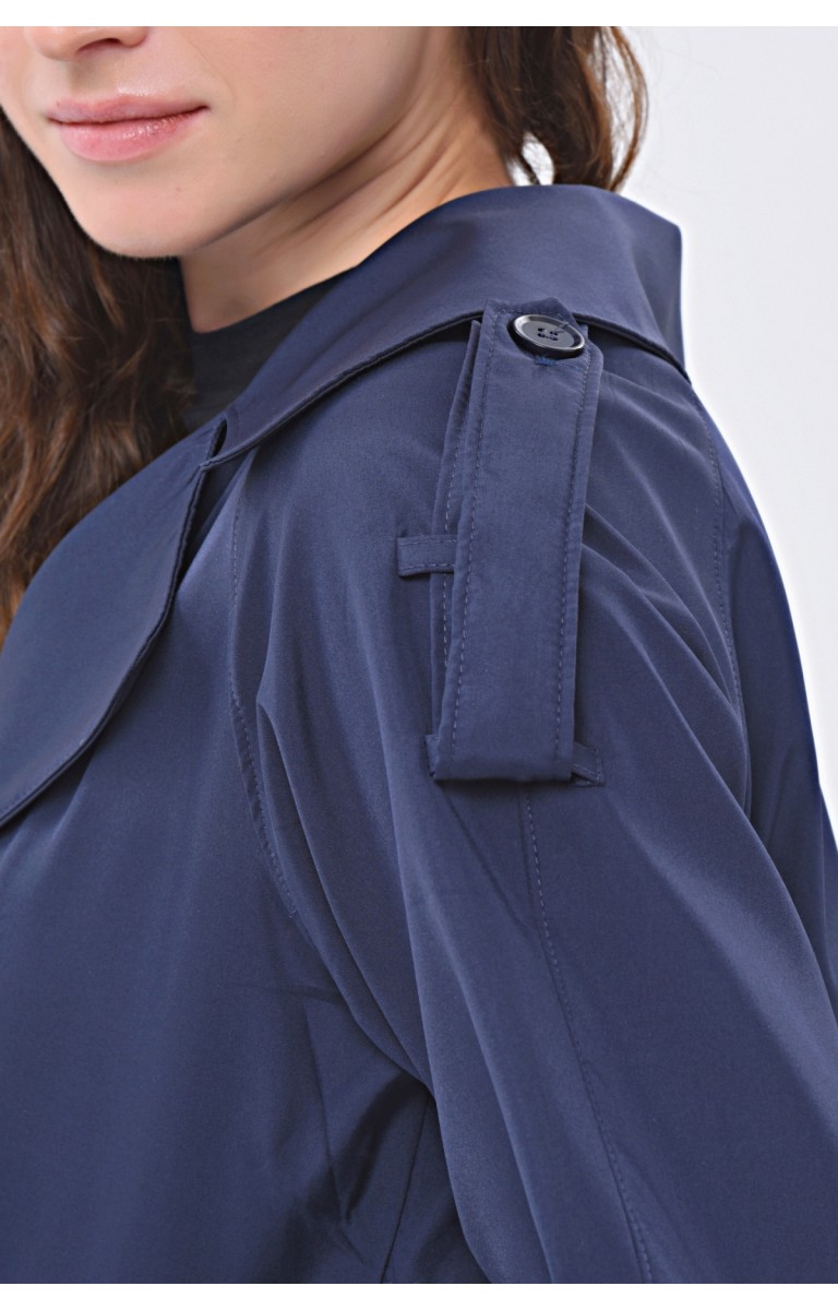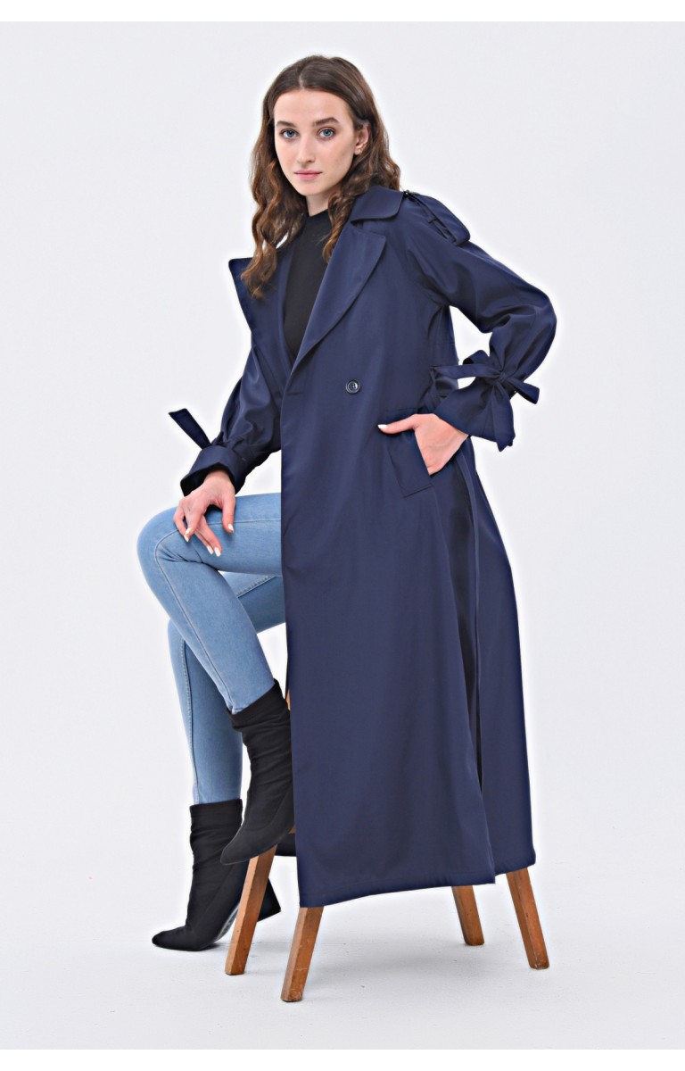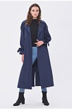 JAMİLA TEK DÜĞMELİ REGLAN KOL UZUN MEVSİMLİK ASTARLI TRENÇKOT - LACİVERT