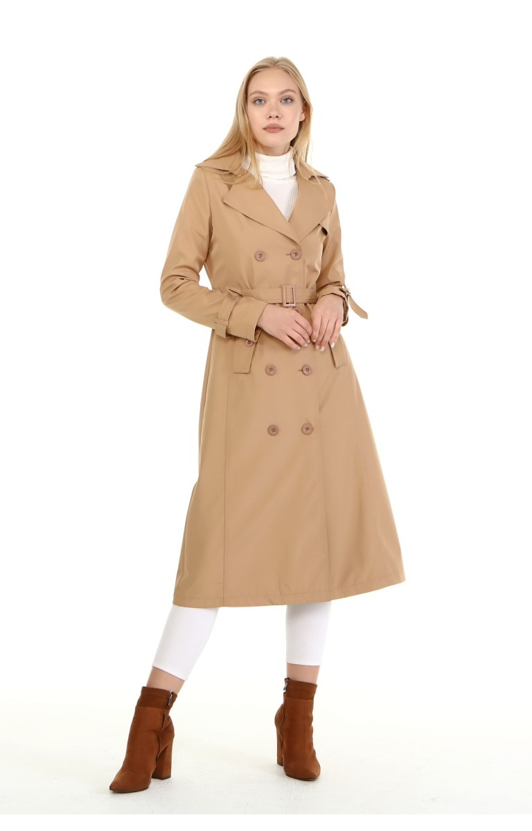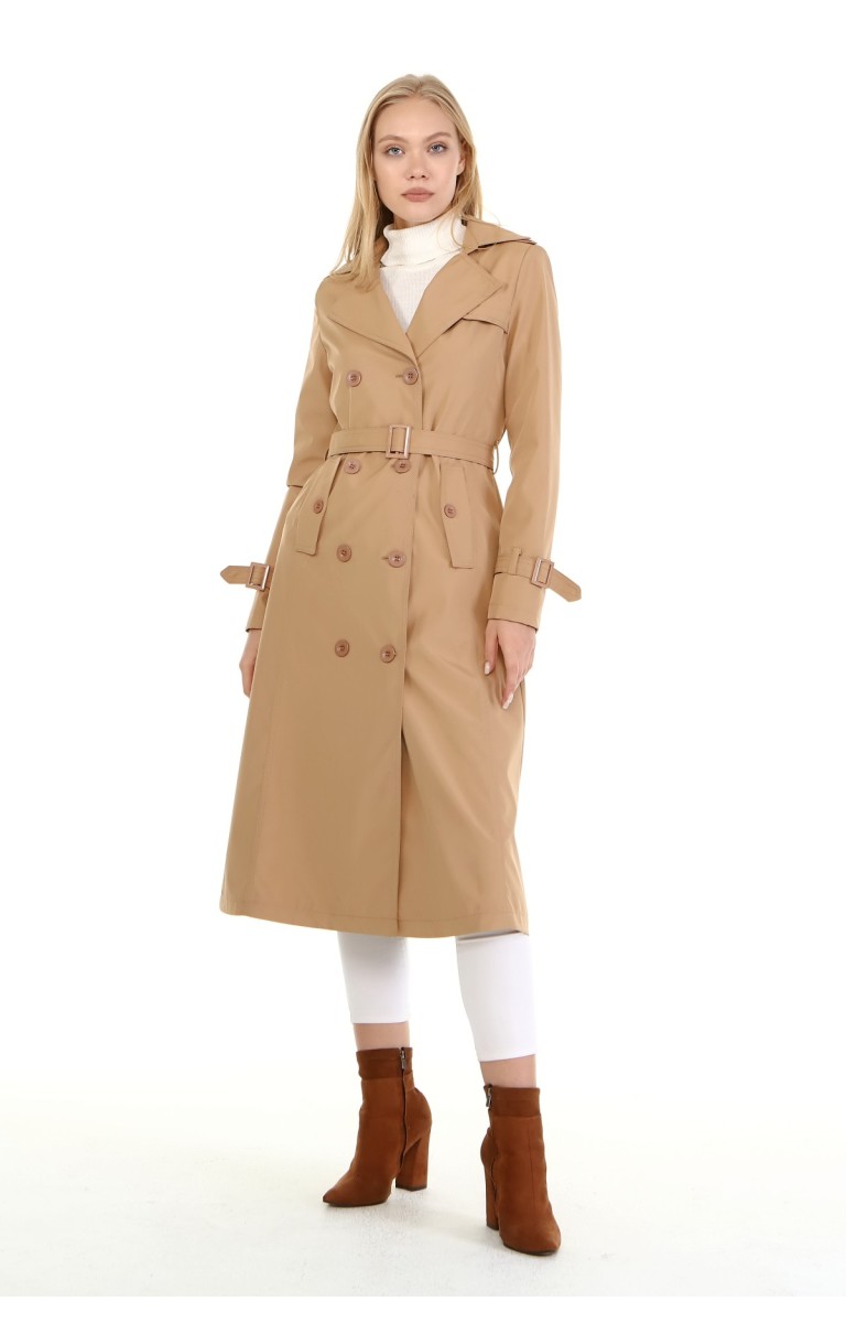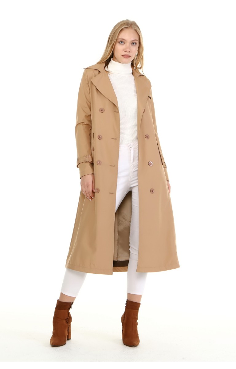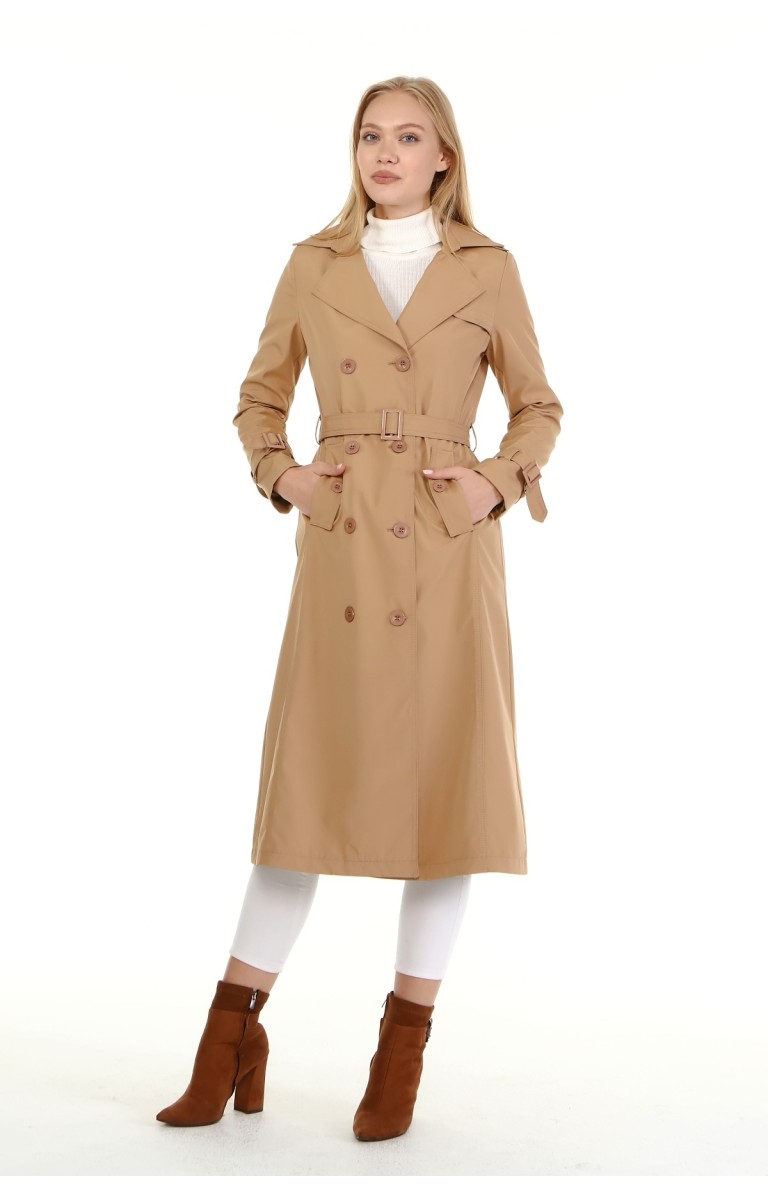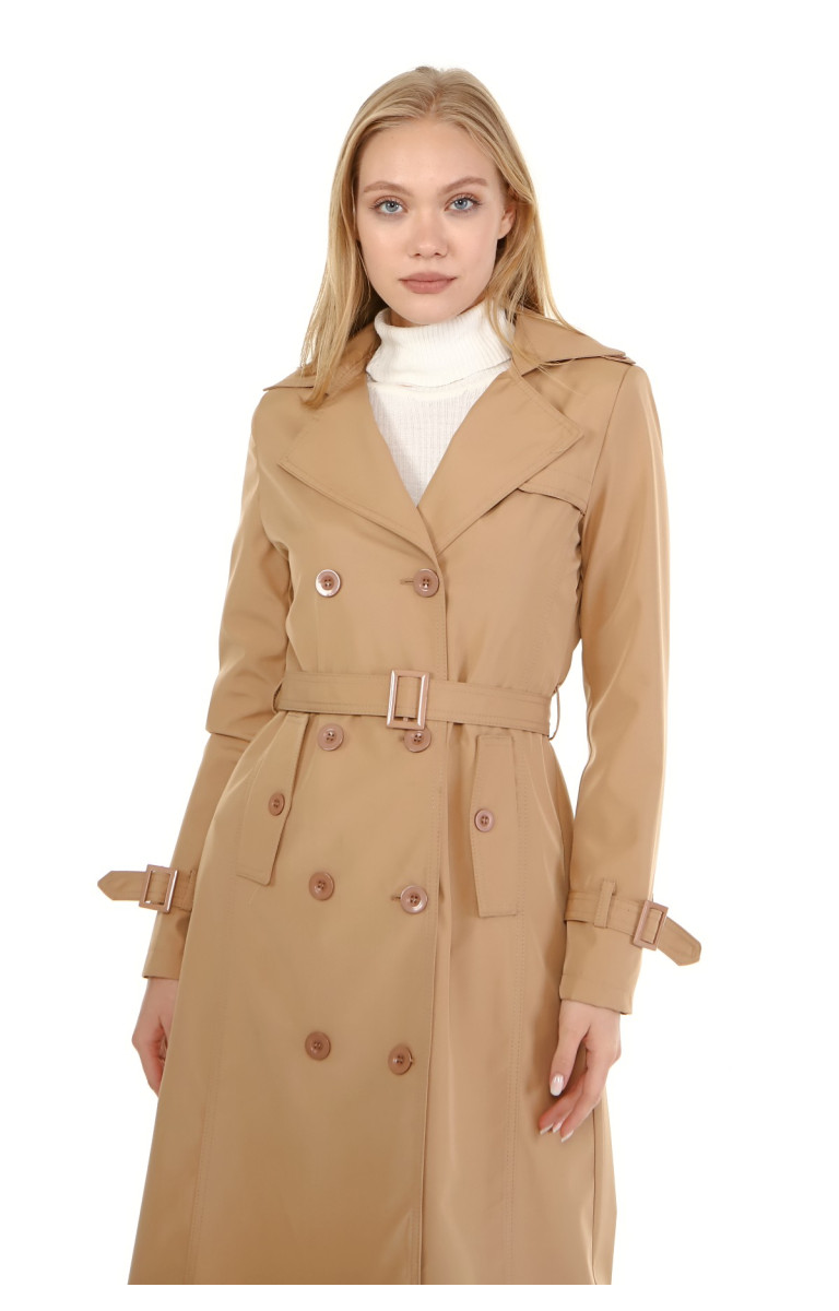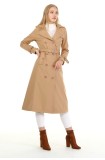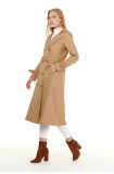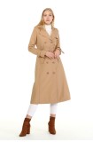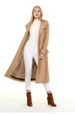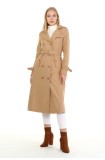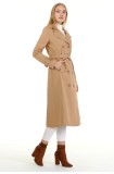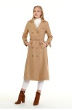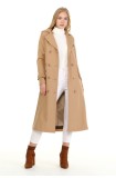 JAMİLA MEVSİMLİK ASTARLI UZUN TRENÇKOT - KAMEL