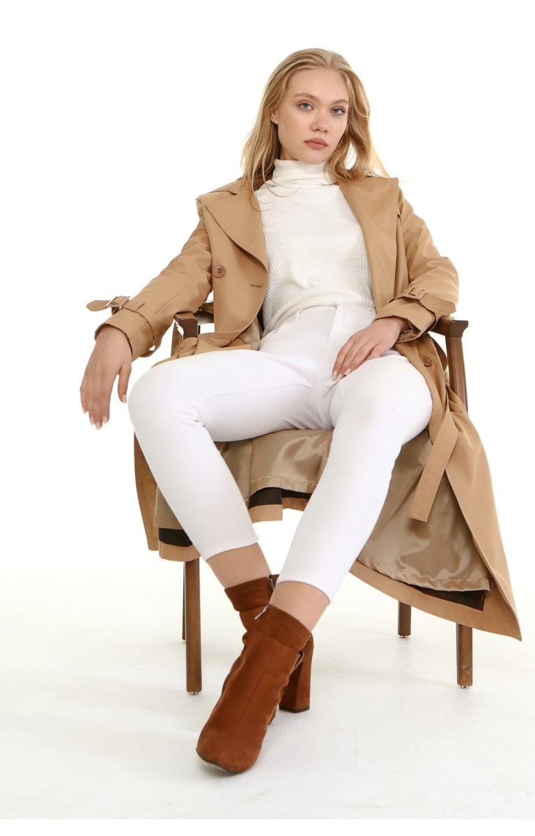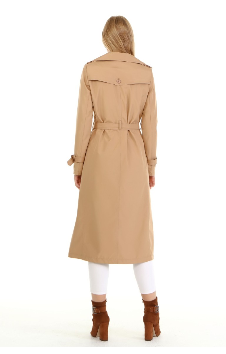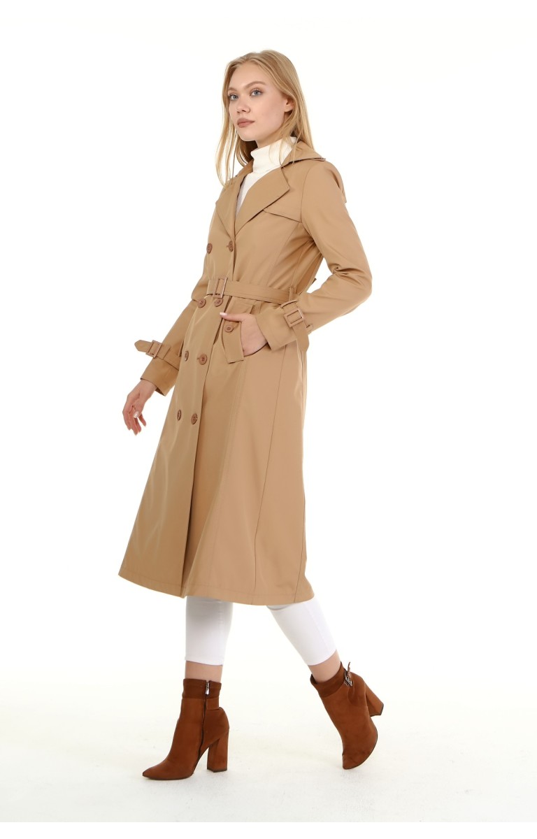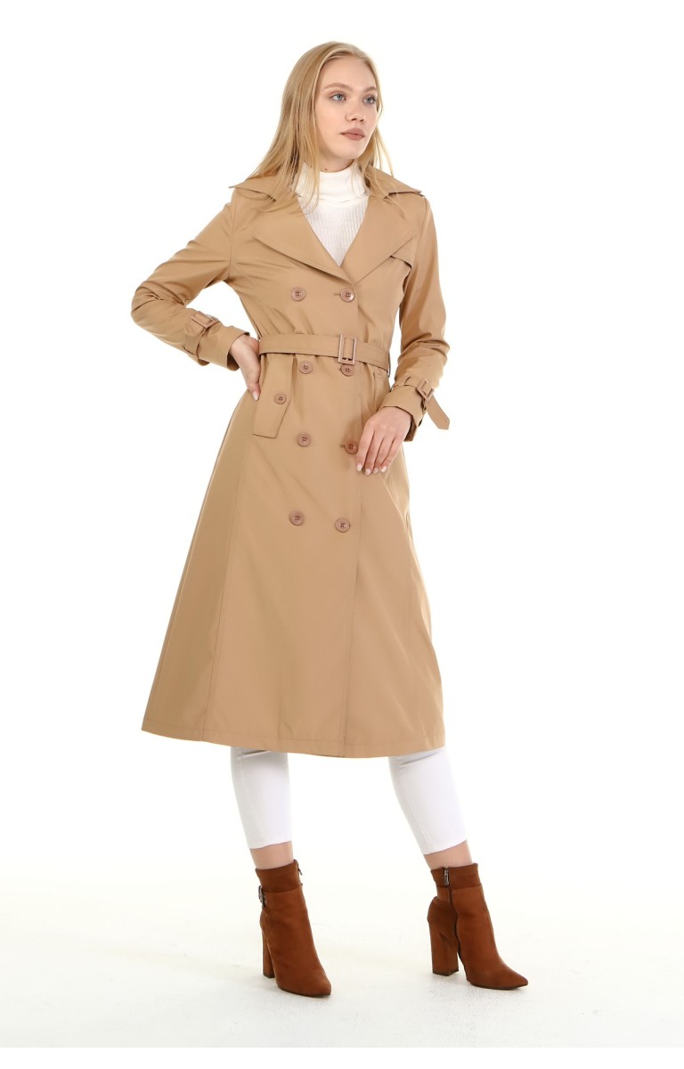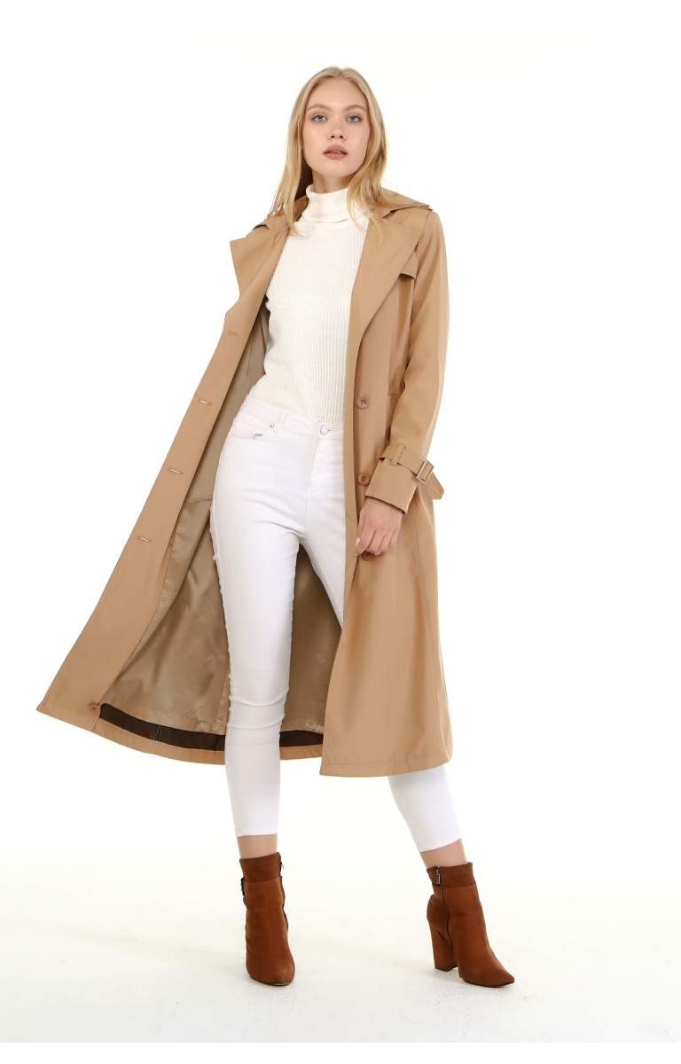 JAMİLA MEVSİMLİK ASTARLI UZUN TRENÇKOT - KAMEL