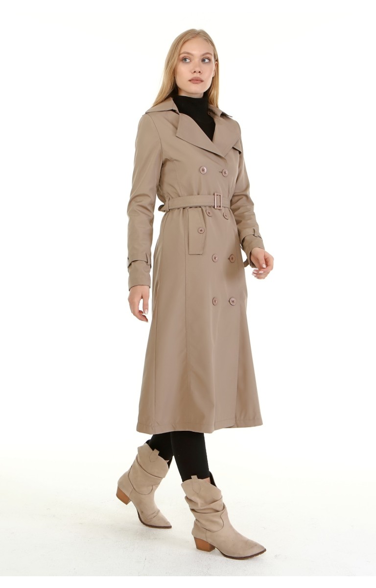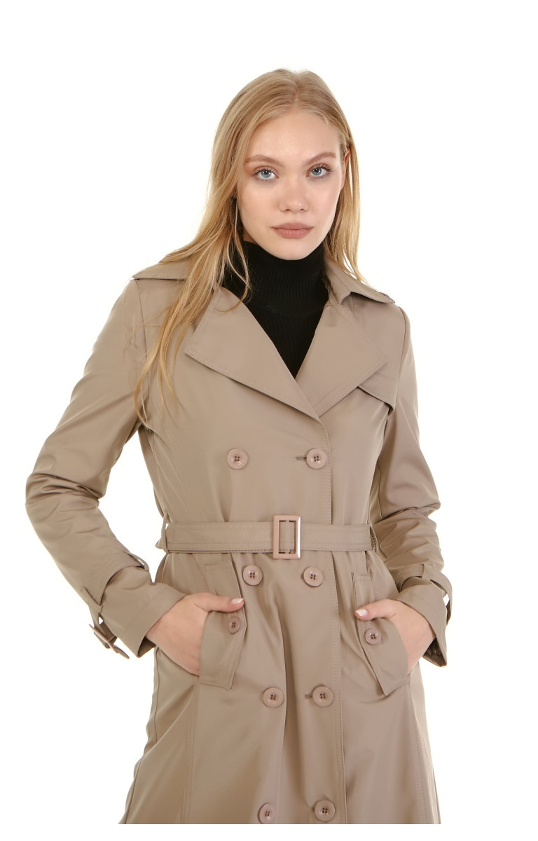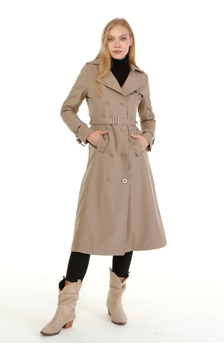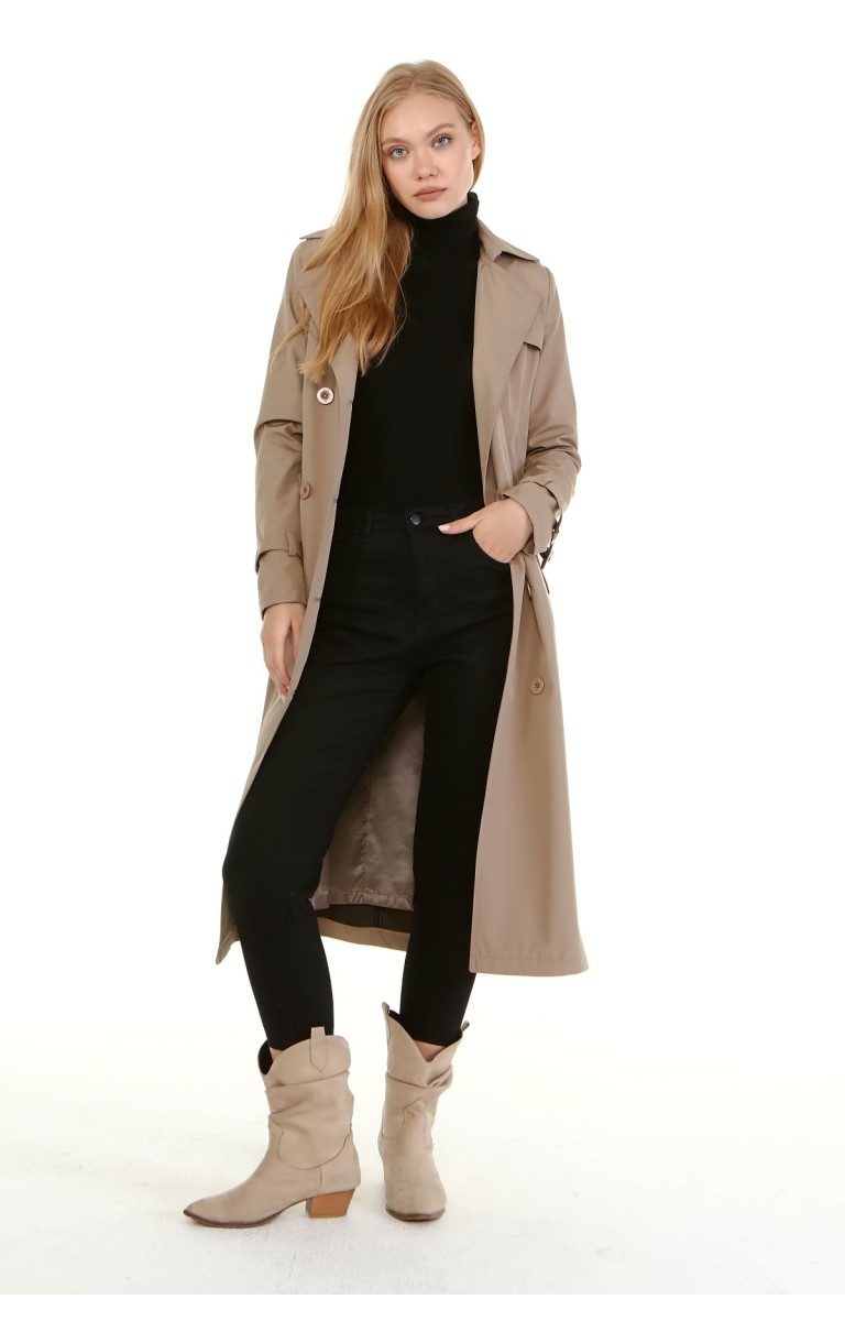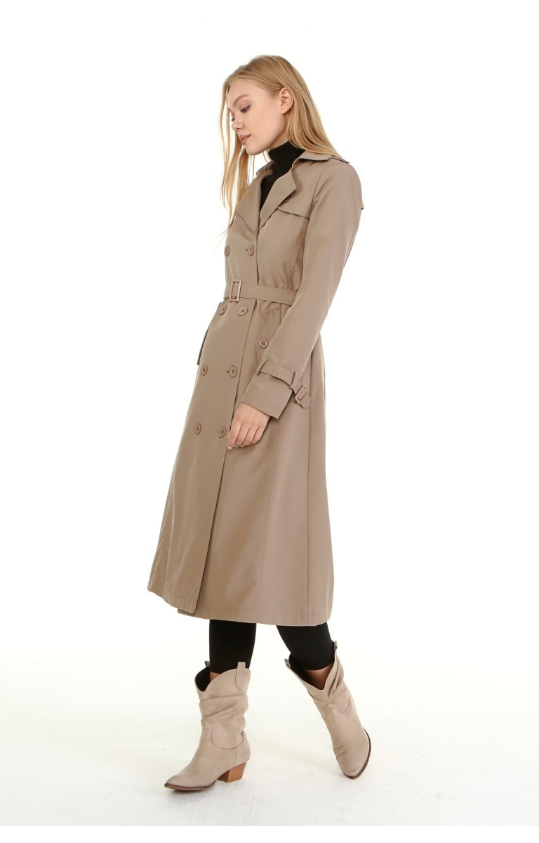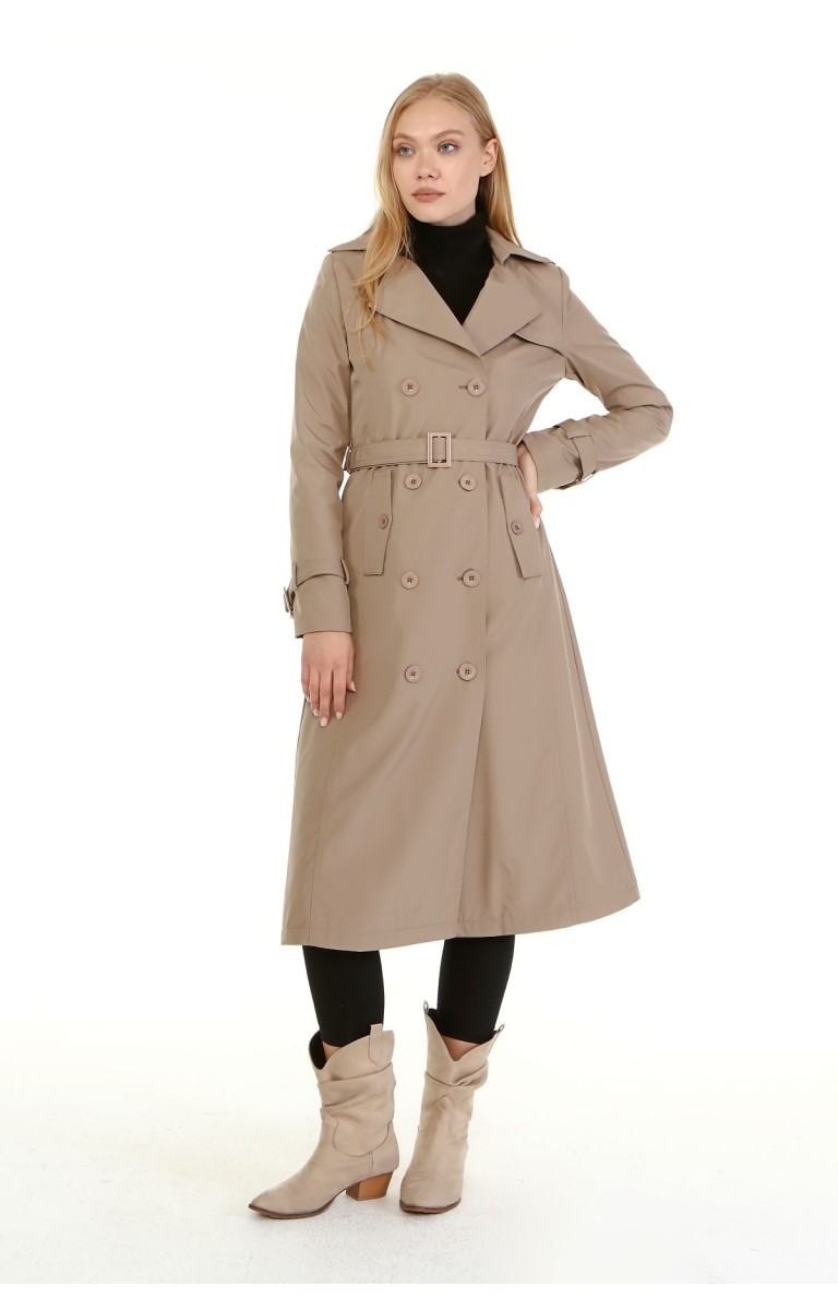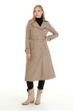 JAMİLA MEVSİMLİK ASTARLI UZUN TRENÇKOT - VİZON