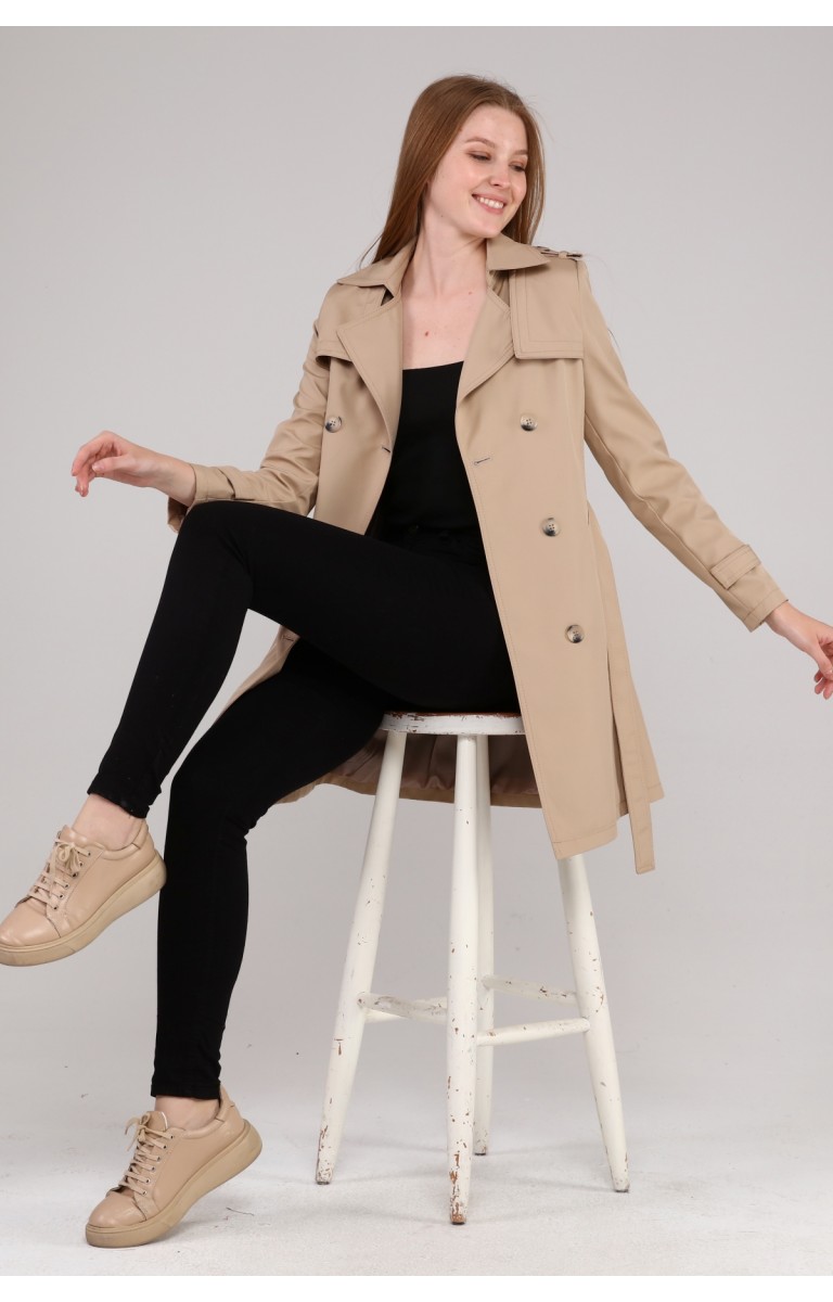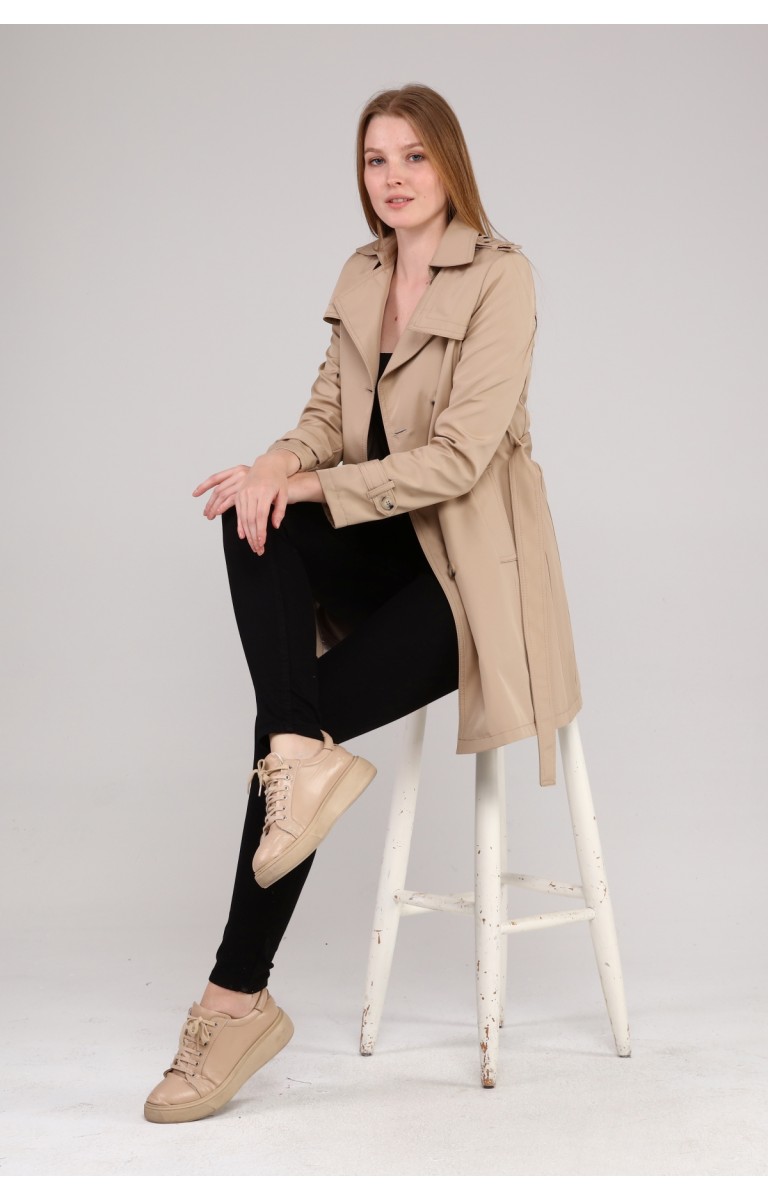 Jamila Mevsimlik İç Astarlı Kadın Trençkot-BEJ
