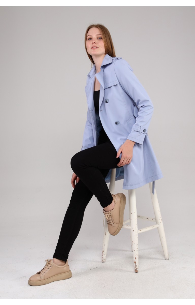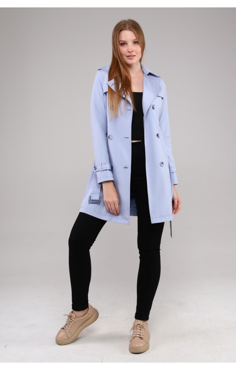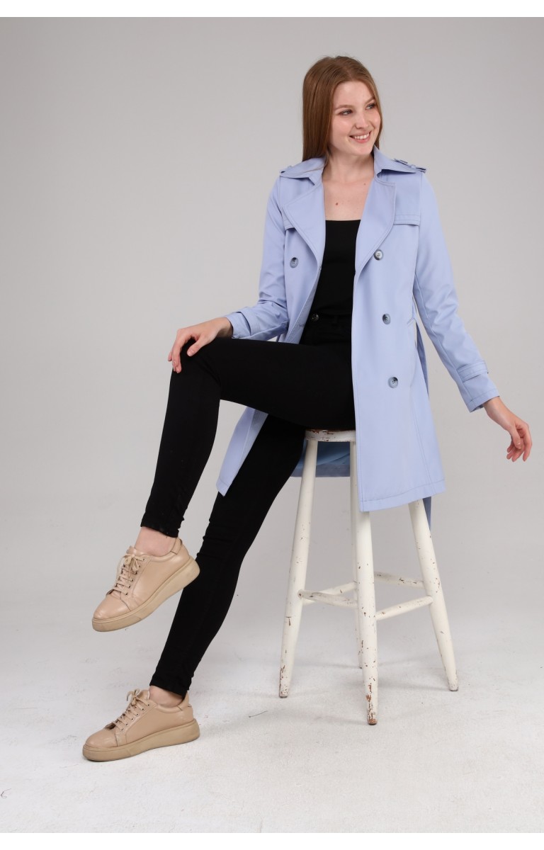 Jamila Mevsimlik İç Astarlı Kadın Trençkot-Bulut Mavisi