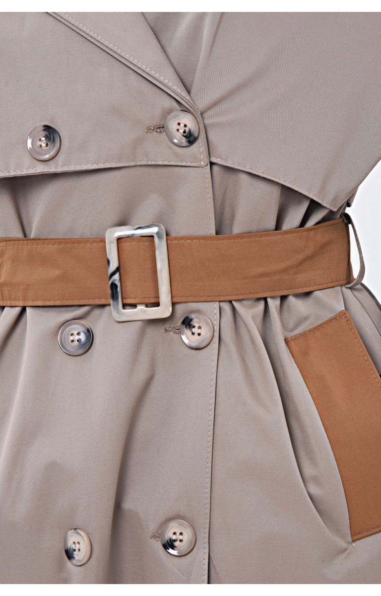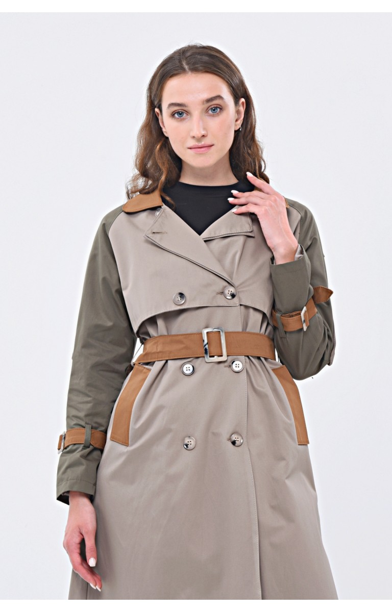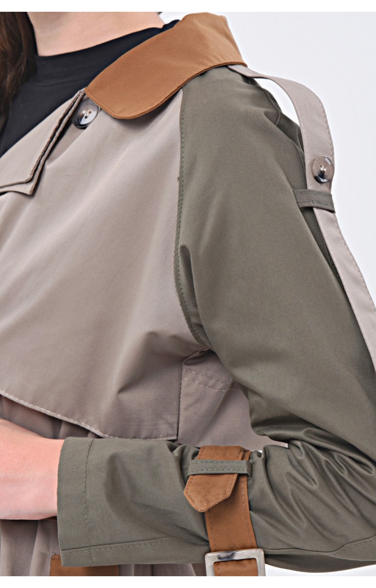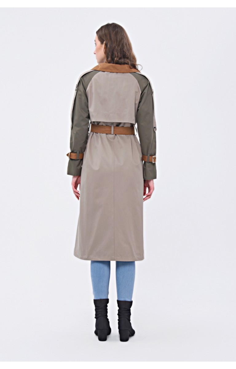 ÜÇ RENKLİ UZUN MEVSİMLİK ASTARLI TRENÇKOT/KAP - VİZON