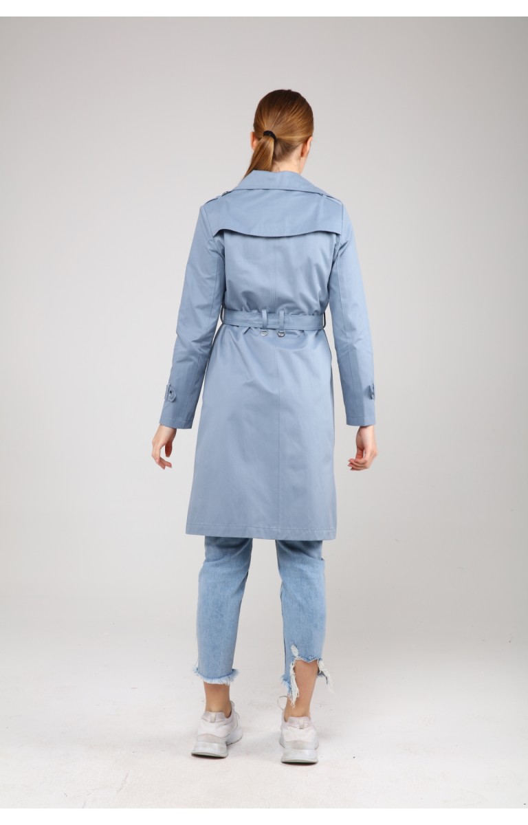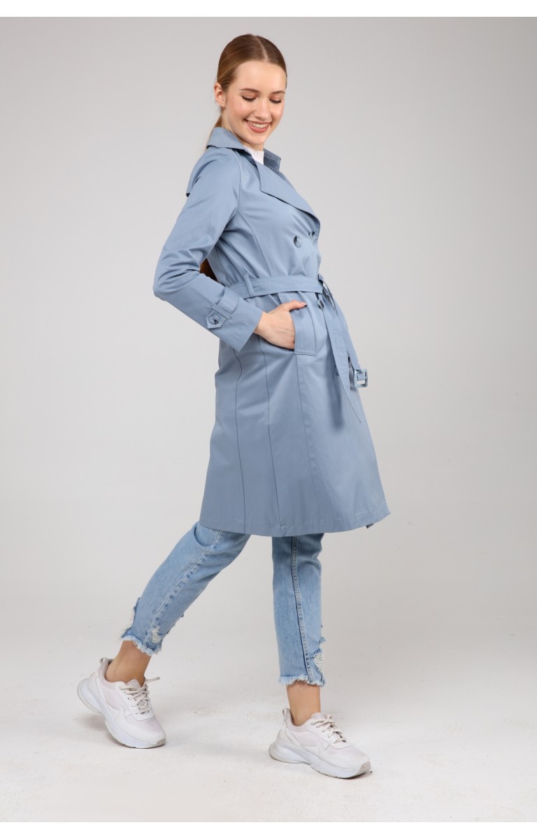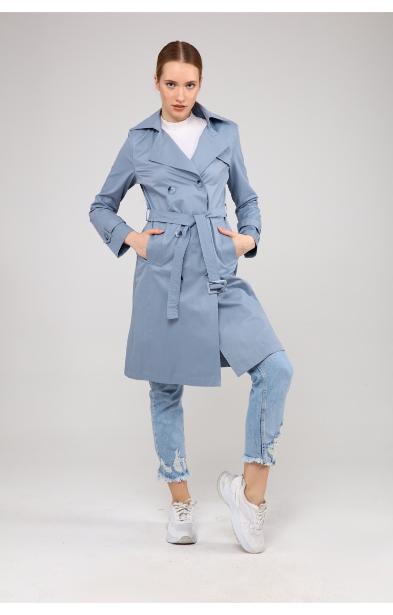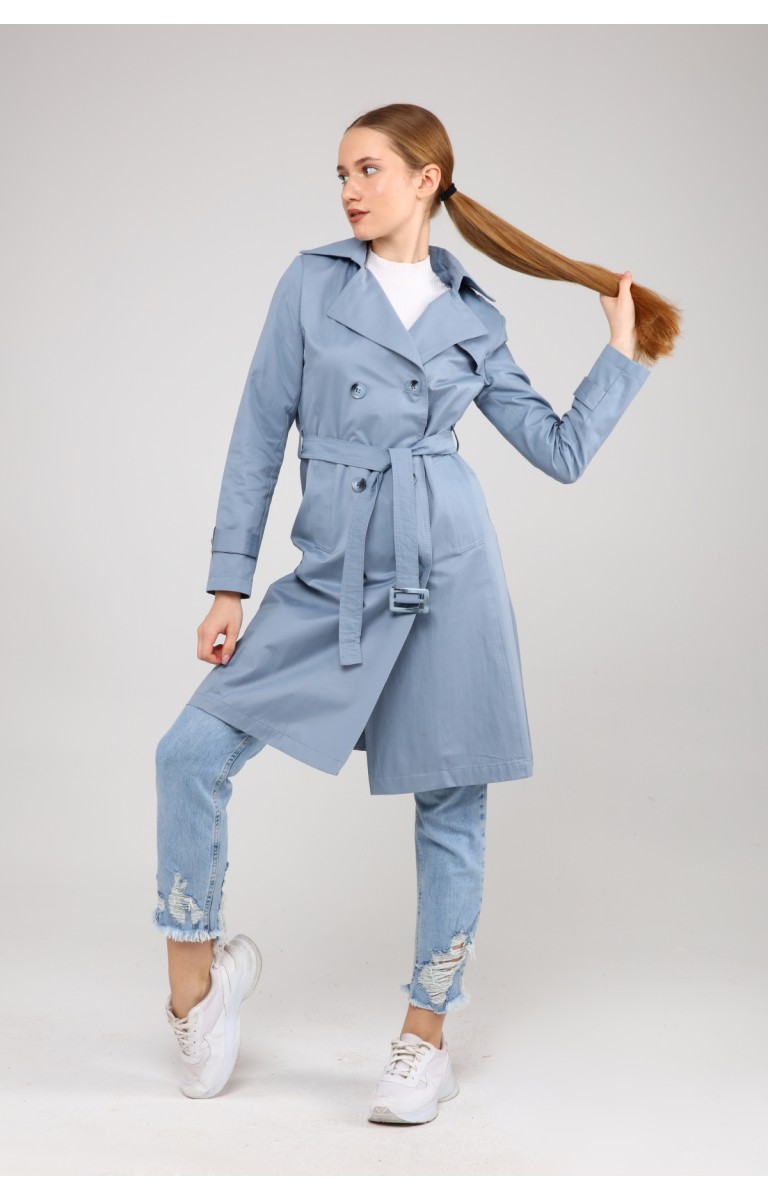 KADIN YAZLIK ORTA BOY ASTARSIZ TRENÇKOT- BULUT MAVİSİ