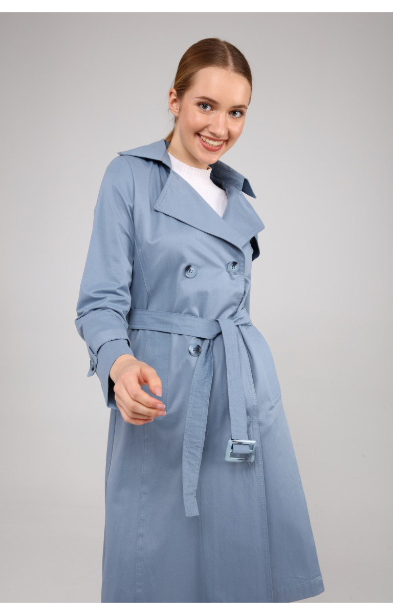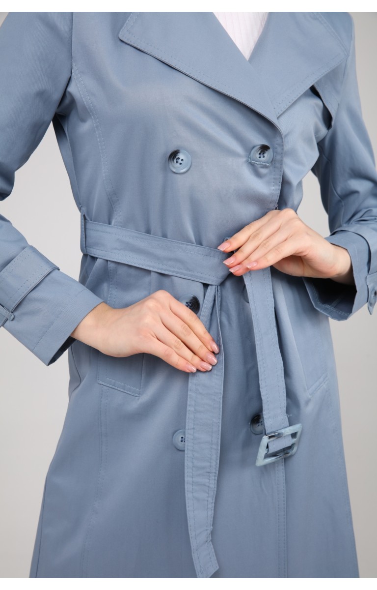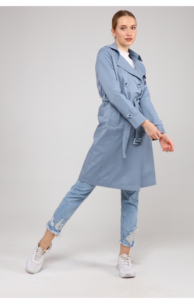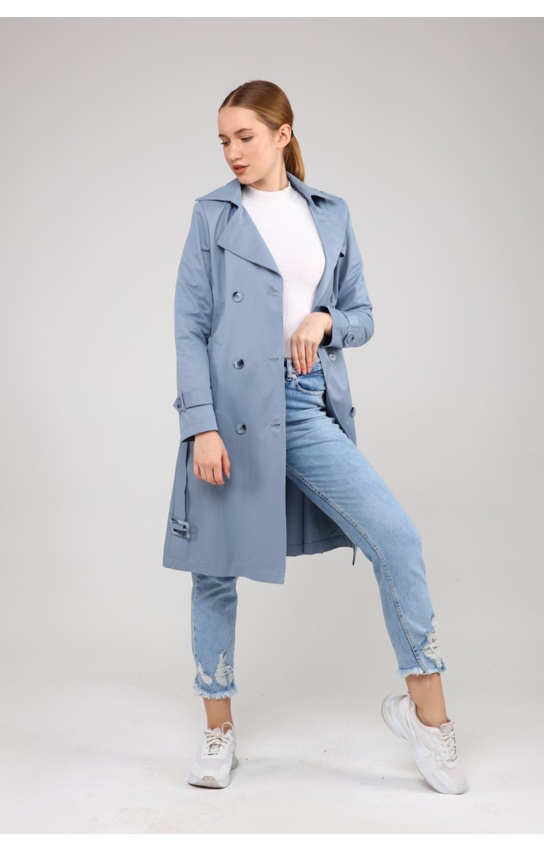 KADIN YAZLIK ORTA BOY ASTARSIZ TRENÇKOT- BULUT MAVİSİ