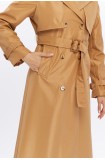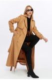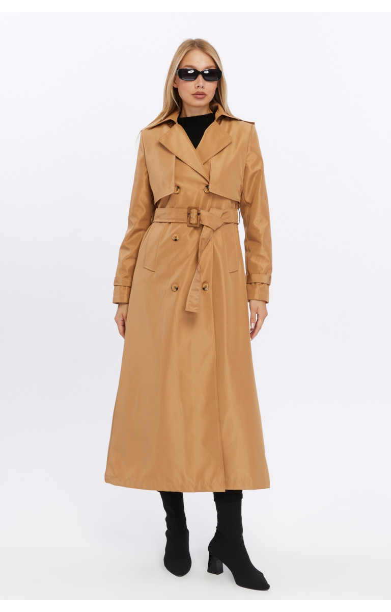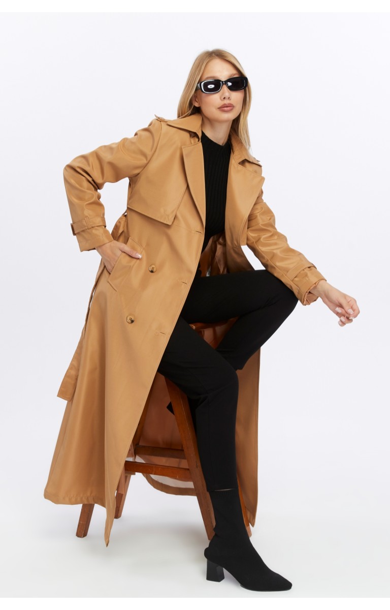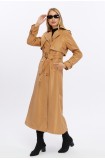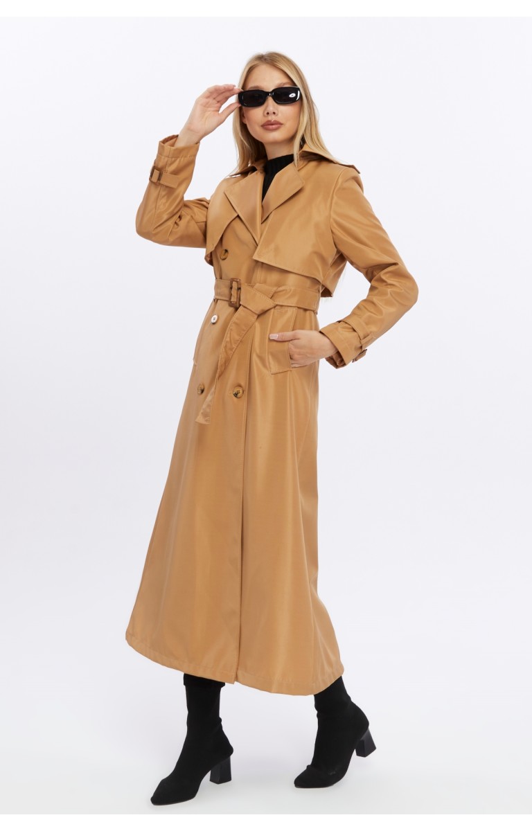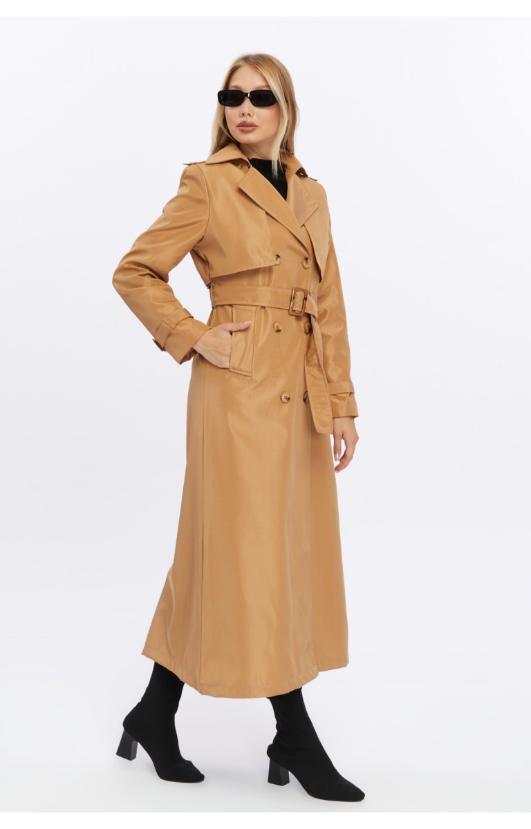 Çift Kapaklı Uzun Boy Kadın Trençkot - Kamel
