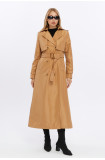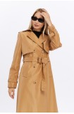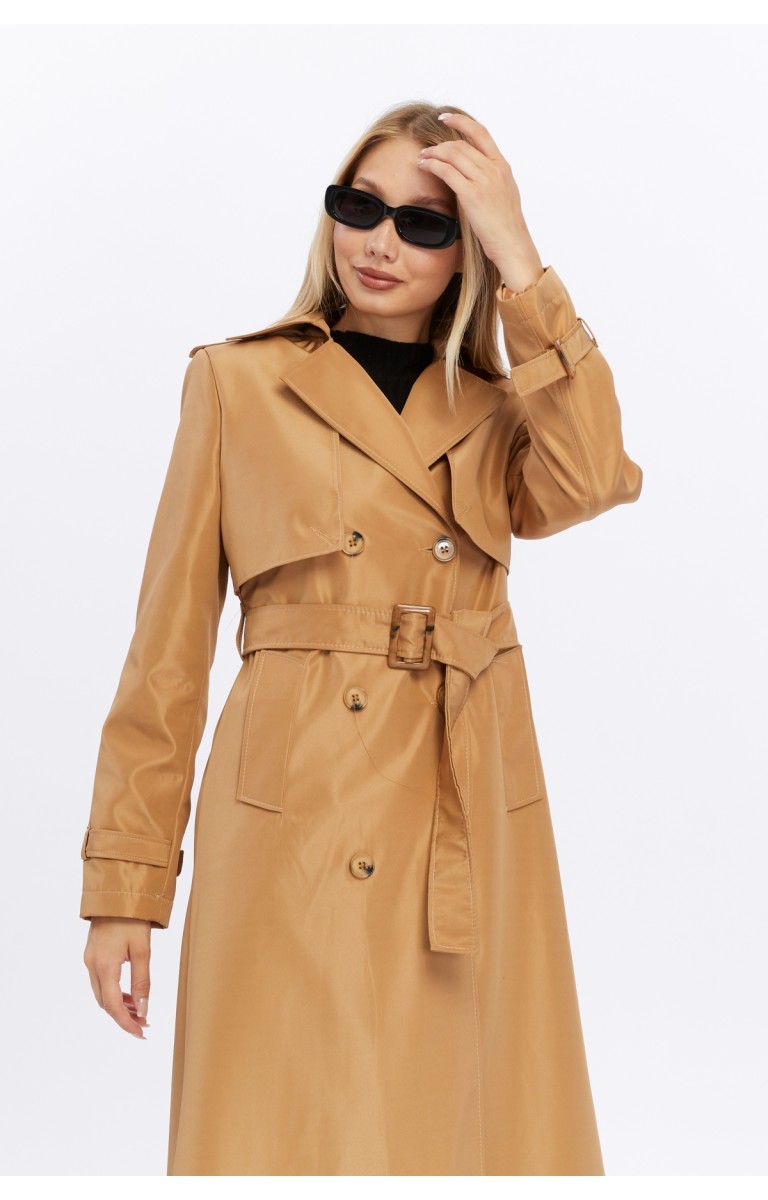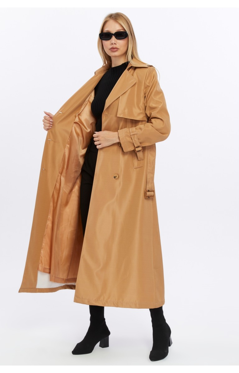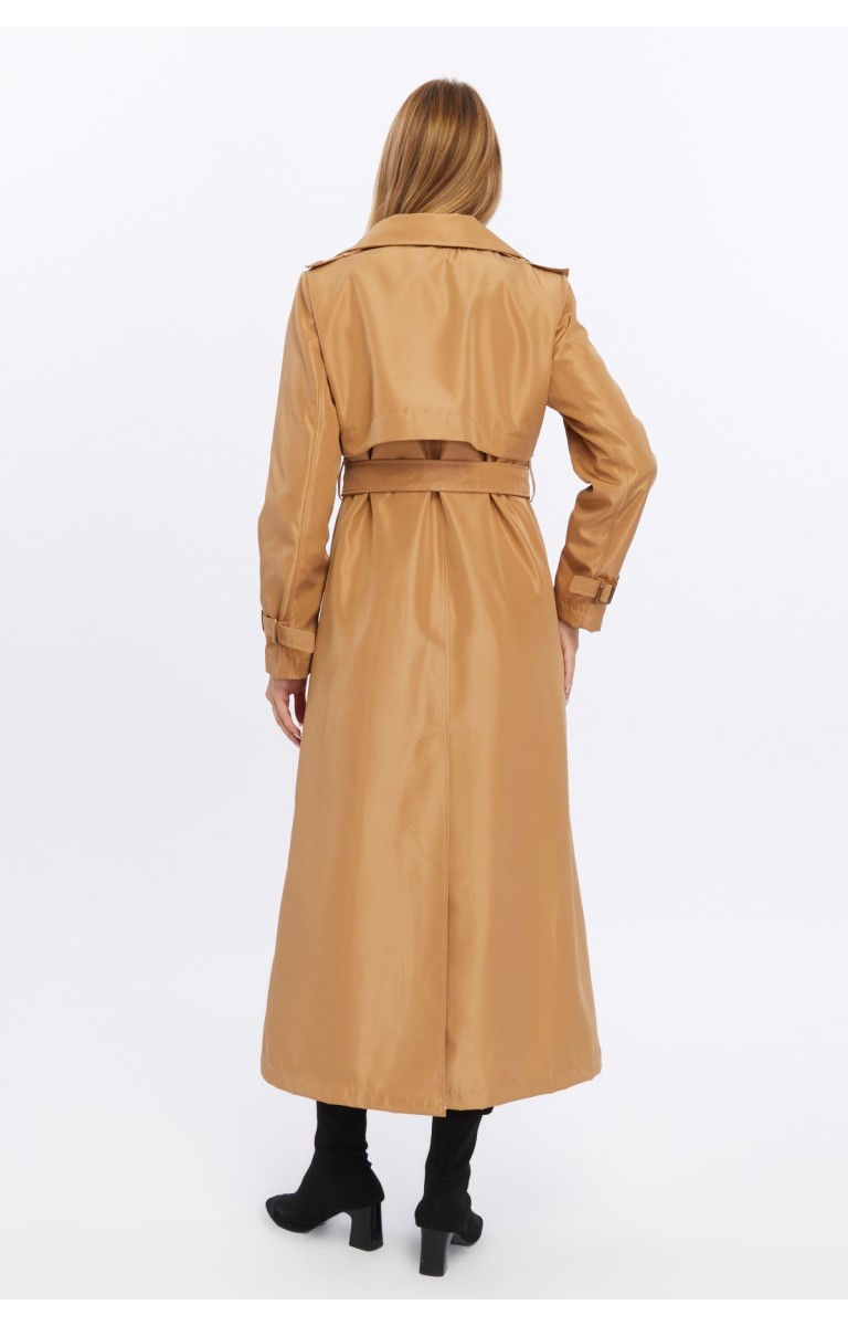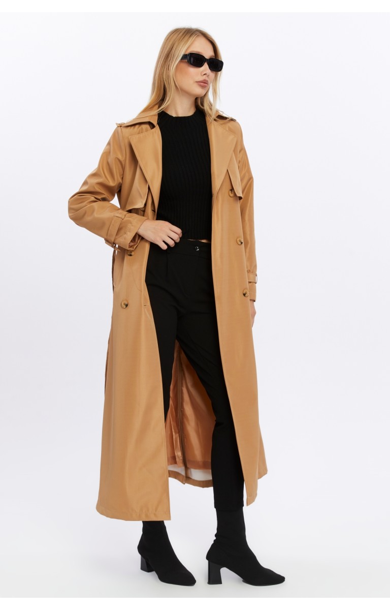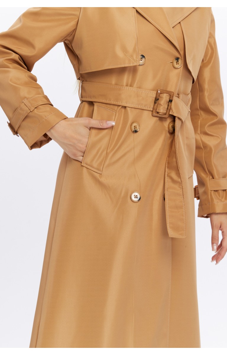 Çift Kapaklı Uzun Boy Kadın Trençkot - Kamel