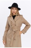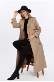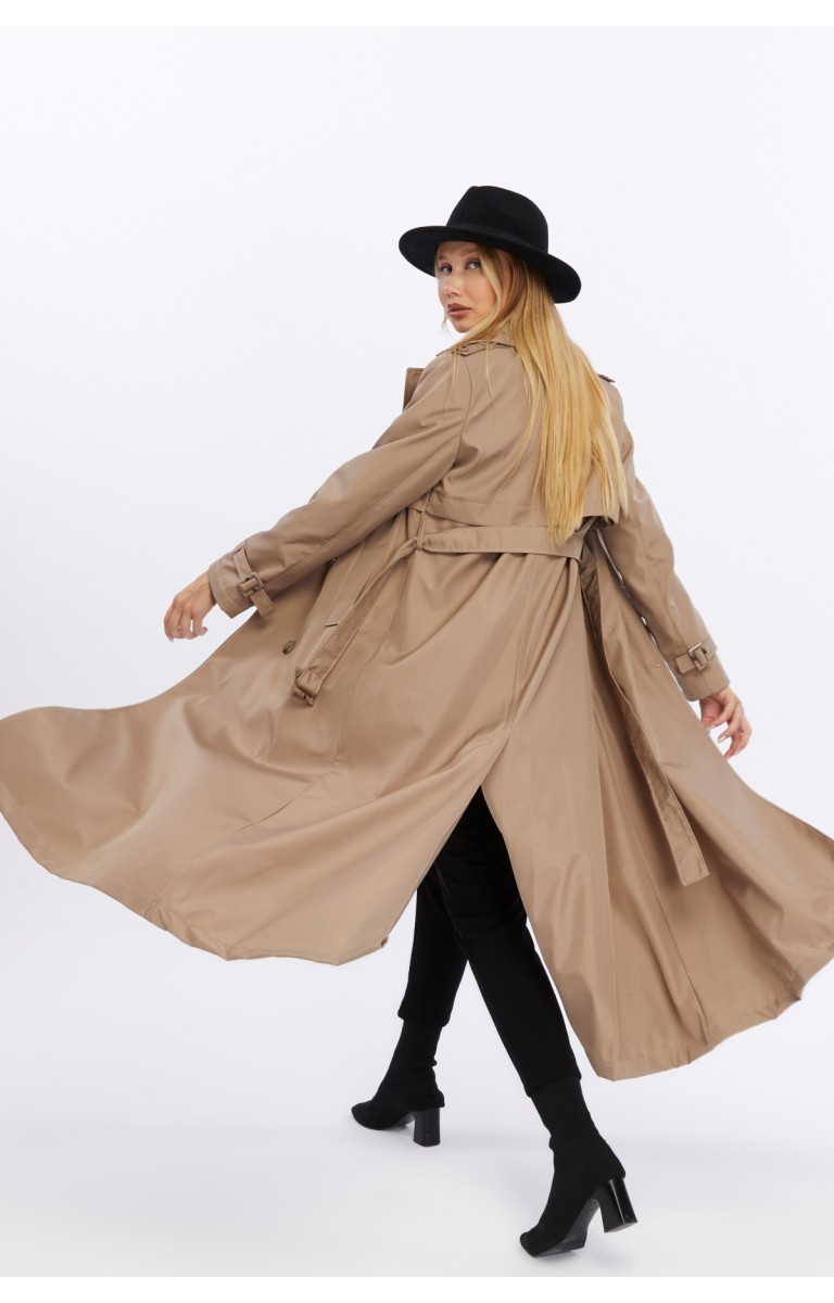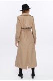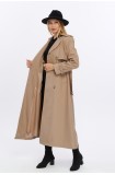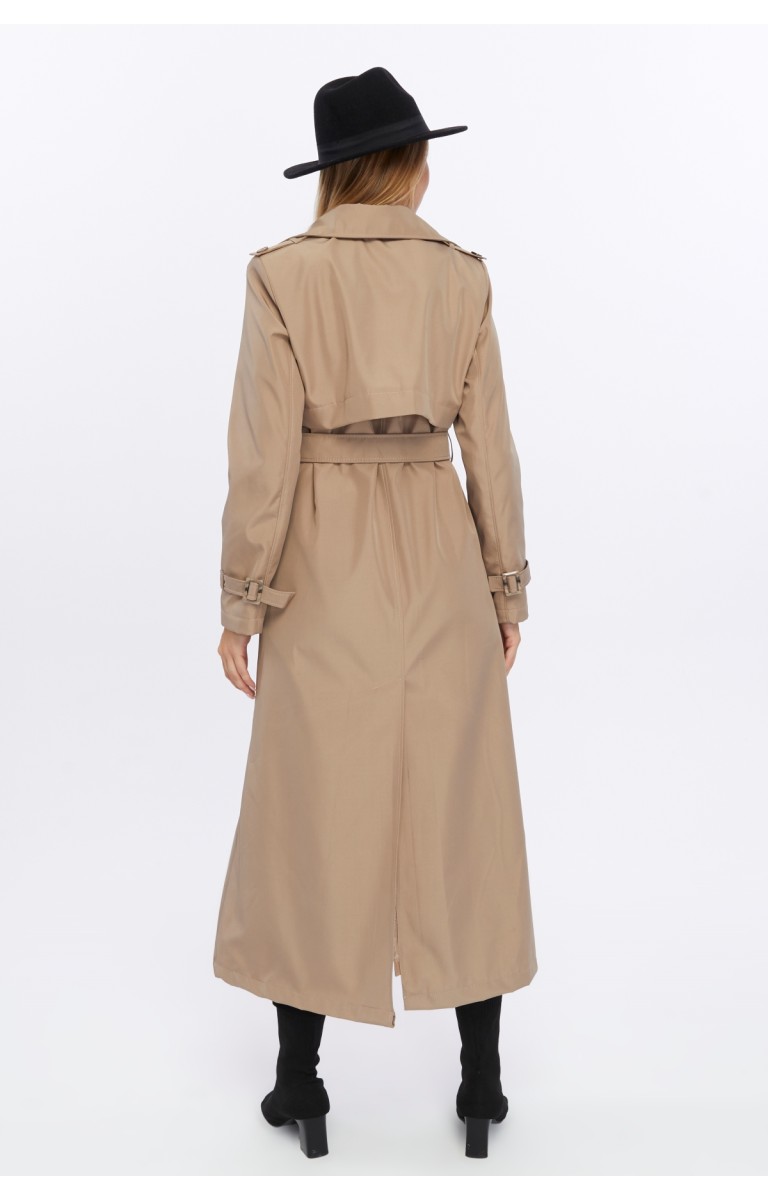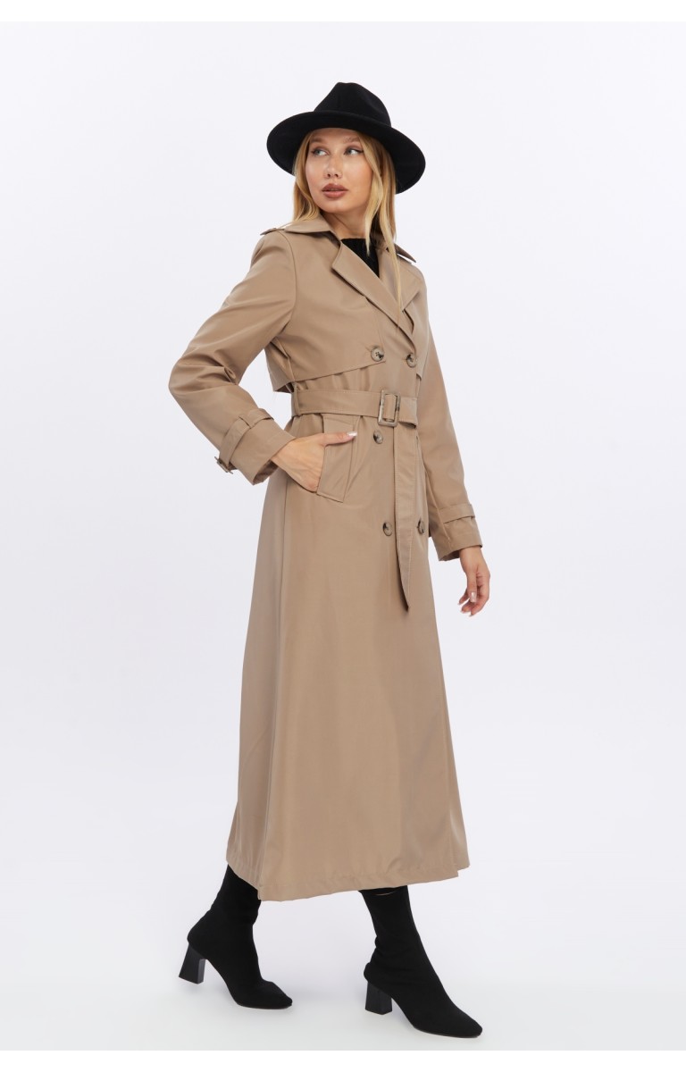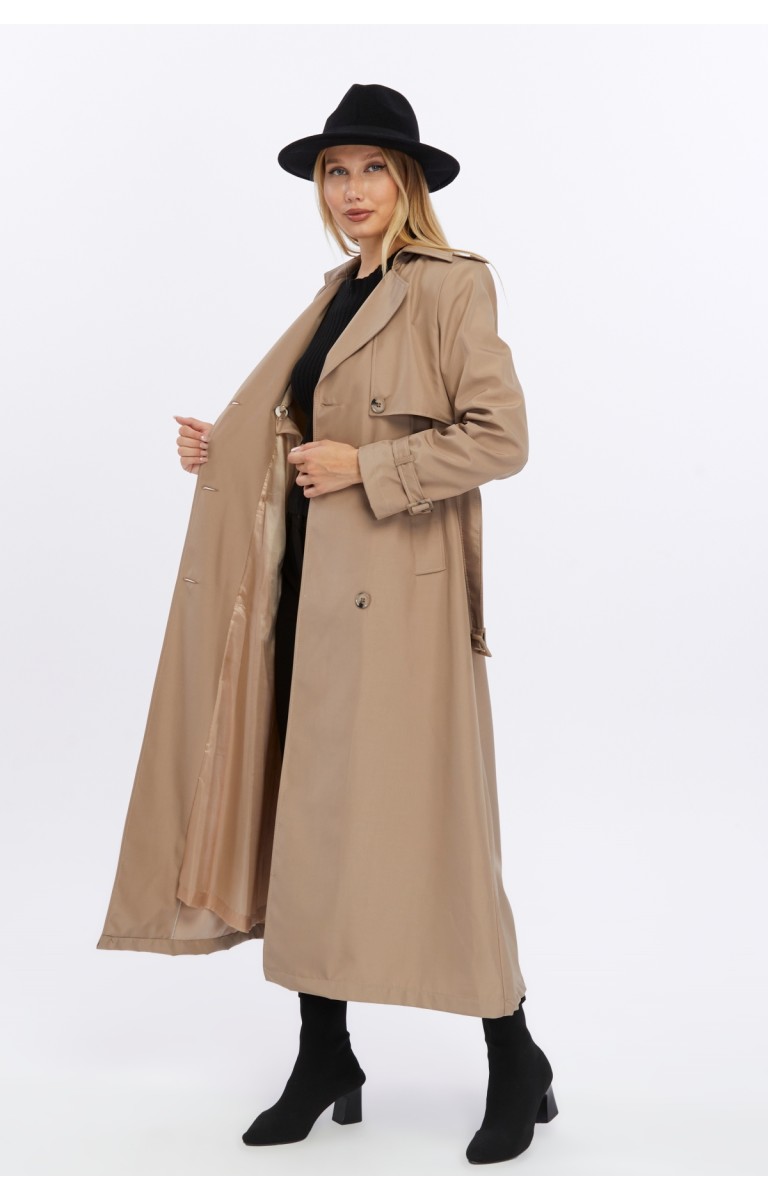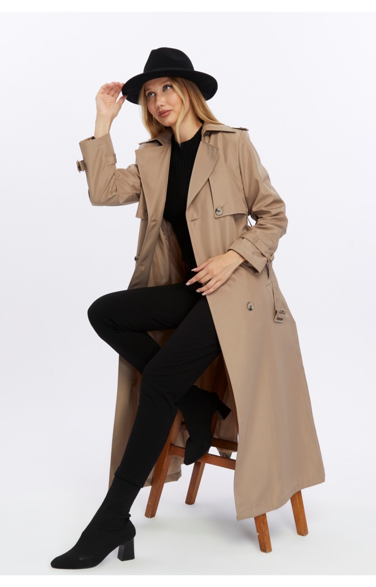 Çift Kapaklı Uzun Boy Kadın Trençkot - Vizon