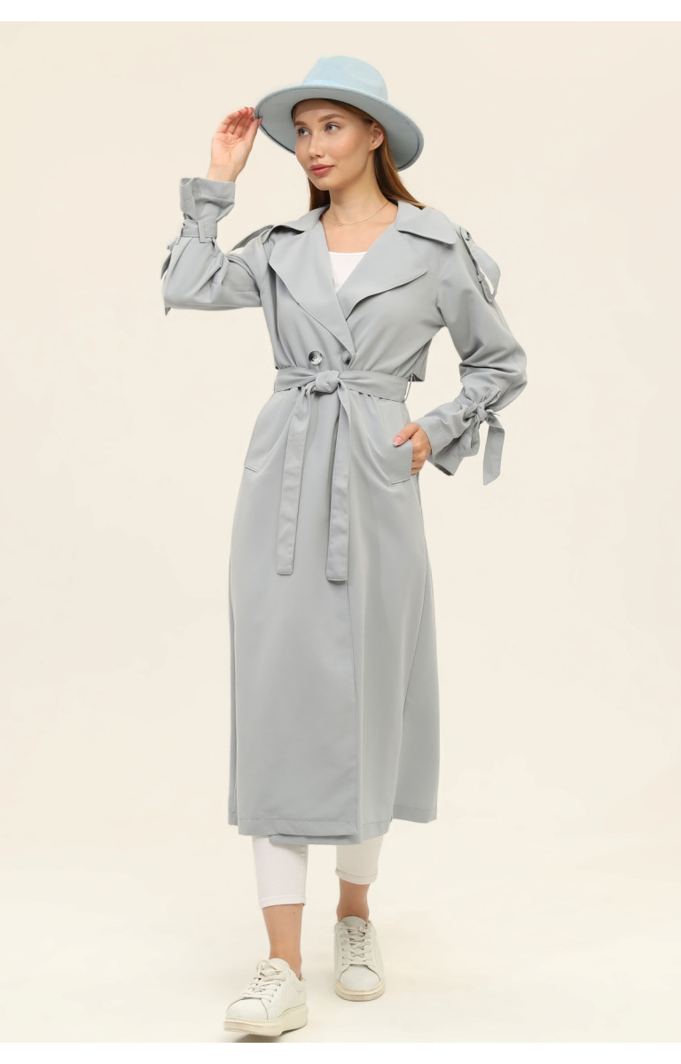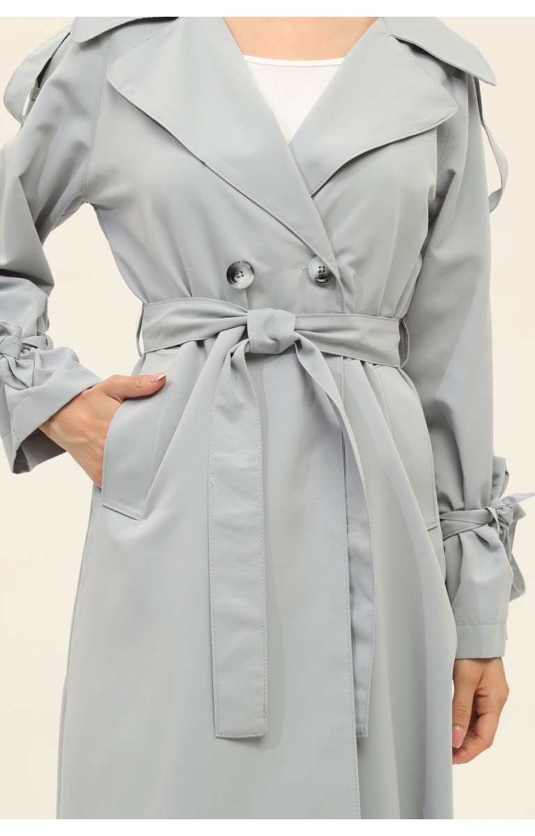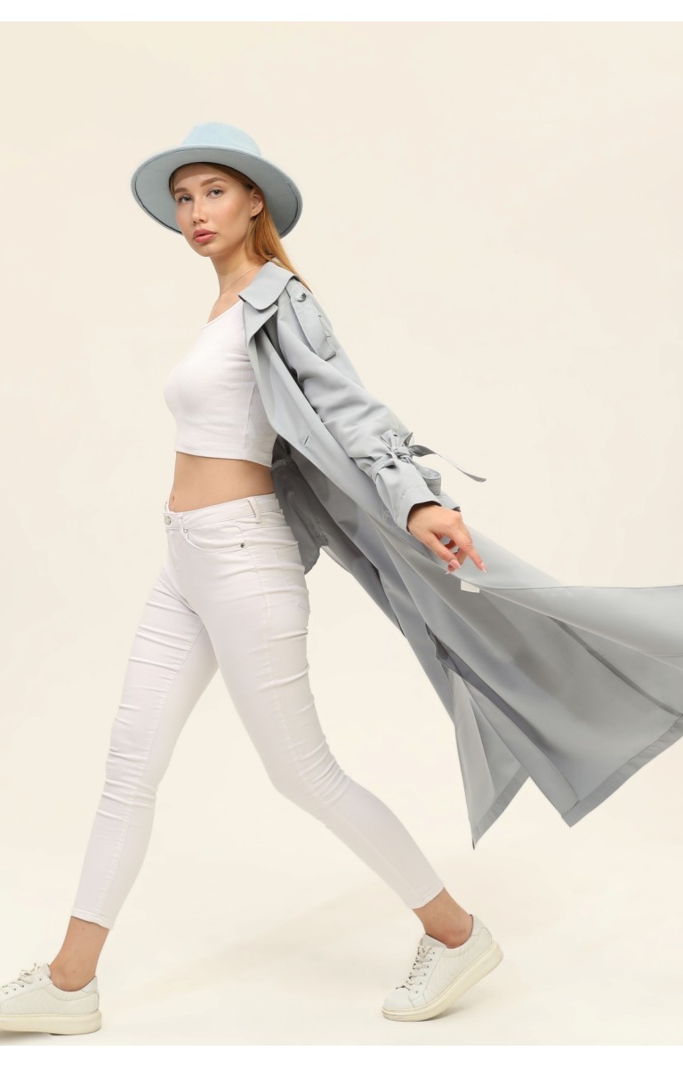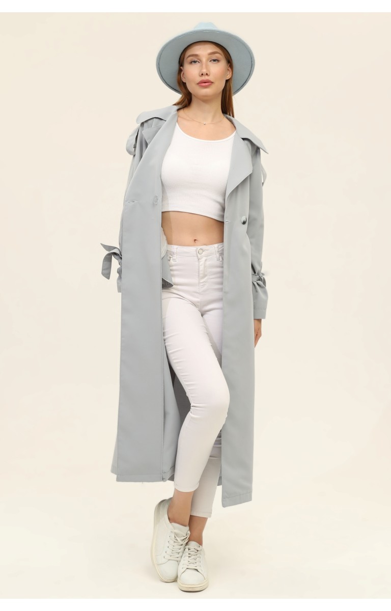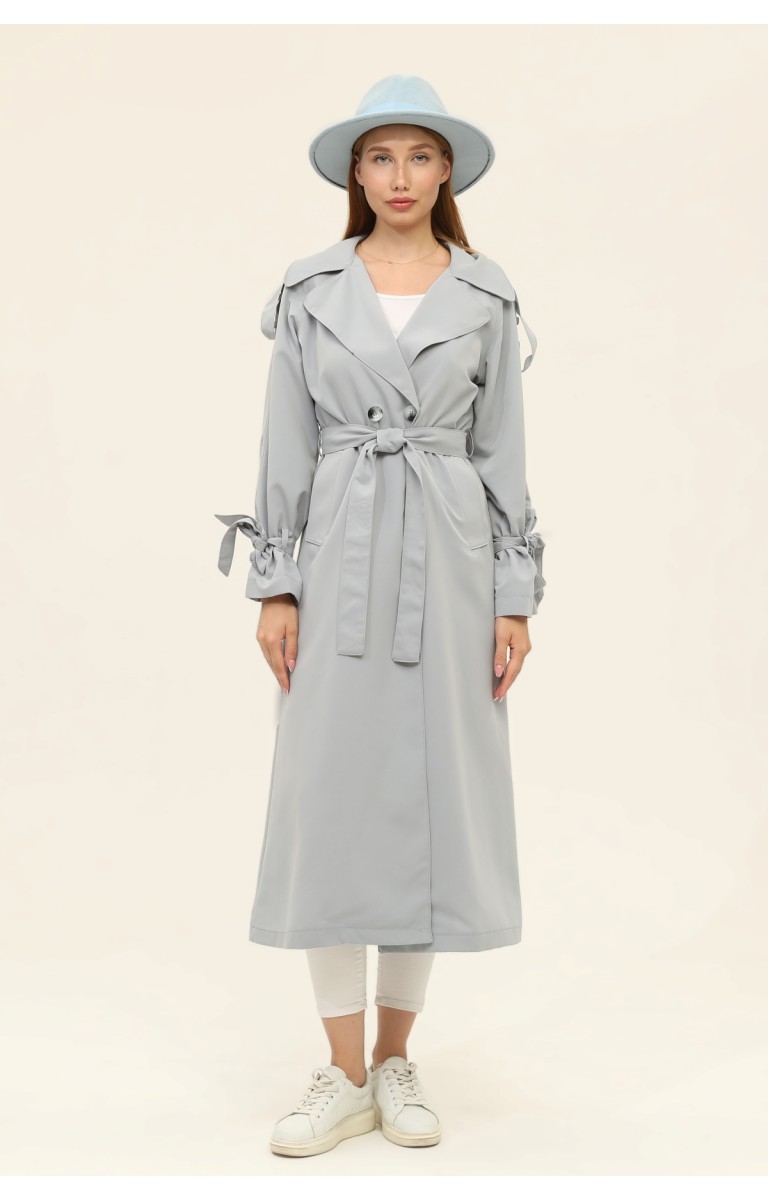 1. SINIF PAMUKLU GABARDİN YAZLIK ASTARSIZ KADIN TRENÇKOT - GRİ
