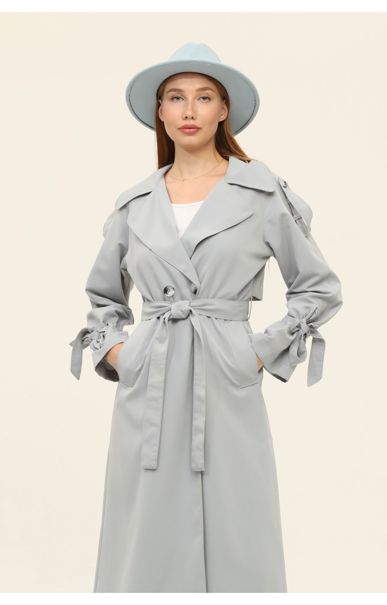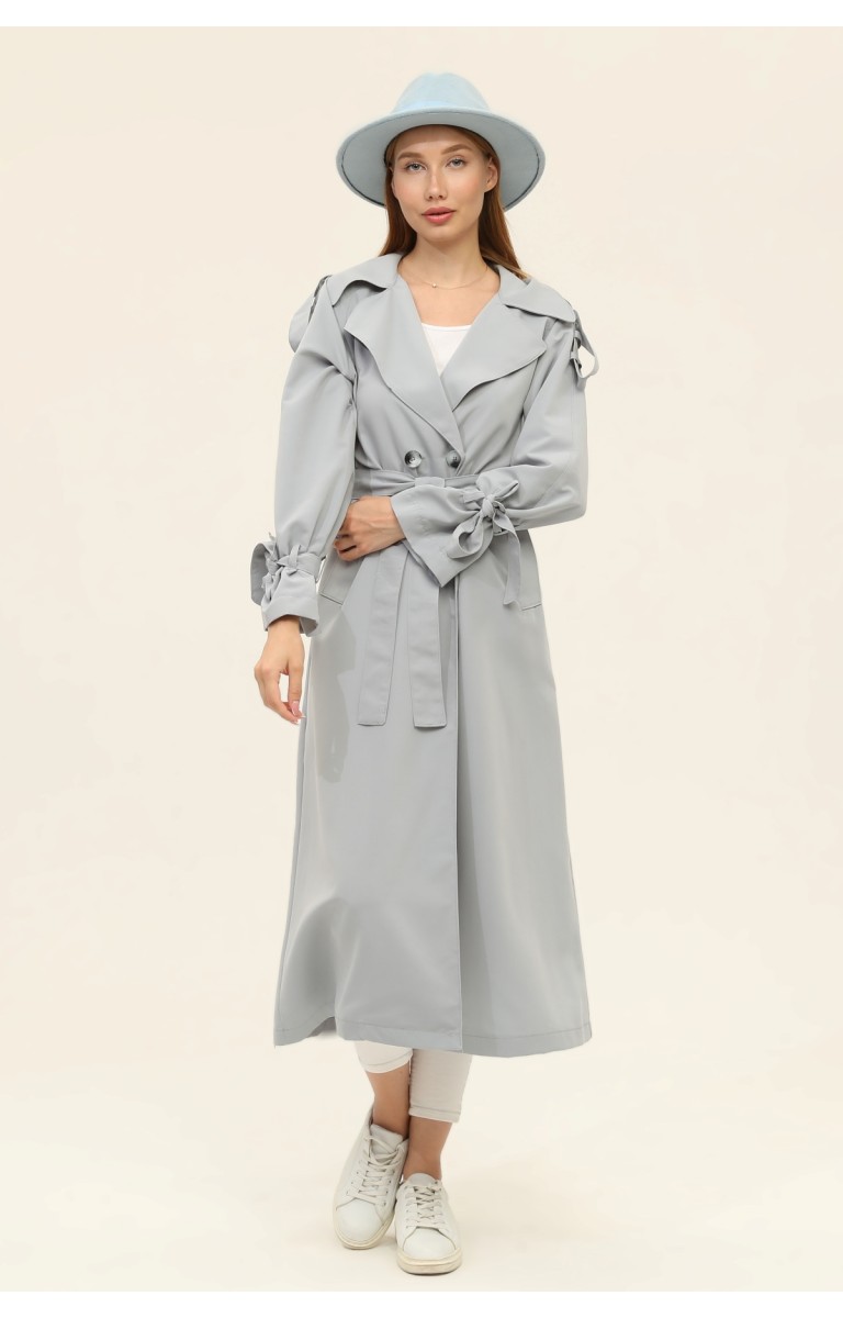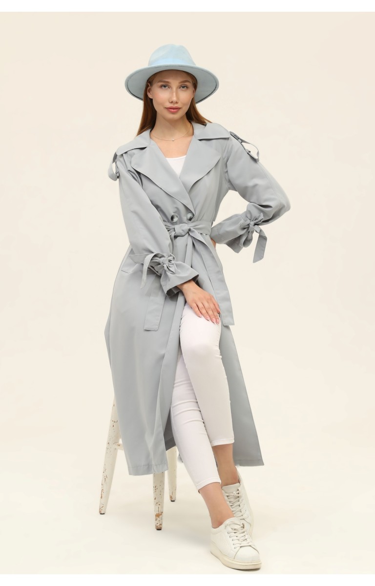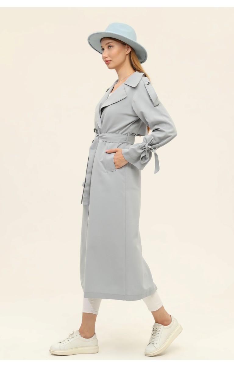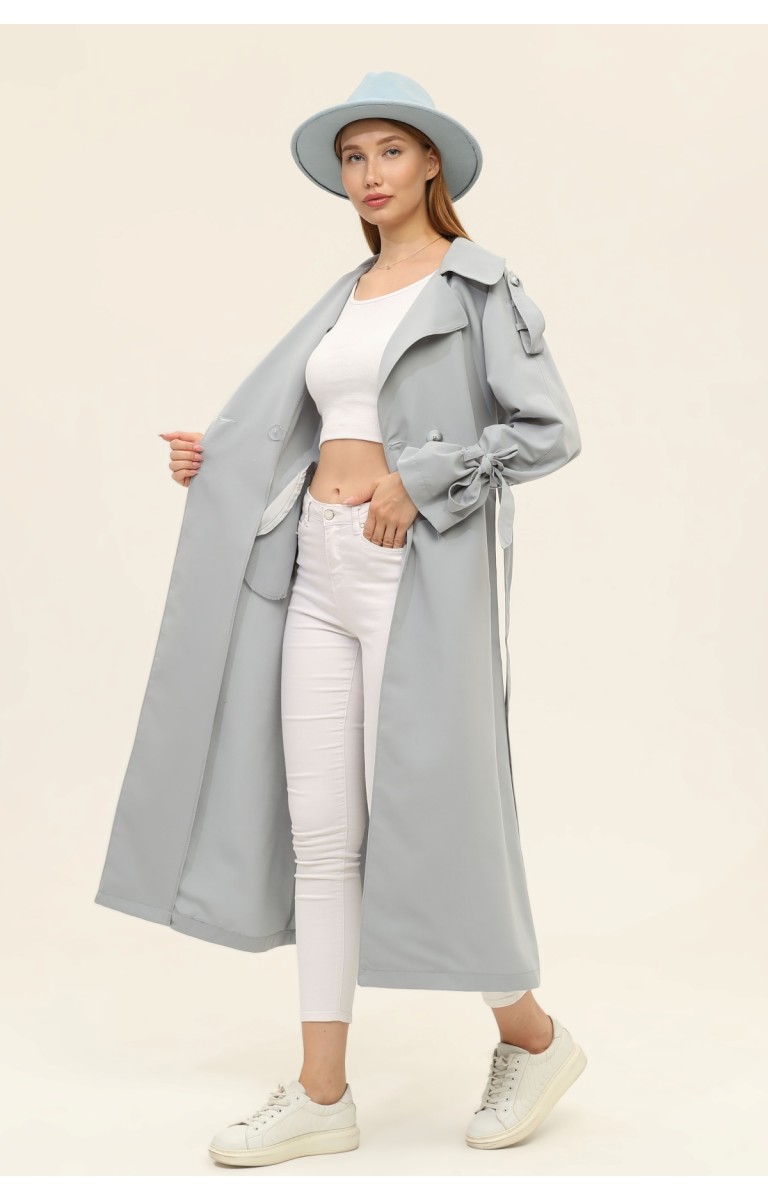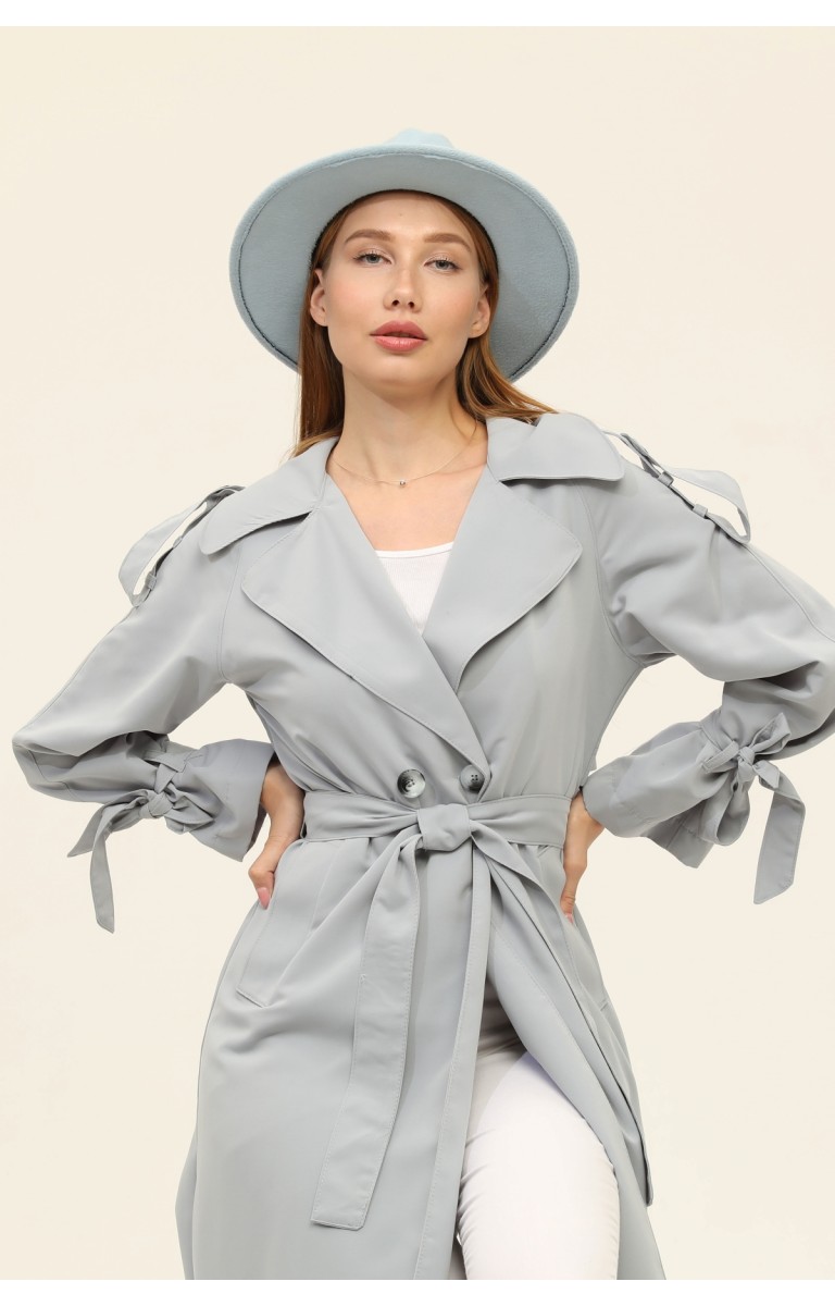 1. SINIF PAMUKLU GABARDİN YAZLIK ASTARSIZ KADIN TRENÇKOT - GRİ