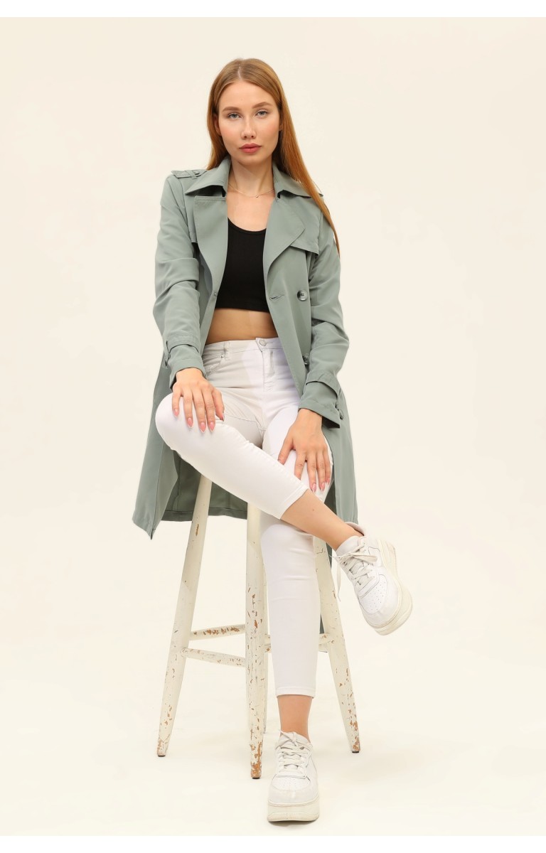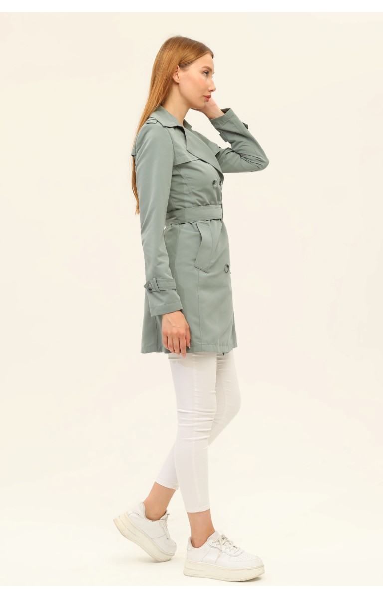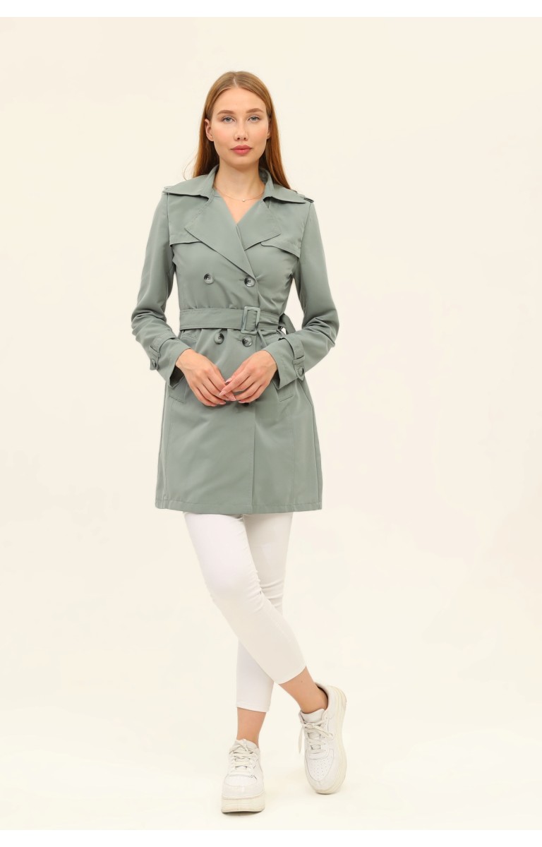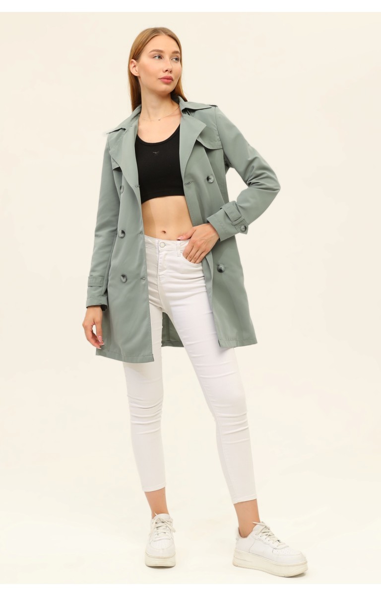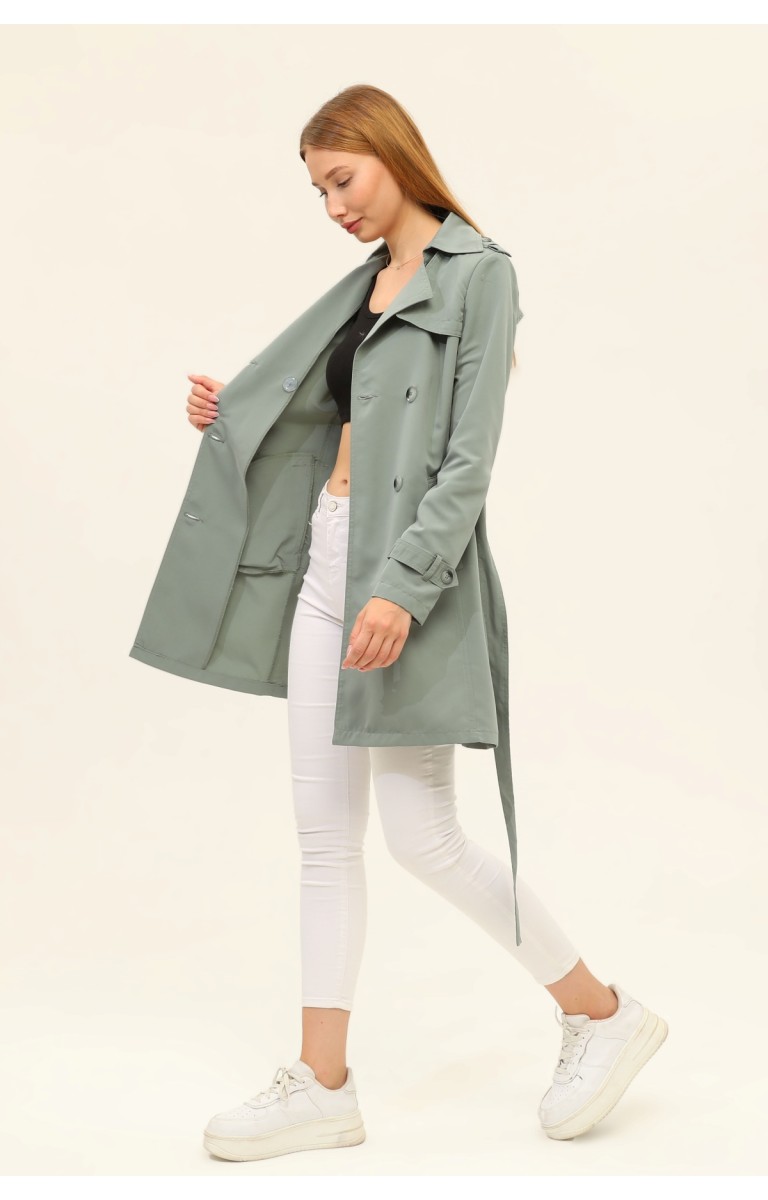 • PAMUKLU VE ASTARSIZ KADIN TRENÇKOT.