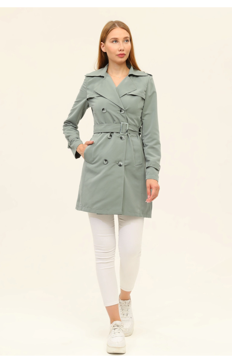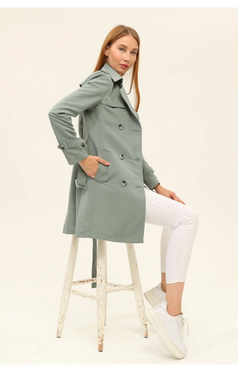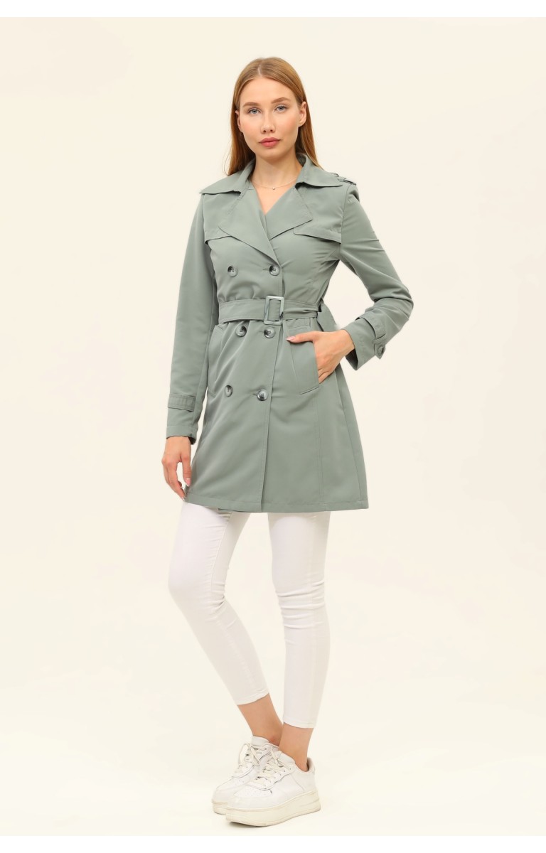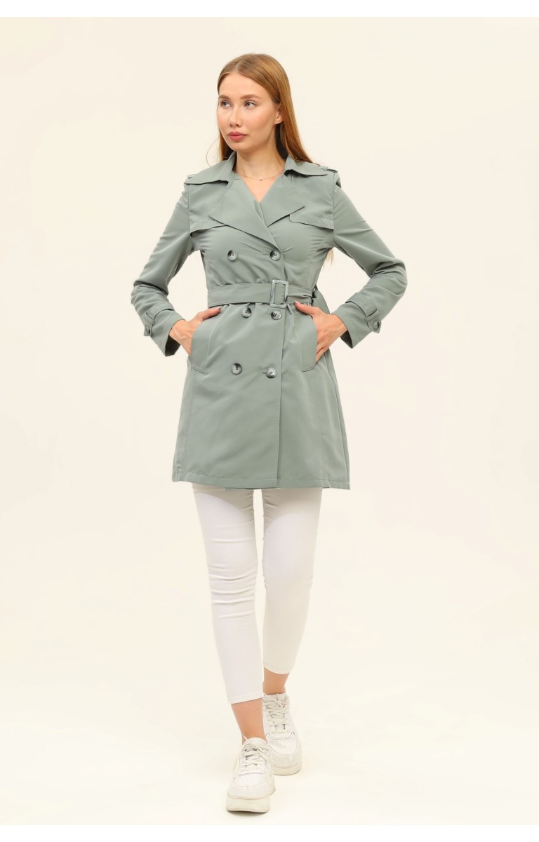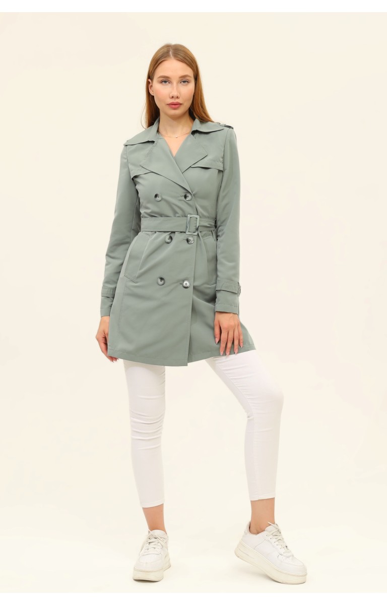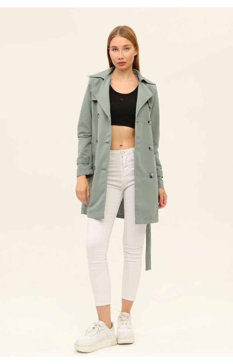 • PAMUKLU VE ASTARSIZ KADIN TRENÇKOT.