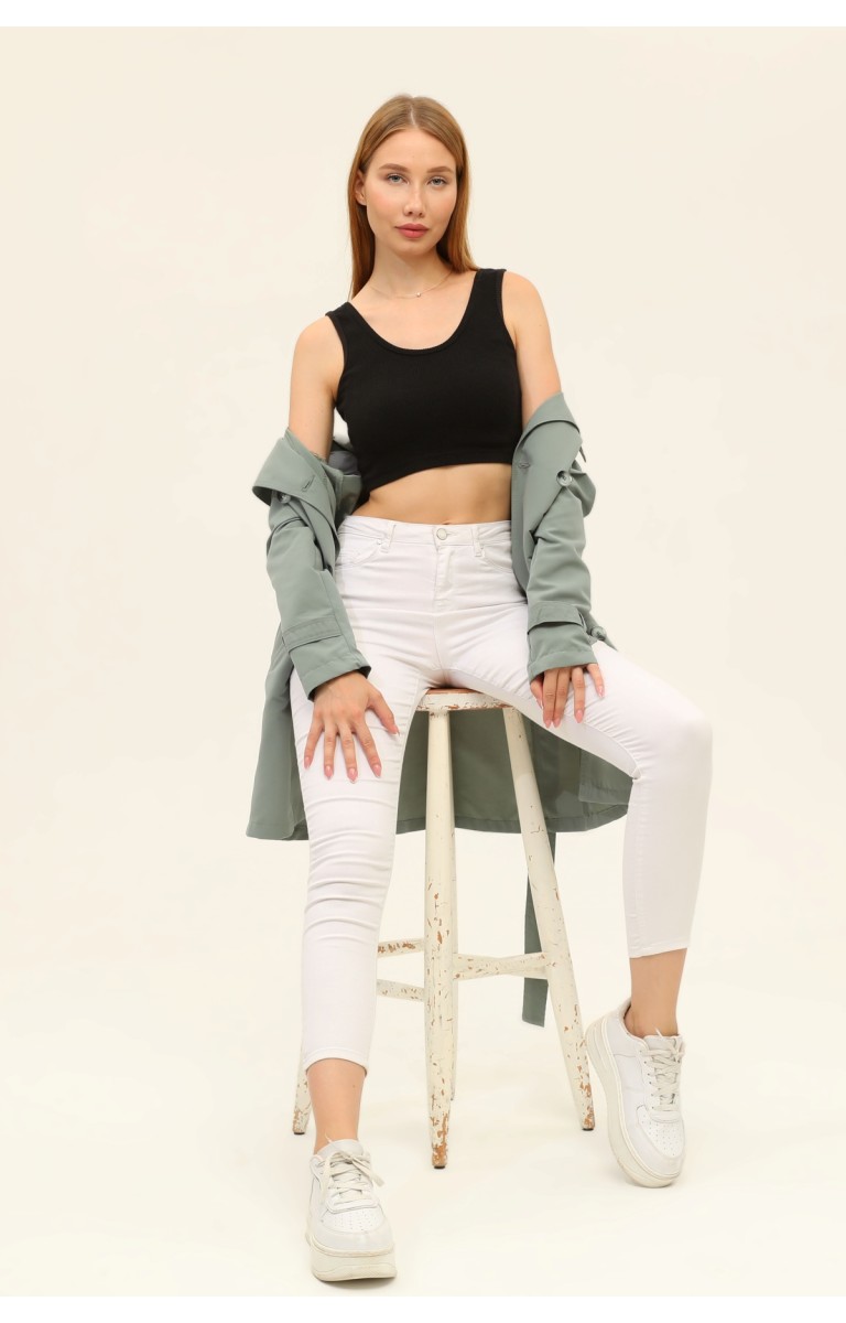 1. SINIF PAMUKLU GABARDİN ASTARSIZ KISA YAZLIK KADIN TRENÇKOT - RETRO