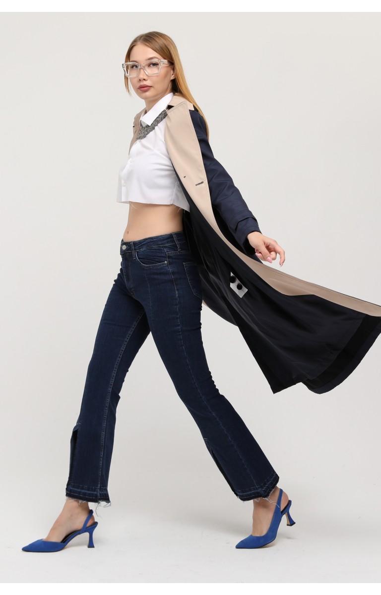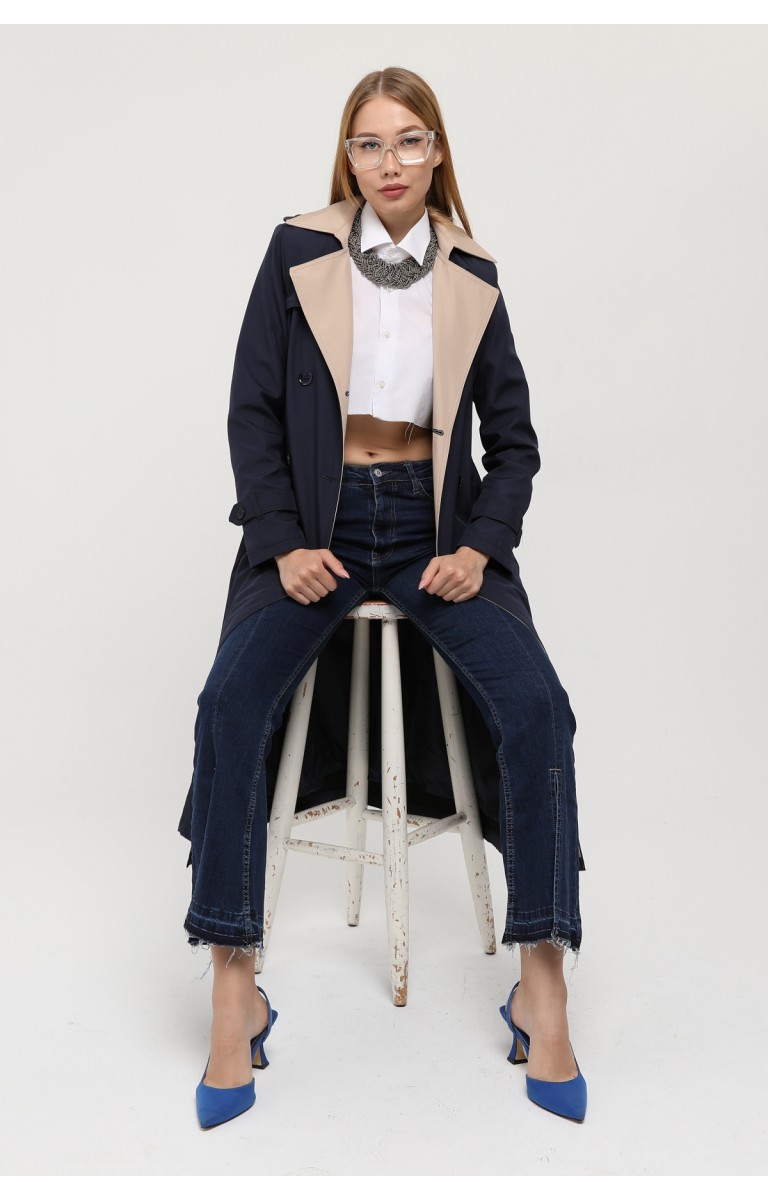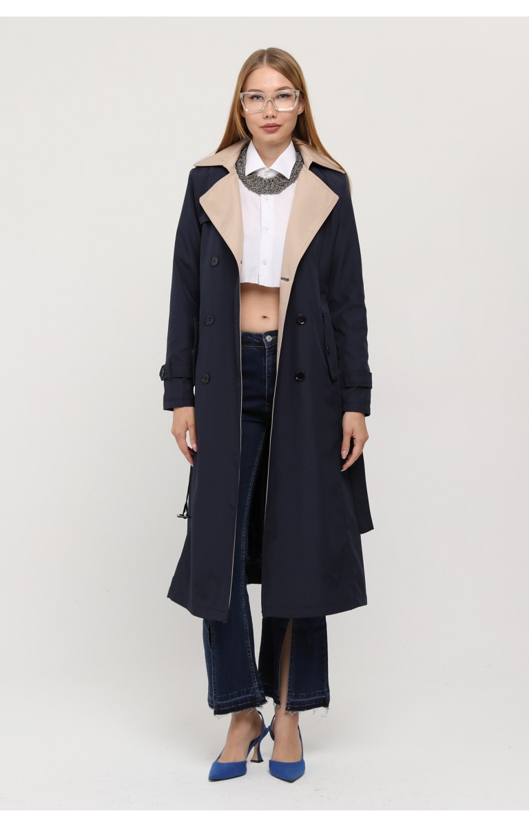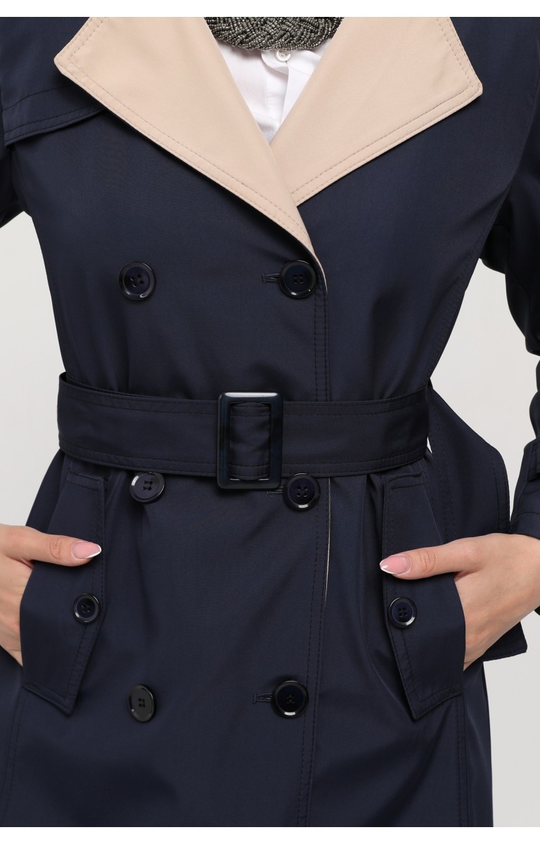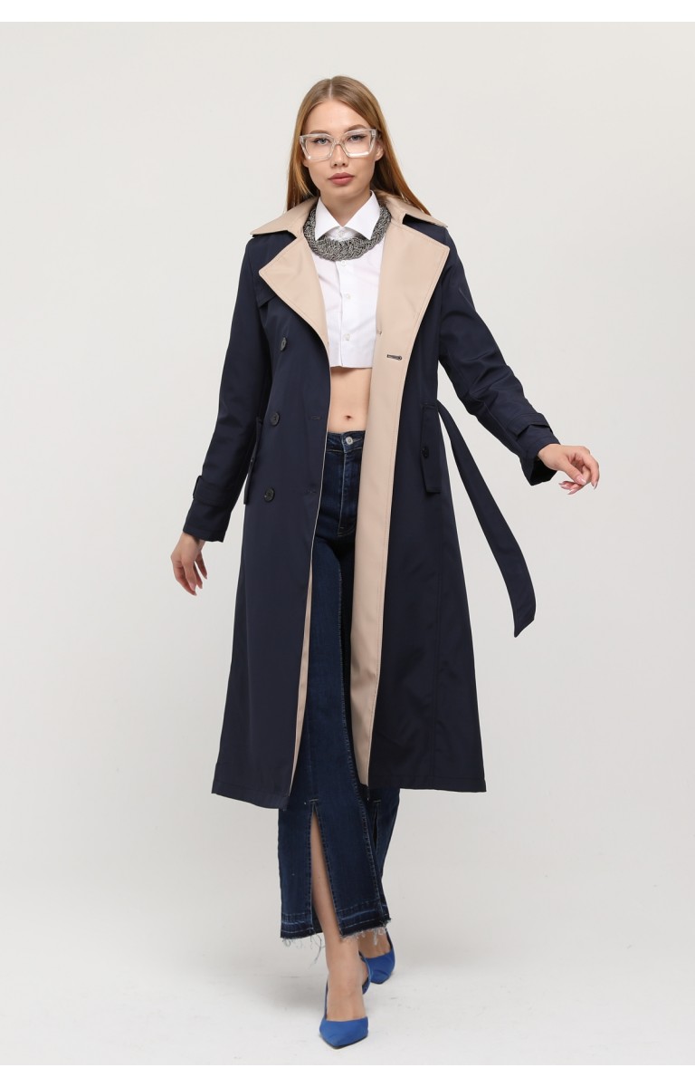1. KALİTE BONDİT KUMAŞ ÇİFT RENKLİ İÇİ ASTARLI MEVSİMLİK KADIN TRENÇKOT - LACİVERT