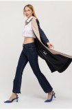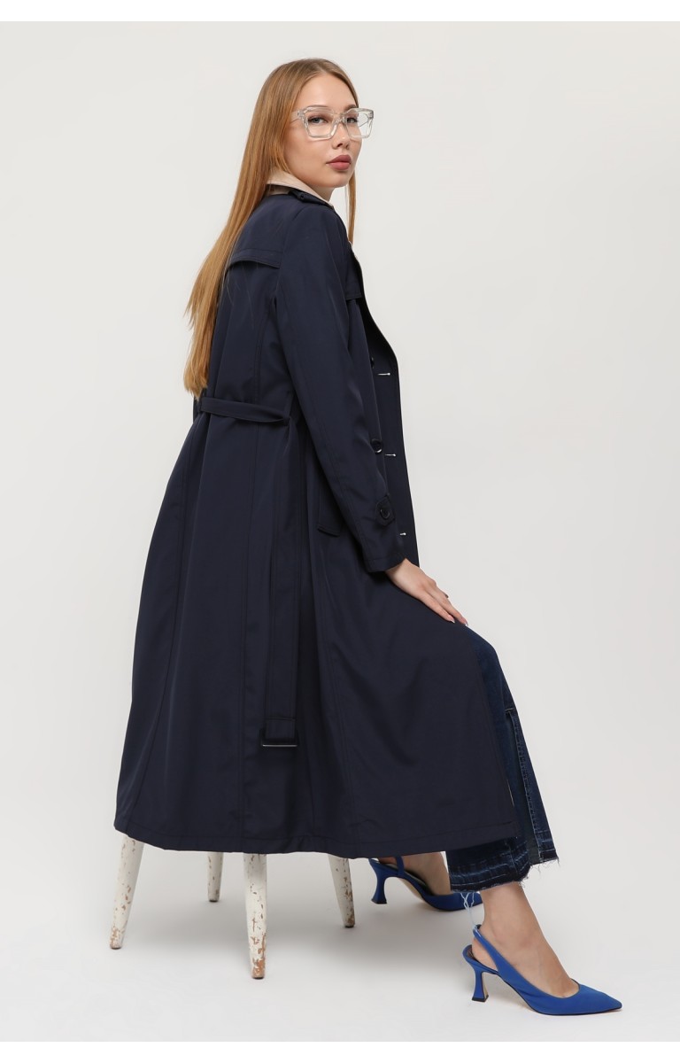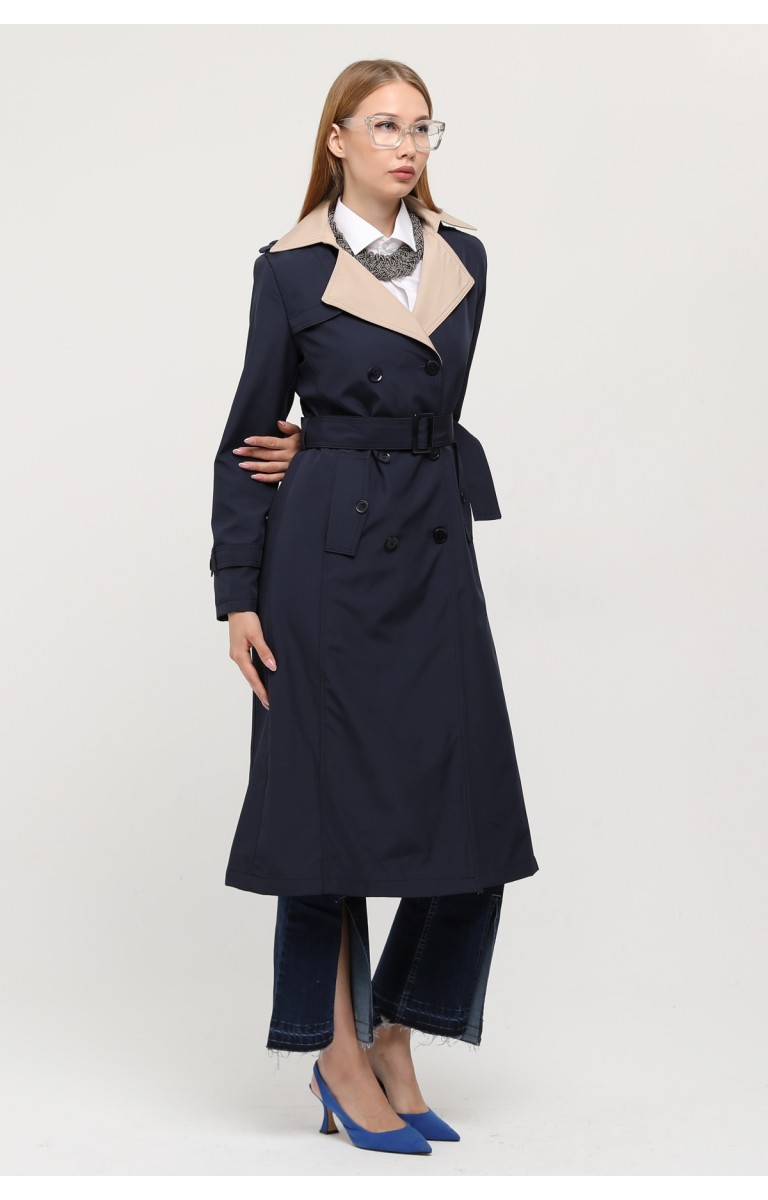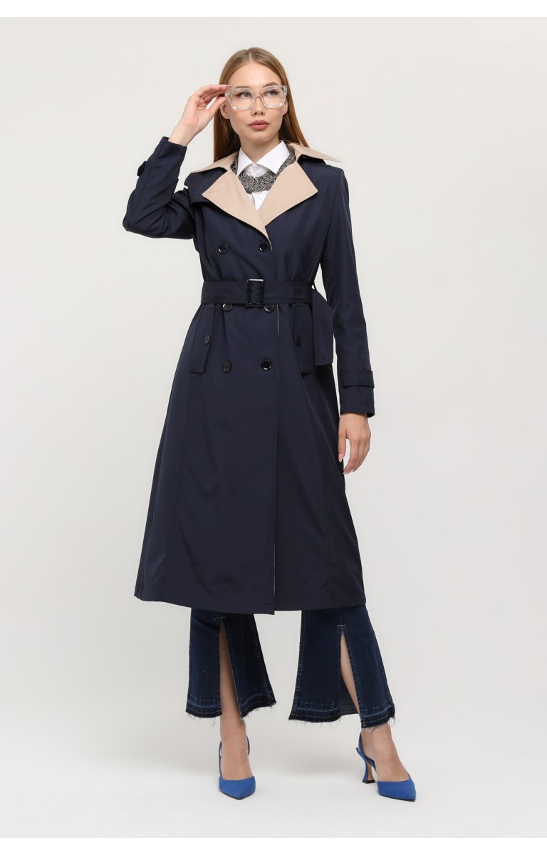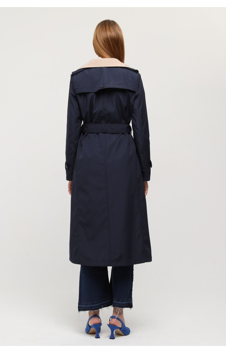 1. KALİTE BONDİT KUMAŞ ÇİFT RENKLİ İÇİ ASTARLI MEVSİMLİK KADIN TRENÇKOT - LACİVERT