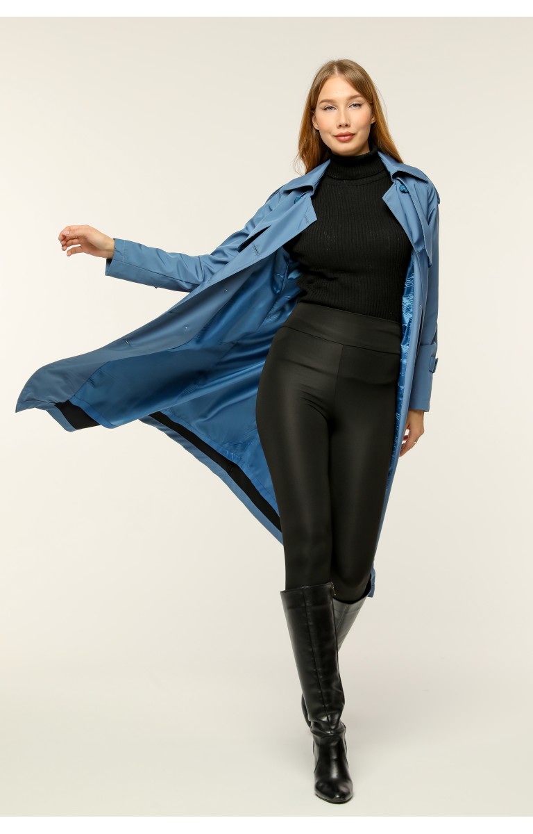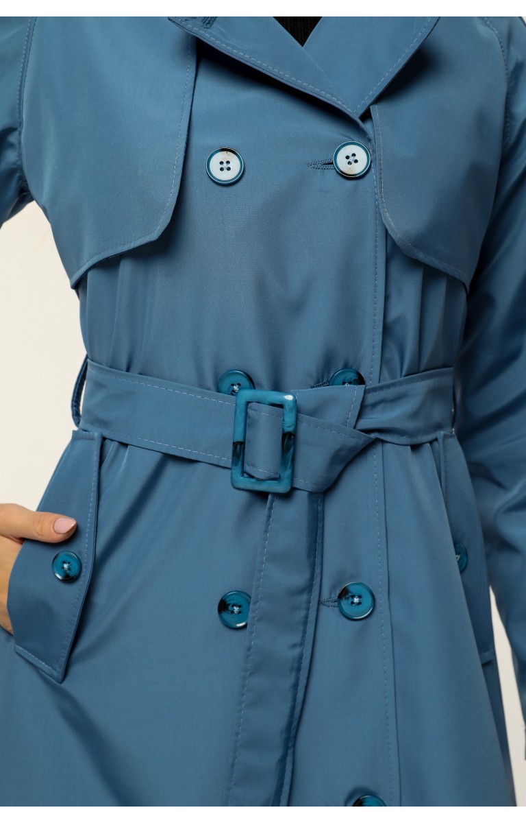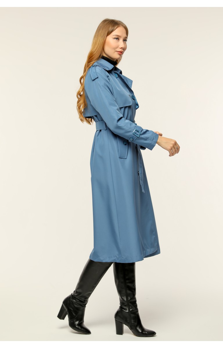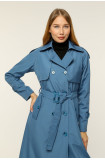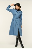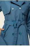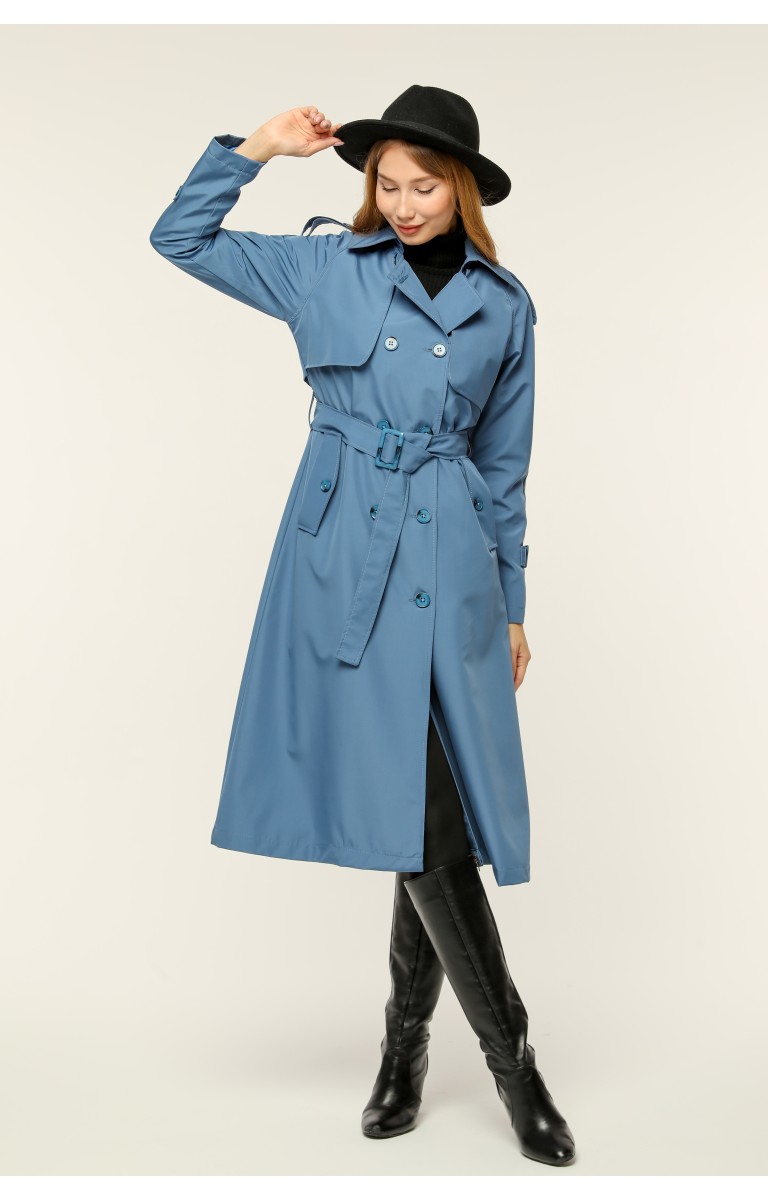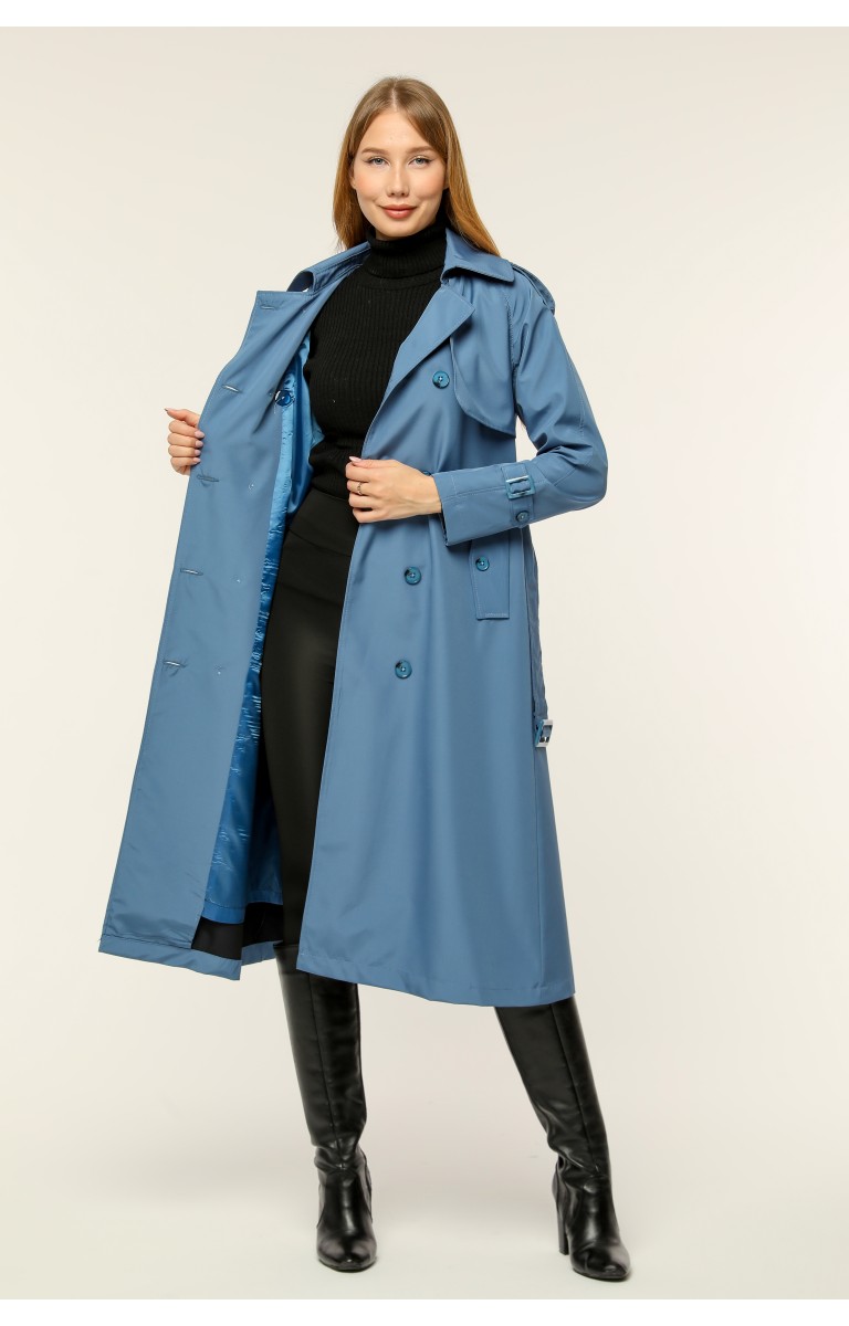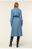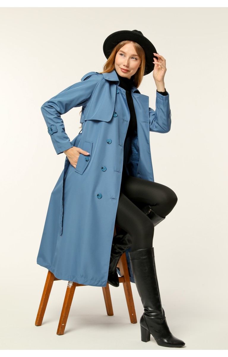 Çift Cepkenli Mevsimlik Bondit Kumaş uzun Kadın Trençkot-Bulut Mavi
