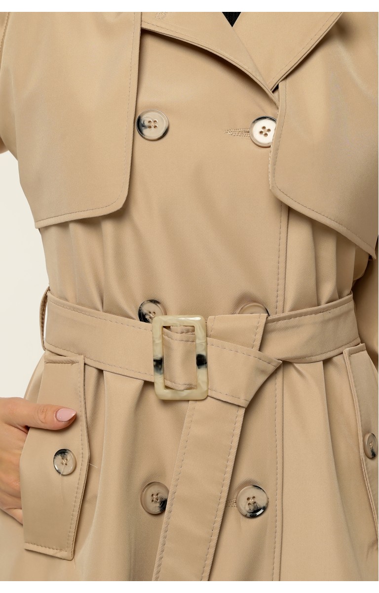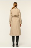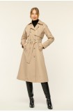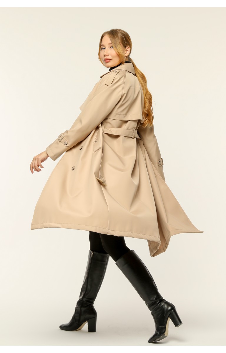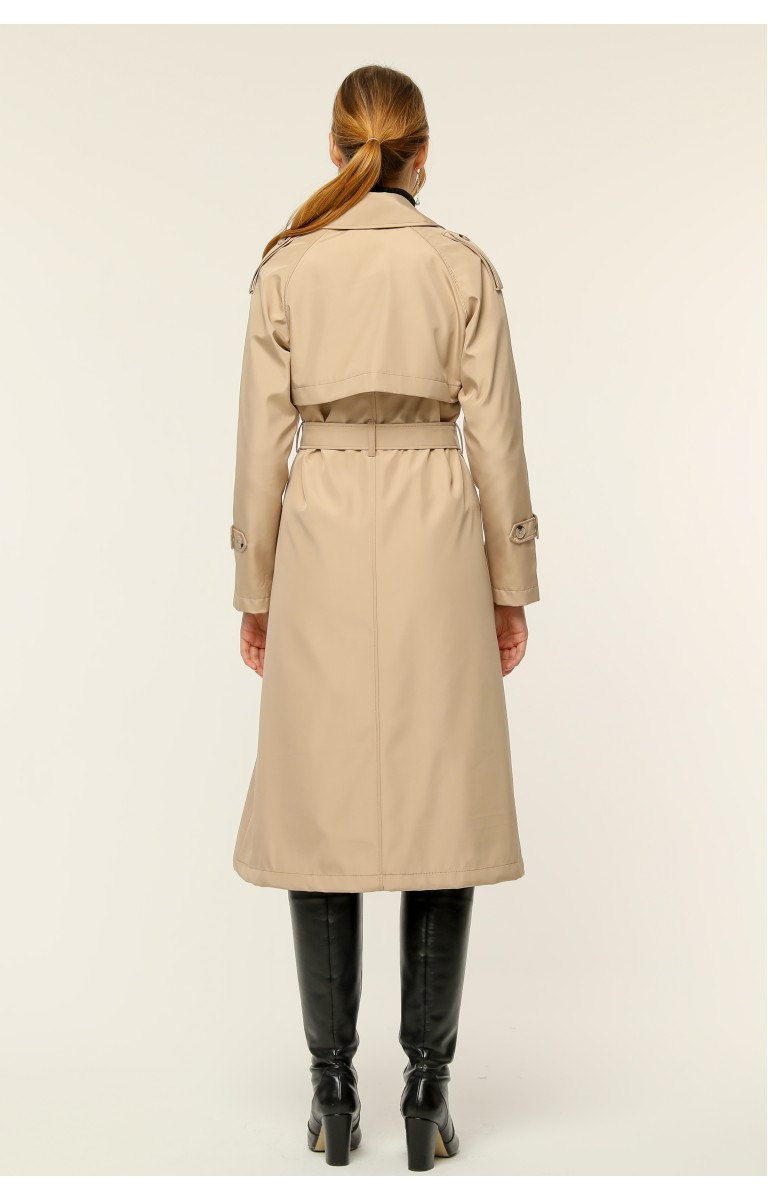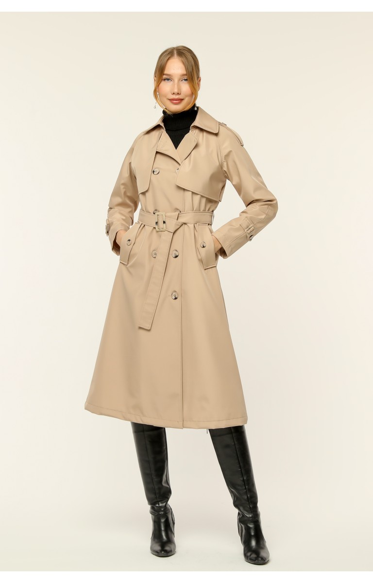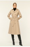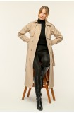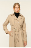 Çift Cepkenli Mevsimlik Bondit Kumaş uzun Kadın Trençkot-Bej