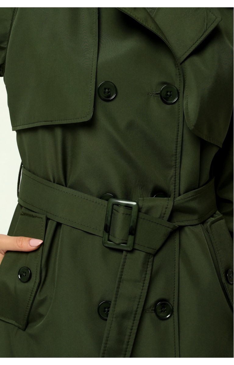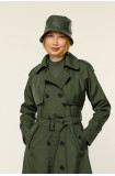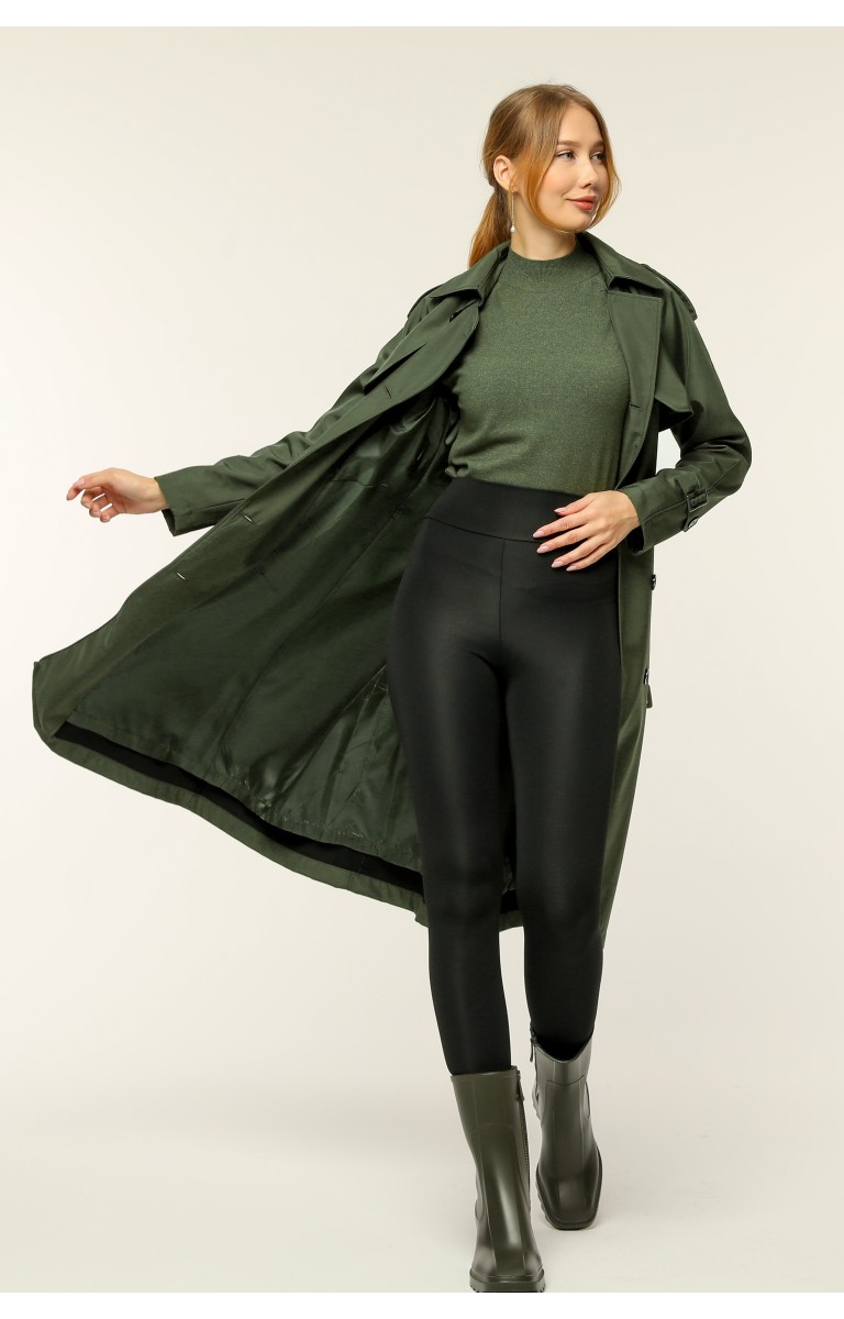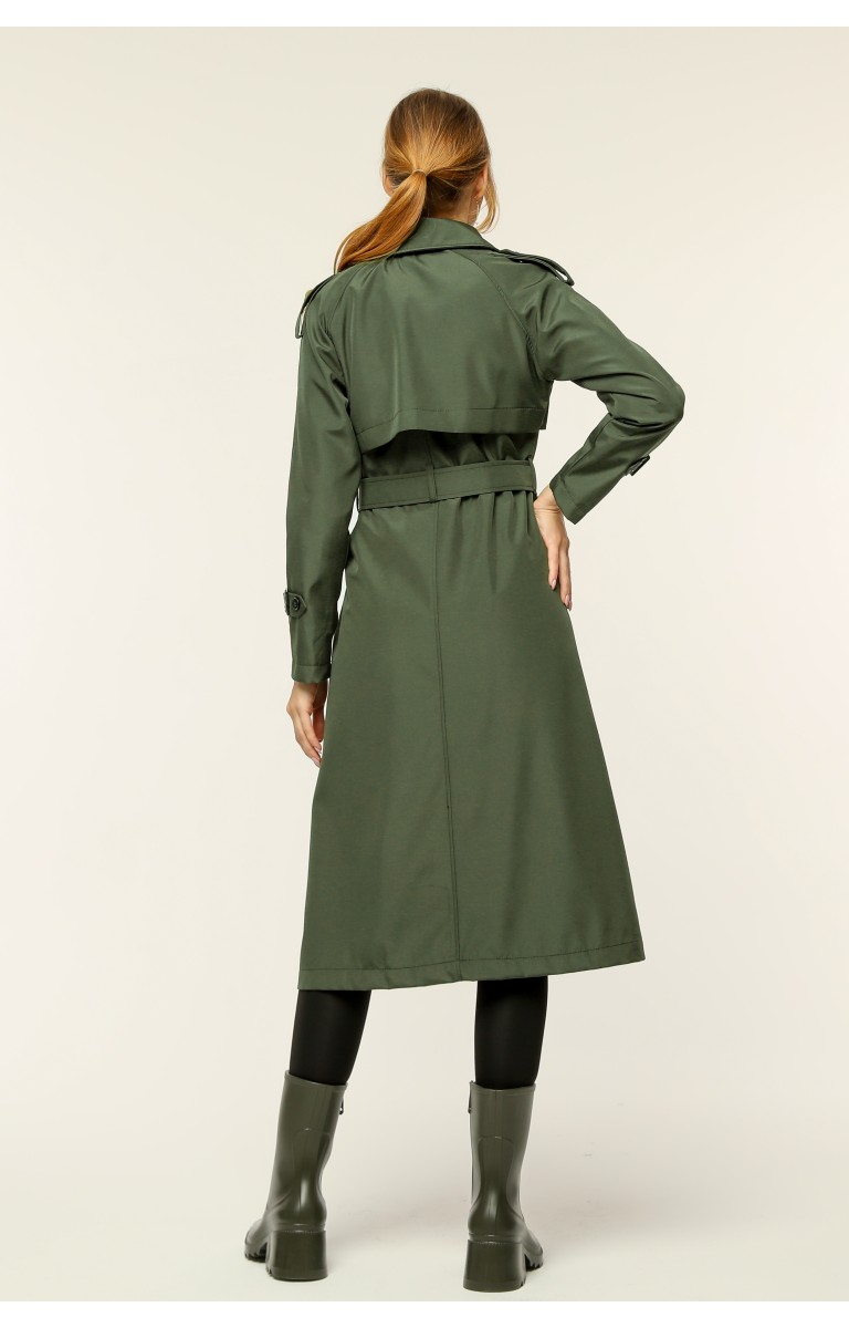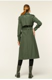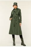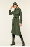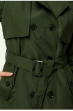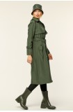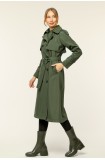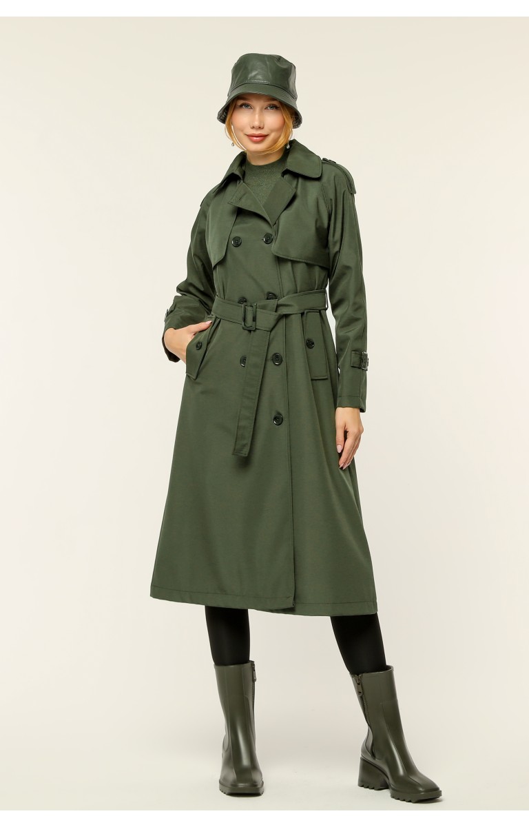 Çift Cepkenli Mevsimlik Bondit Kumaş uzun Kadın Trençkot-Haki