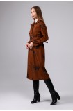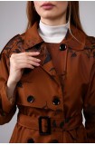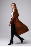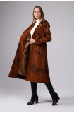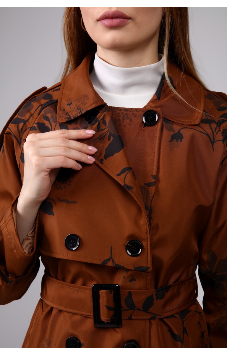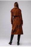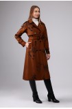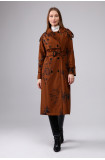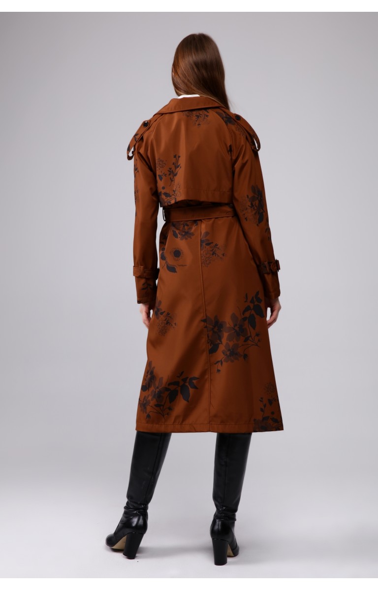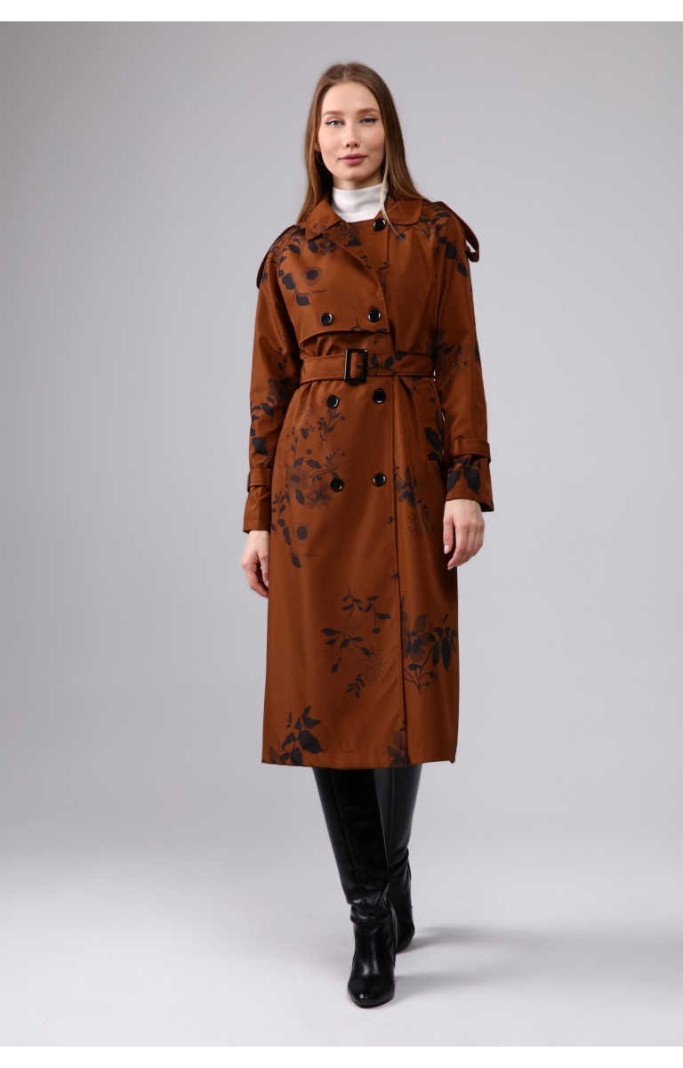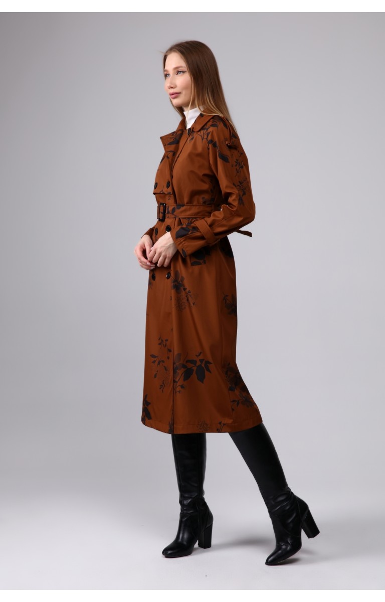 Çiçek Desenli Astarlı Uzun Kadın Trençkot - TABA