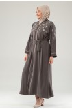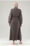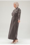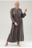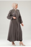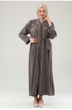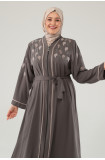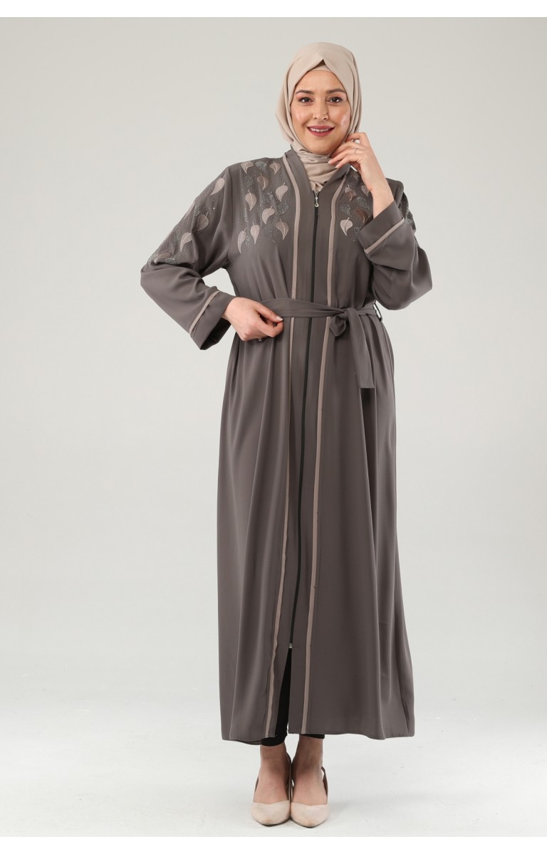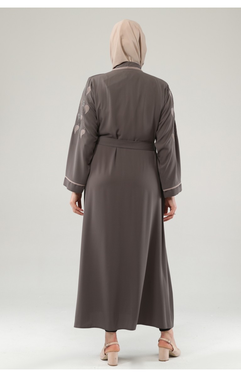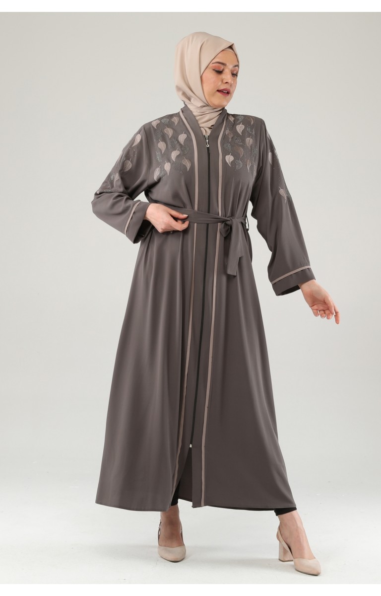 Jamila Yaprak Desenli Nakışlı Taşlı Kadın Ferace - VİZON