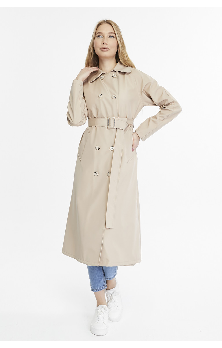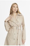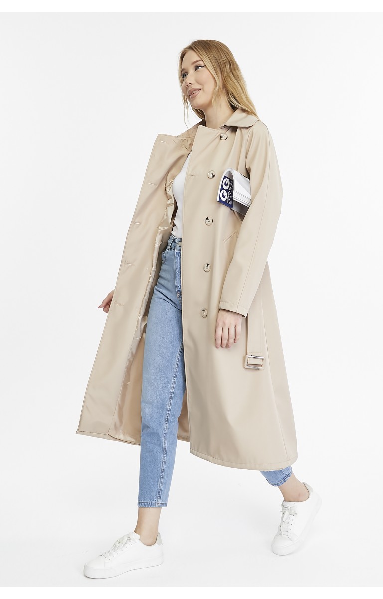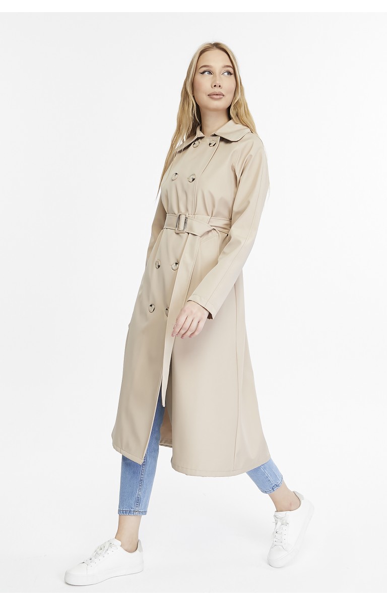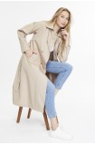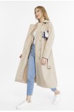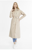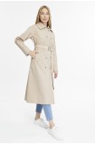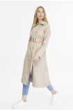 Uzun Boy Kemerli Astarlı Kadın Trençkot - BEJ