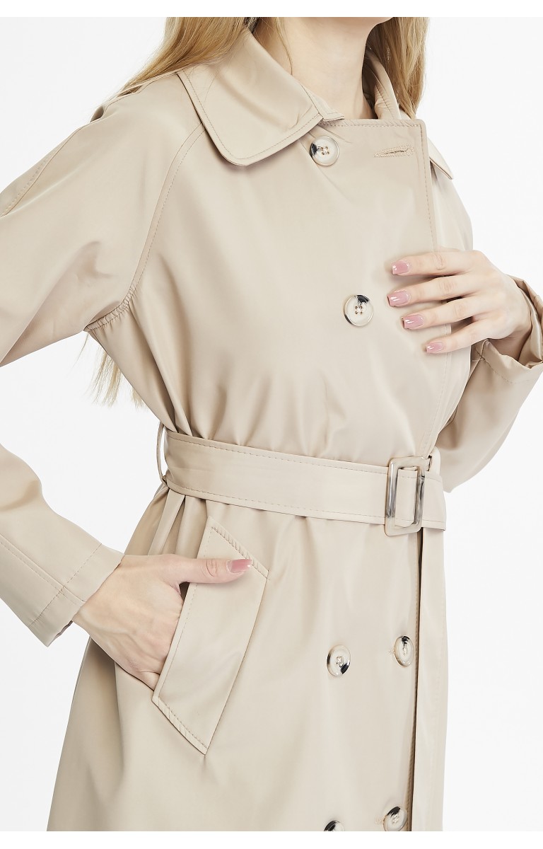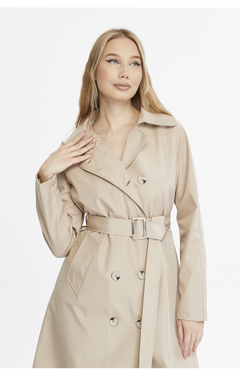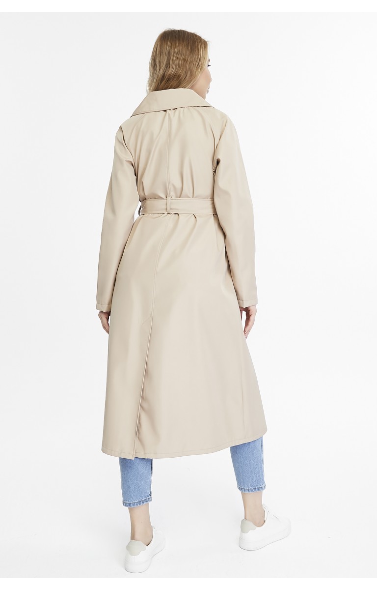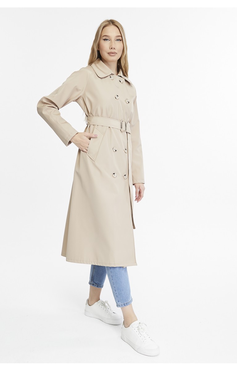 Uzun Boy Kemerli Astarlı Kadın Trençkot - BEJ