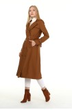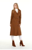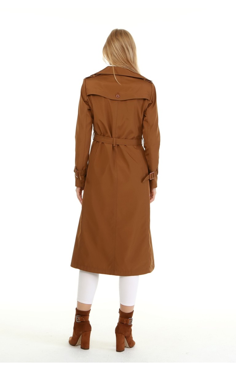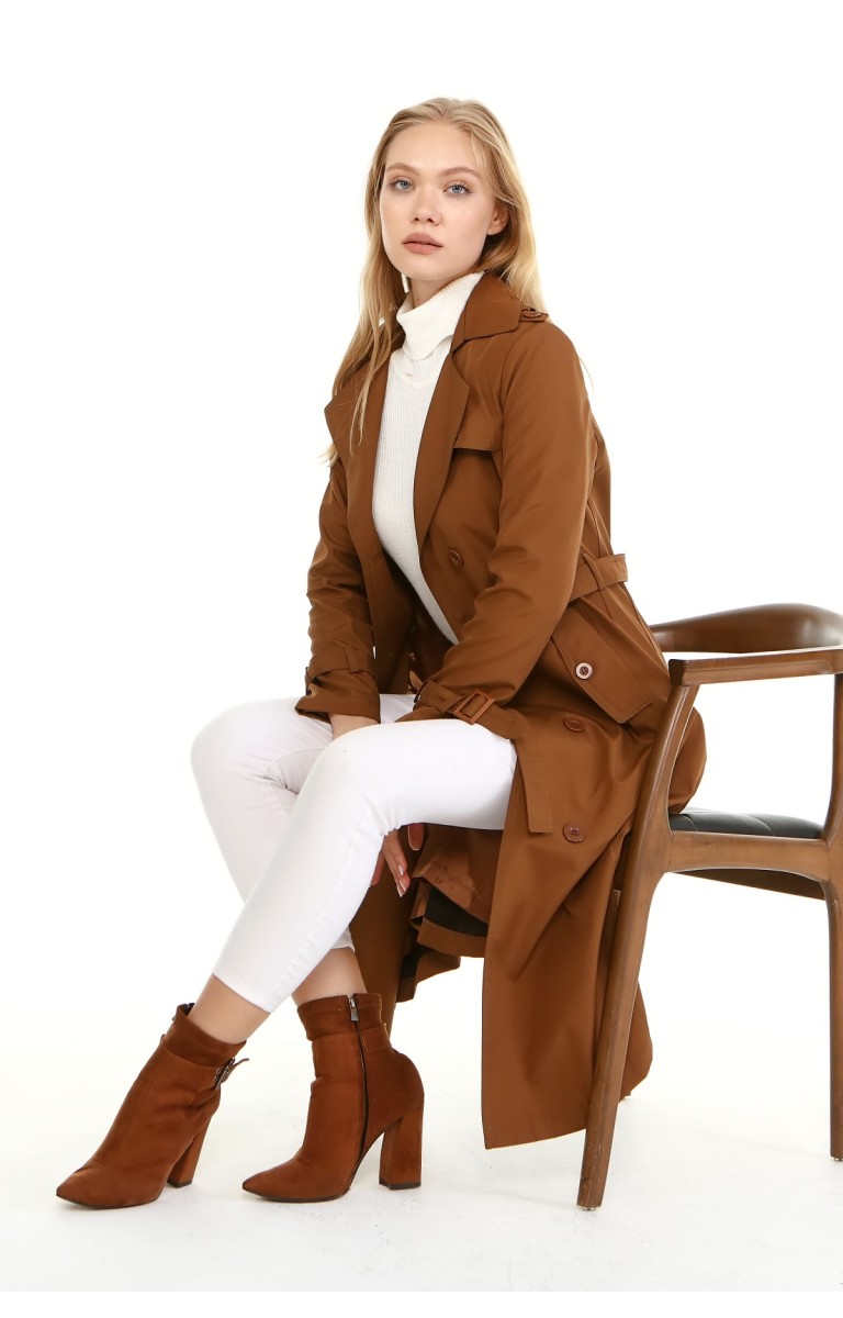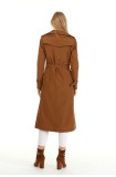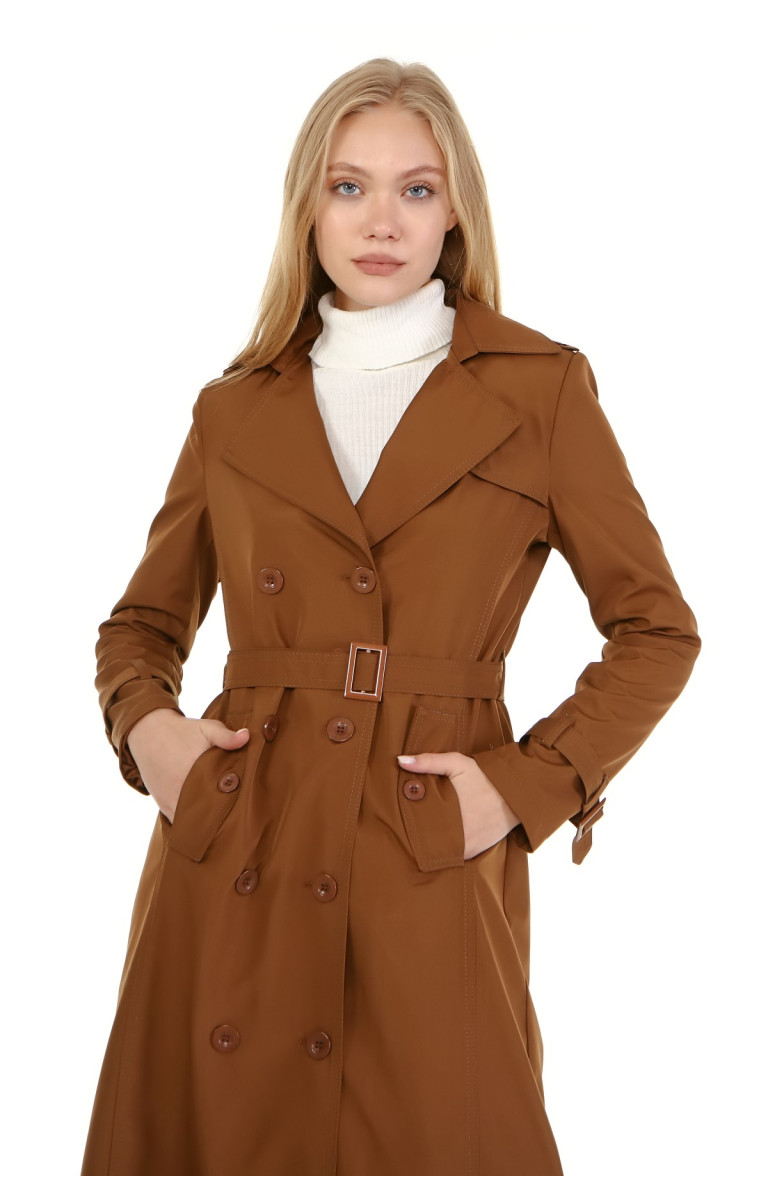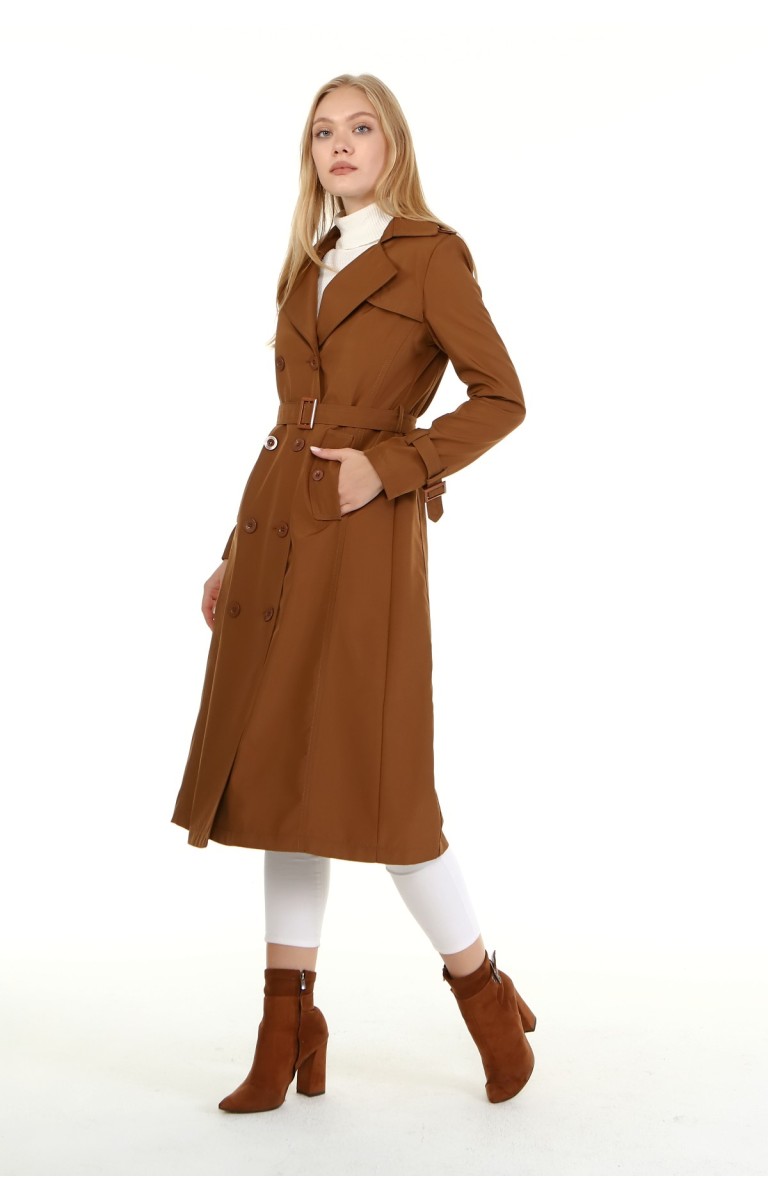 Uzun Büyük Beden Kadın Astarlı Trençkot-Taba