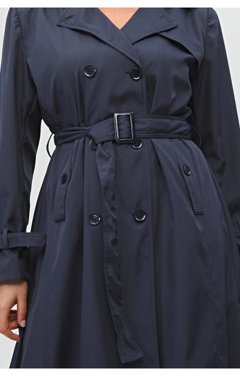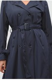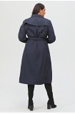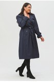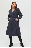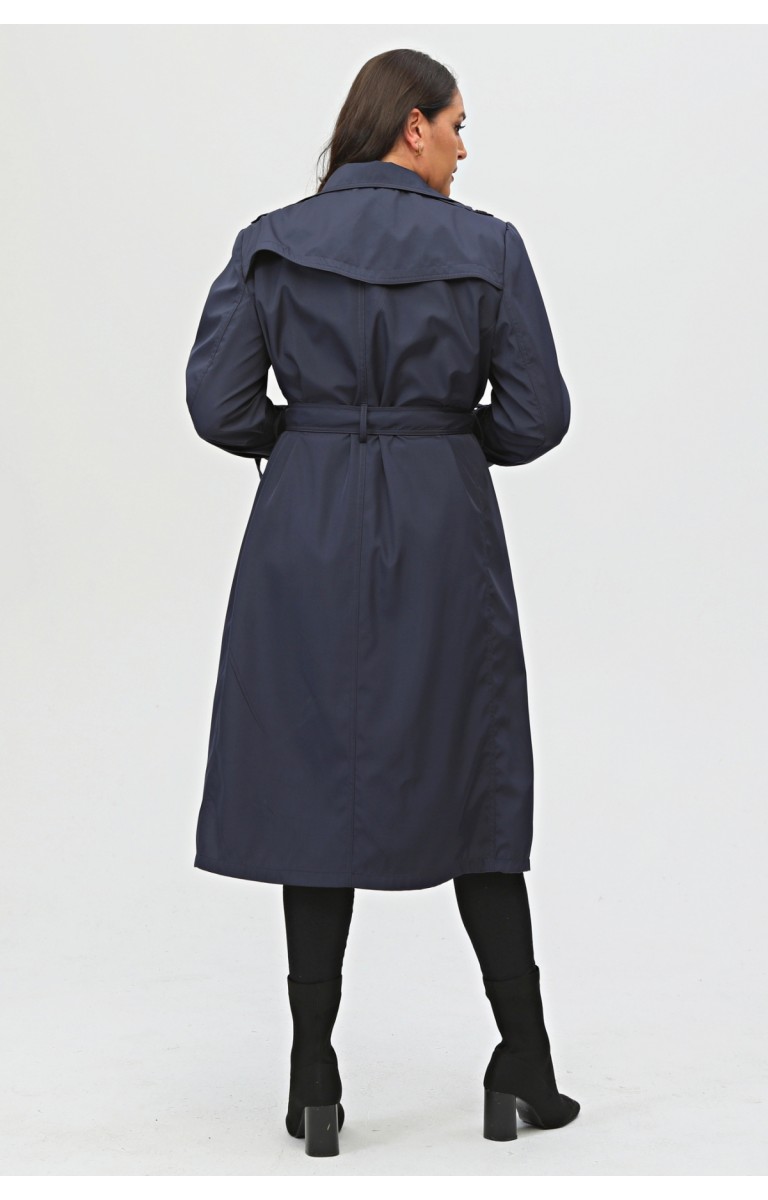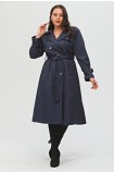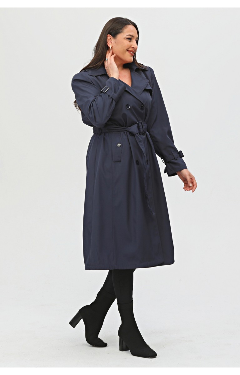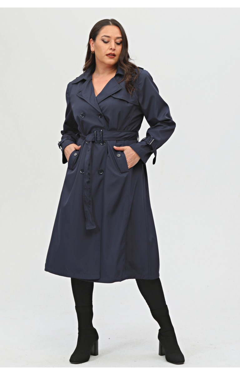 Uzun Büyük Beden Kadın Astarlı Trençkot-Lacivert