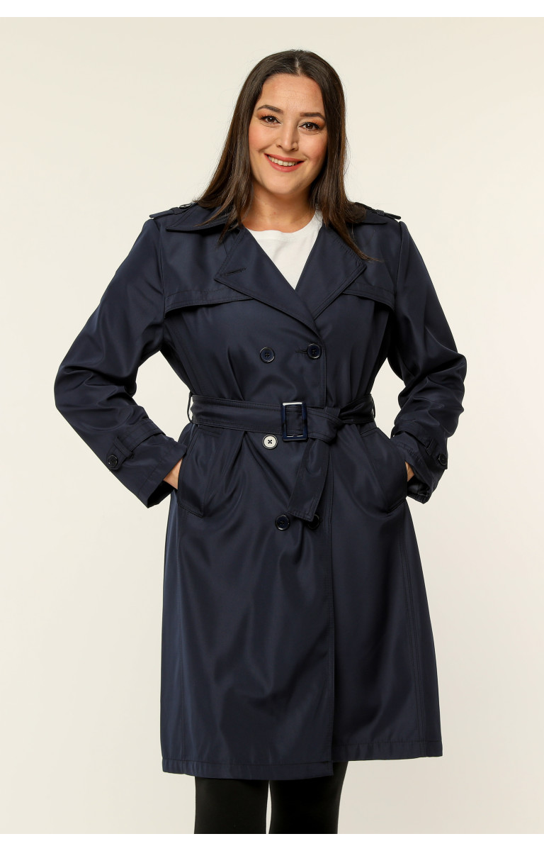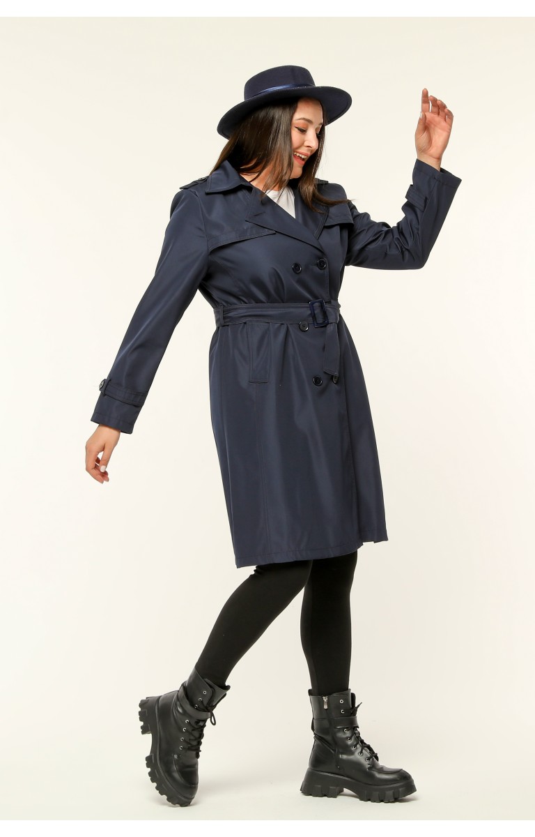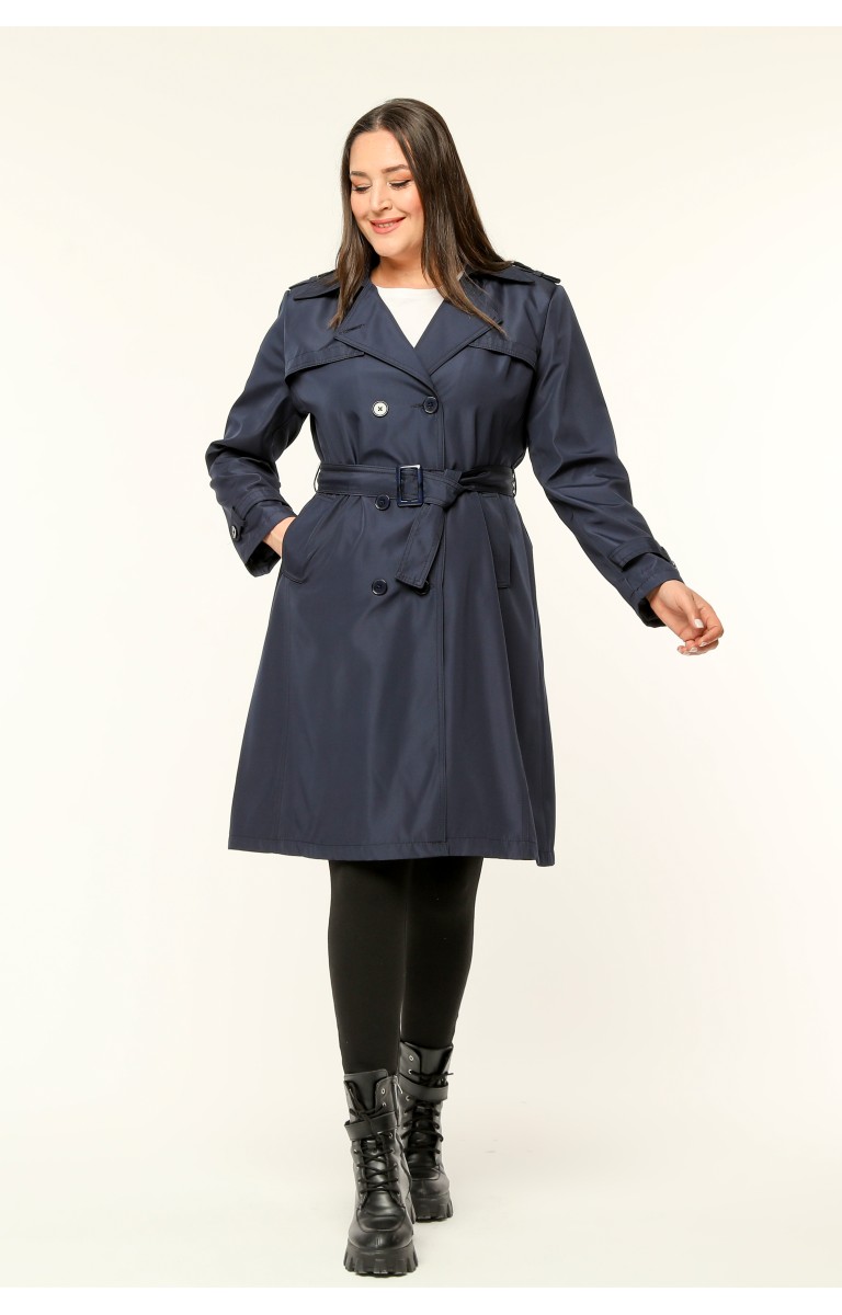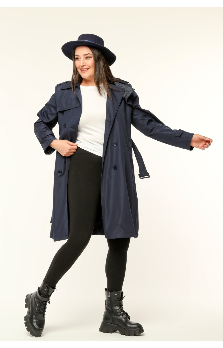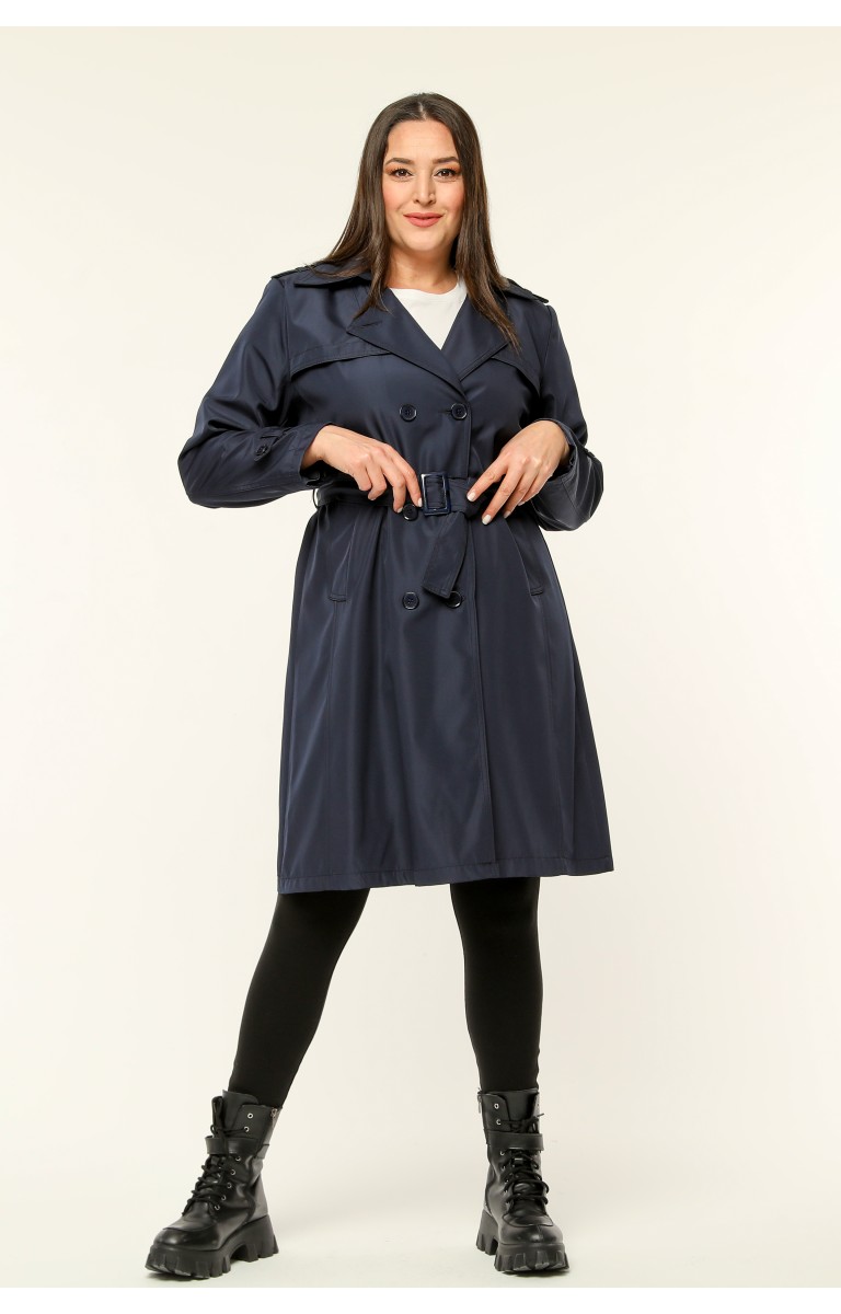 Orta Boy Kadın Büyük Beden Mevsimlik Trençkot - Lacivert