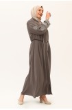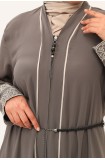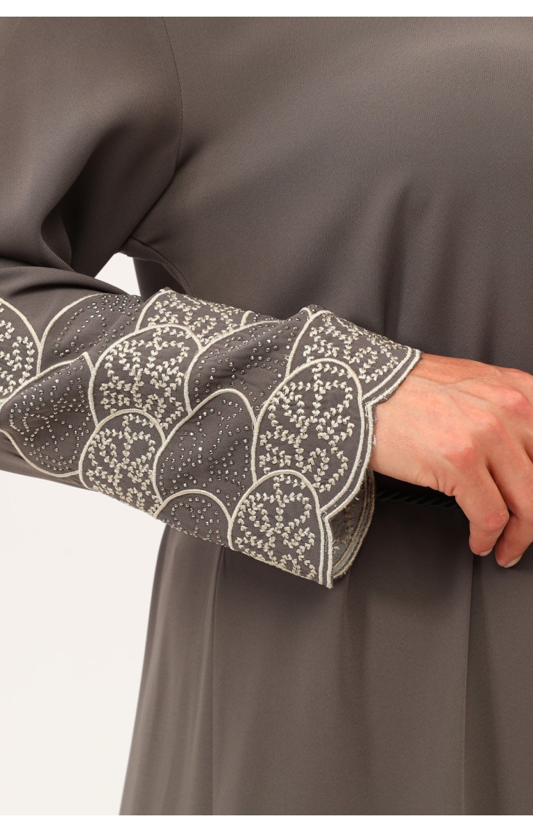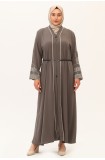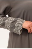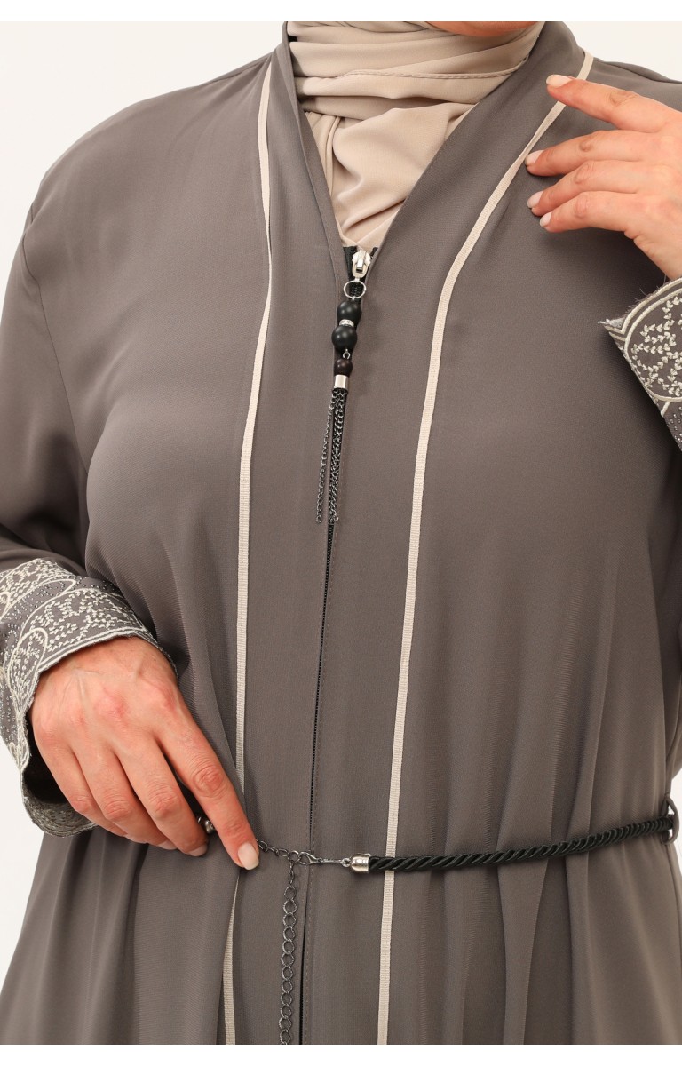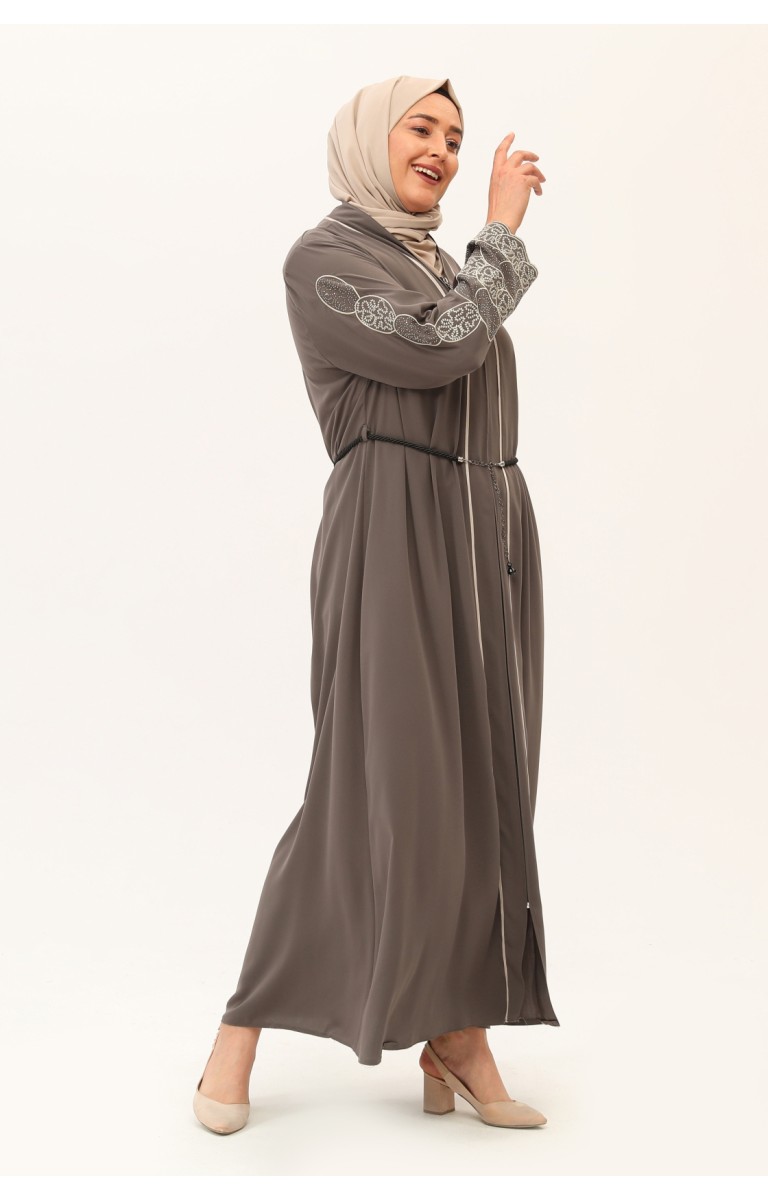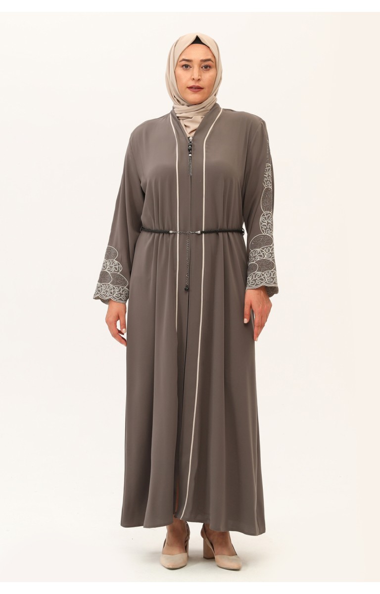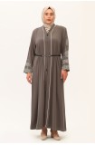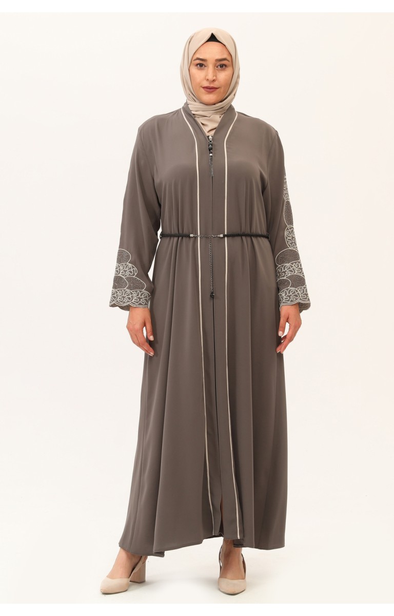 BÜYÜK BEDEN NAKIŞLI VE TAŞLI KREP KUMAŞ KADIN BÜYUK BEDEN FERACE - VİZON